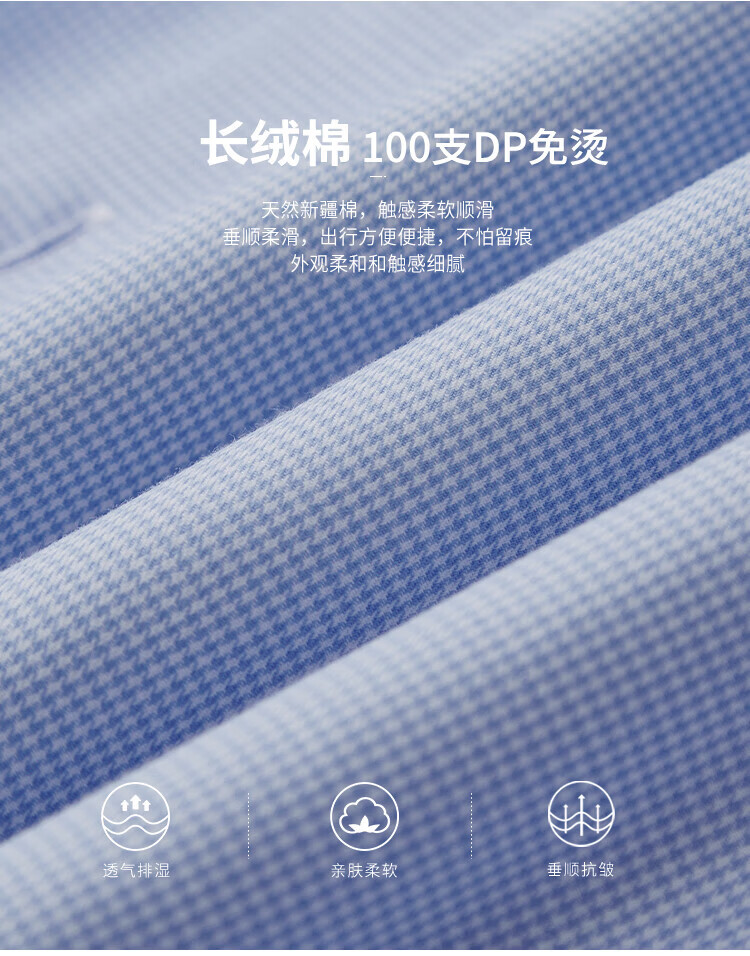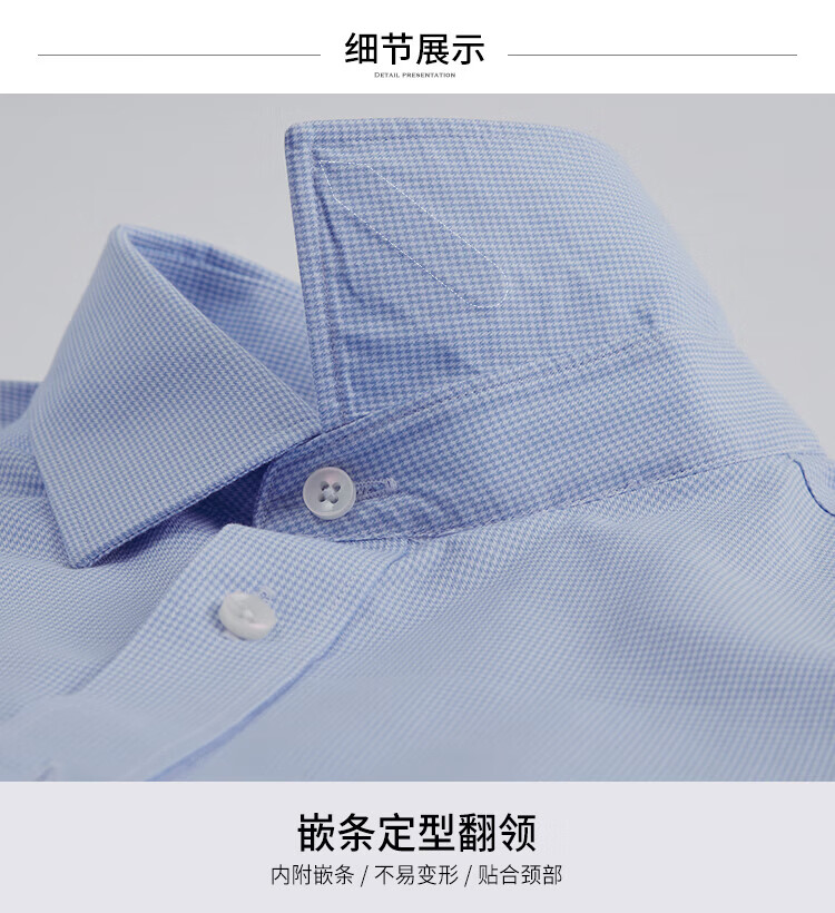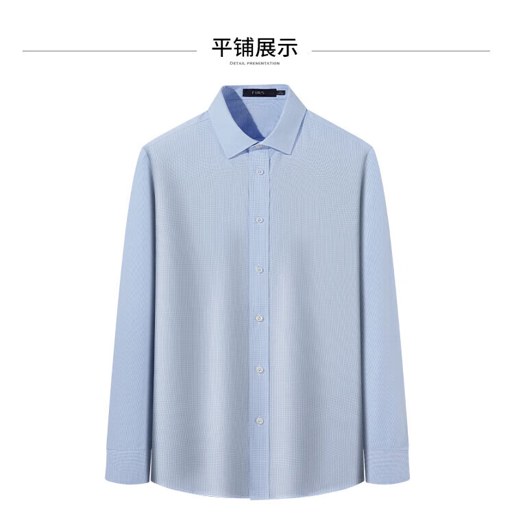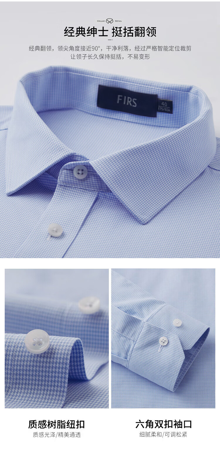 杉杉(FIRS)【100支DP免烫】长袖衬衫男四季款商务休闲上衣抗皱易打理衬衣男 蓝白格 39 (170) 170/88A