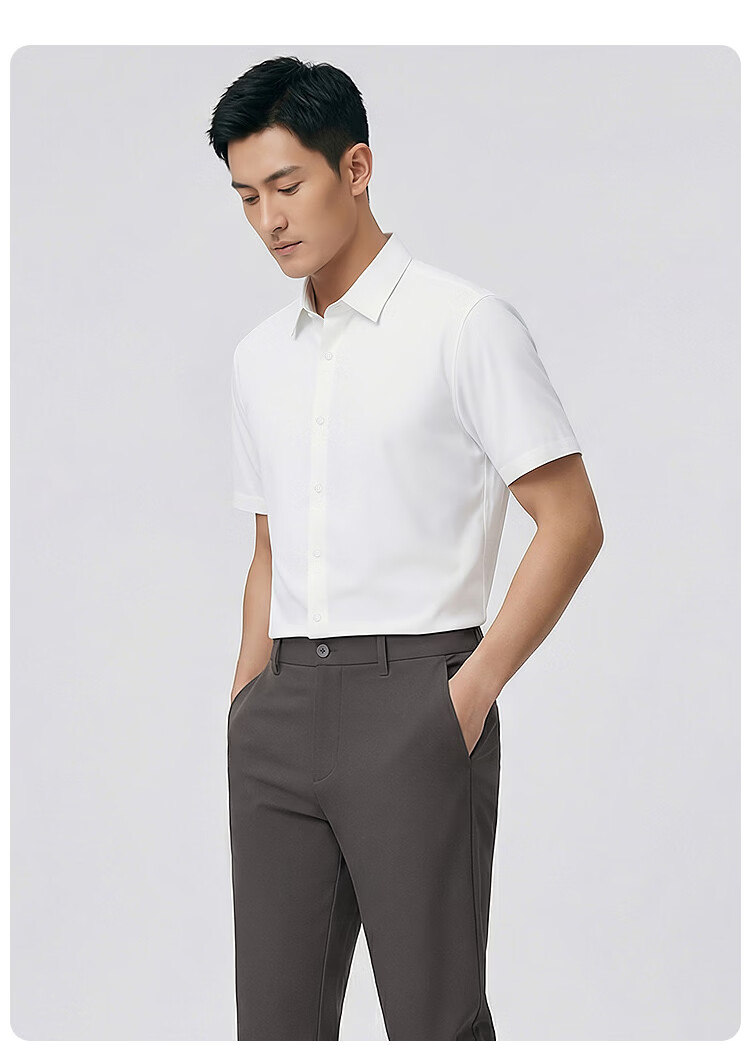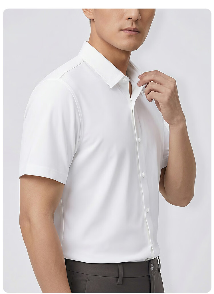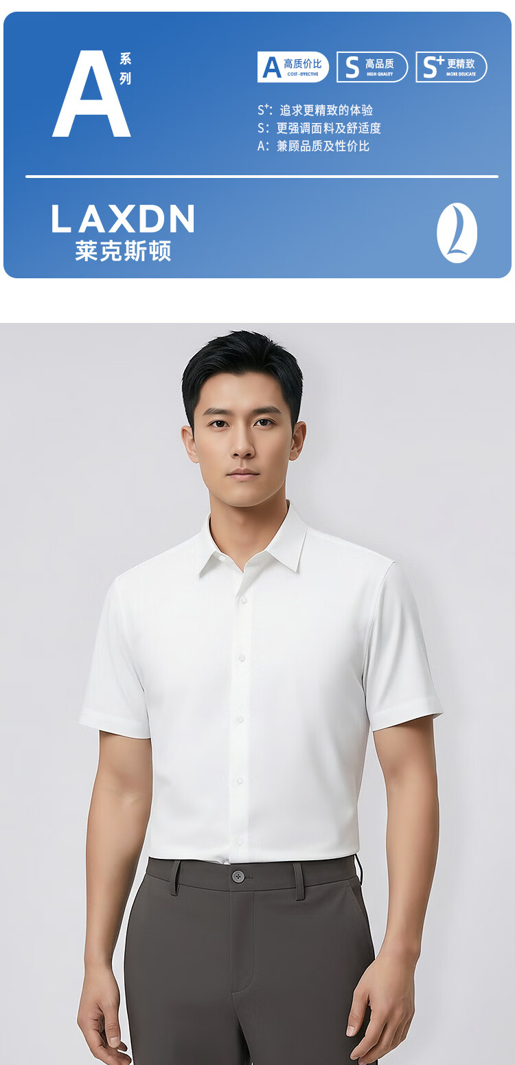 莱克斯顿(laxdn)短袖衬衫男夏季【职场正装】四面弹亲肤纯色商务休闲男装衬衣男 本白 S