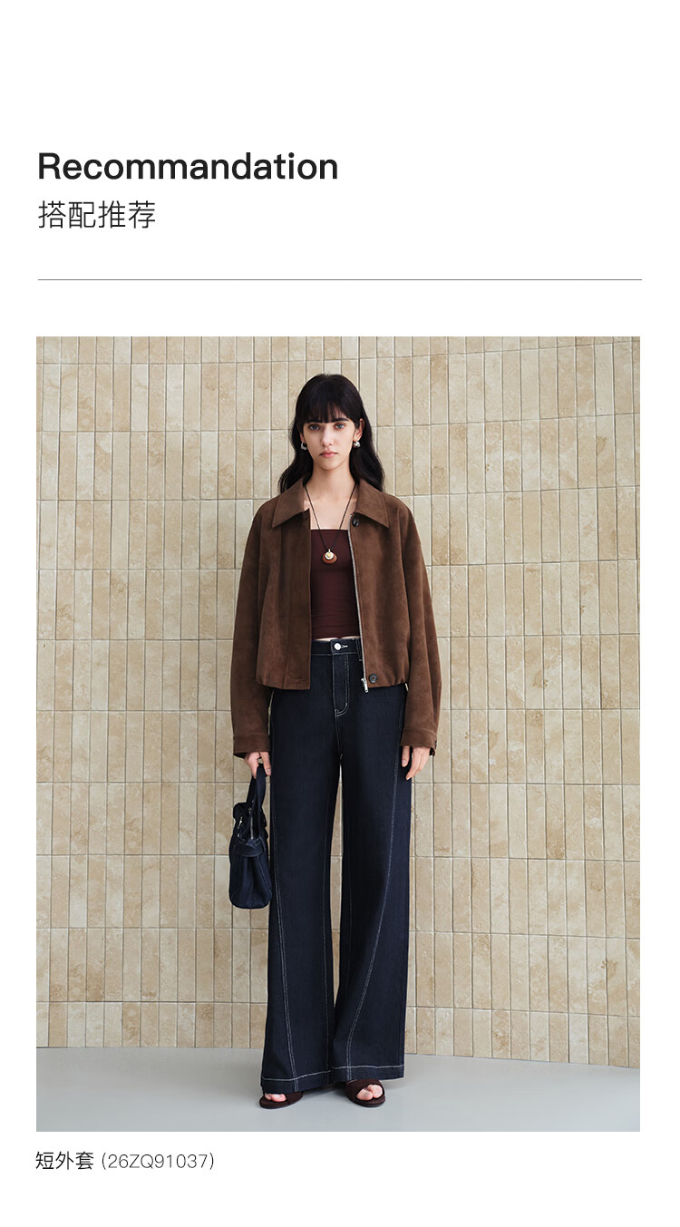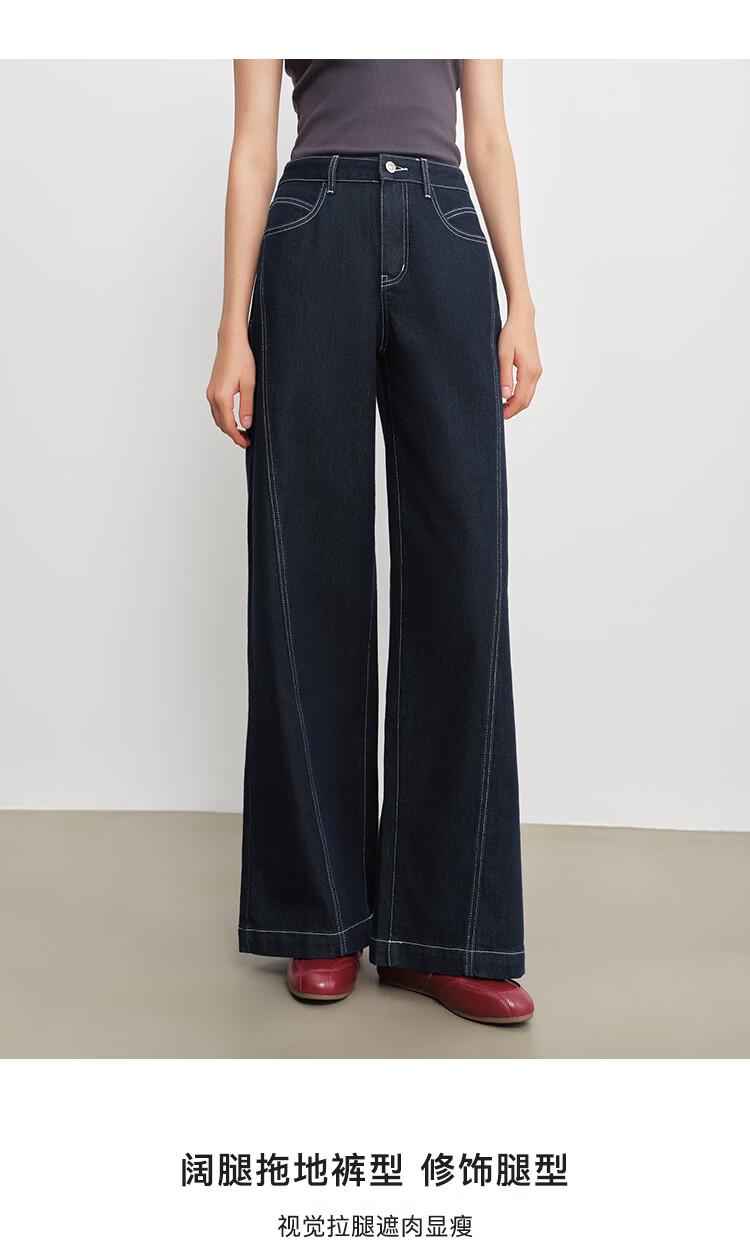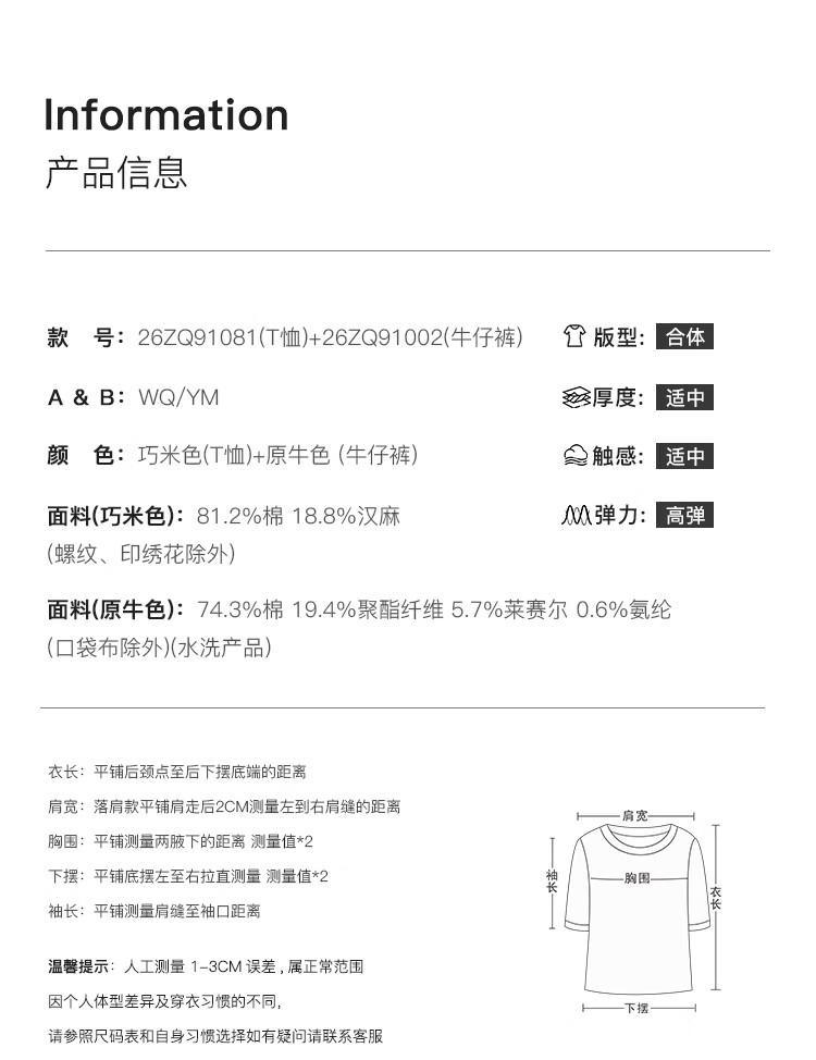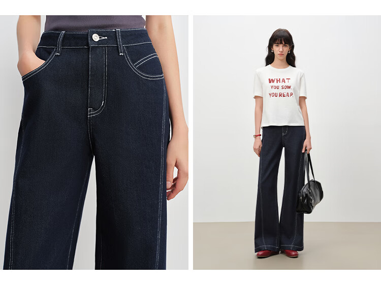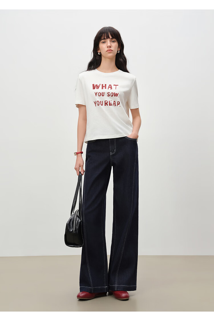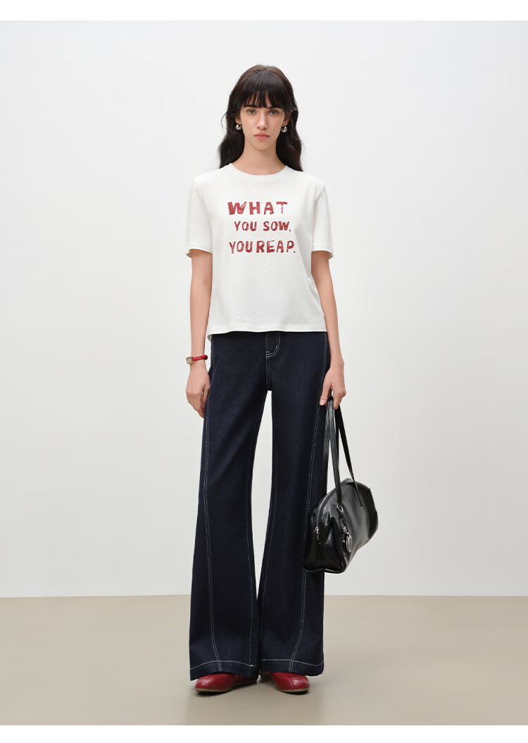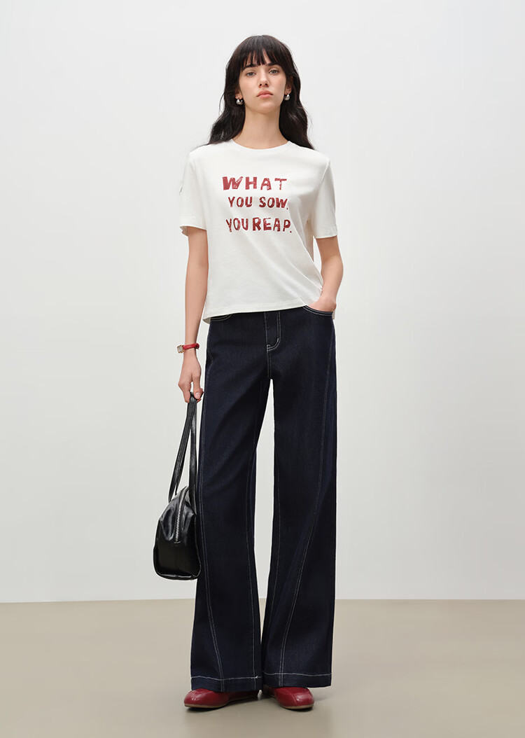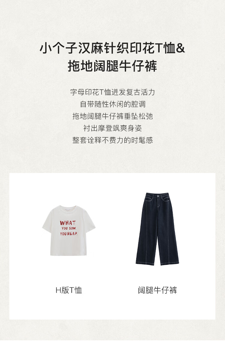 自巧小个子针织墨迹印花T恤&拖地阔腿牛仔裤套装女2026年春季新款 原牛色牛仔裤 M (尺码:4)