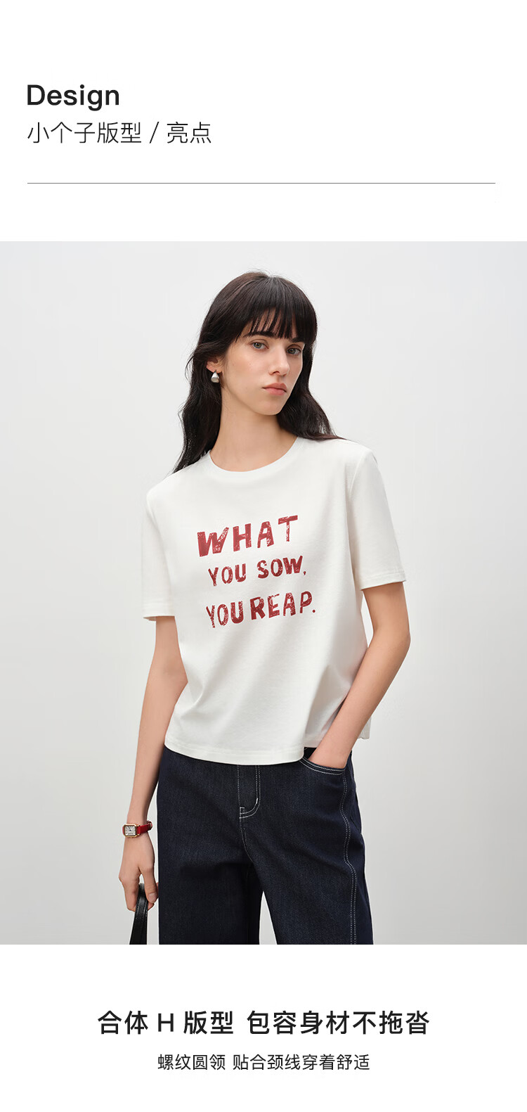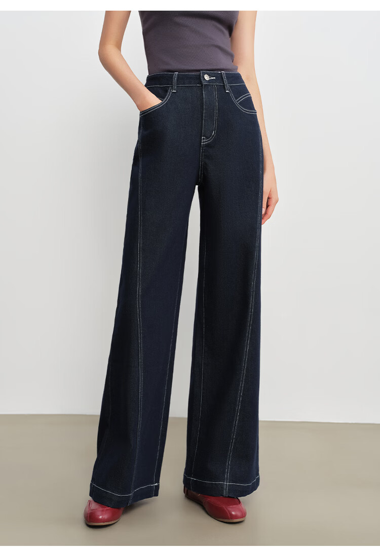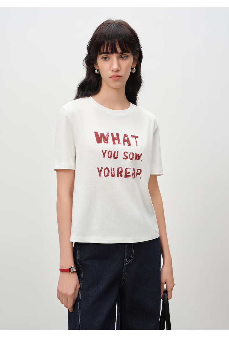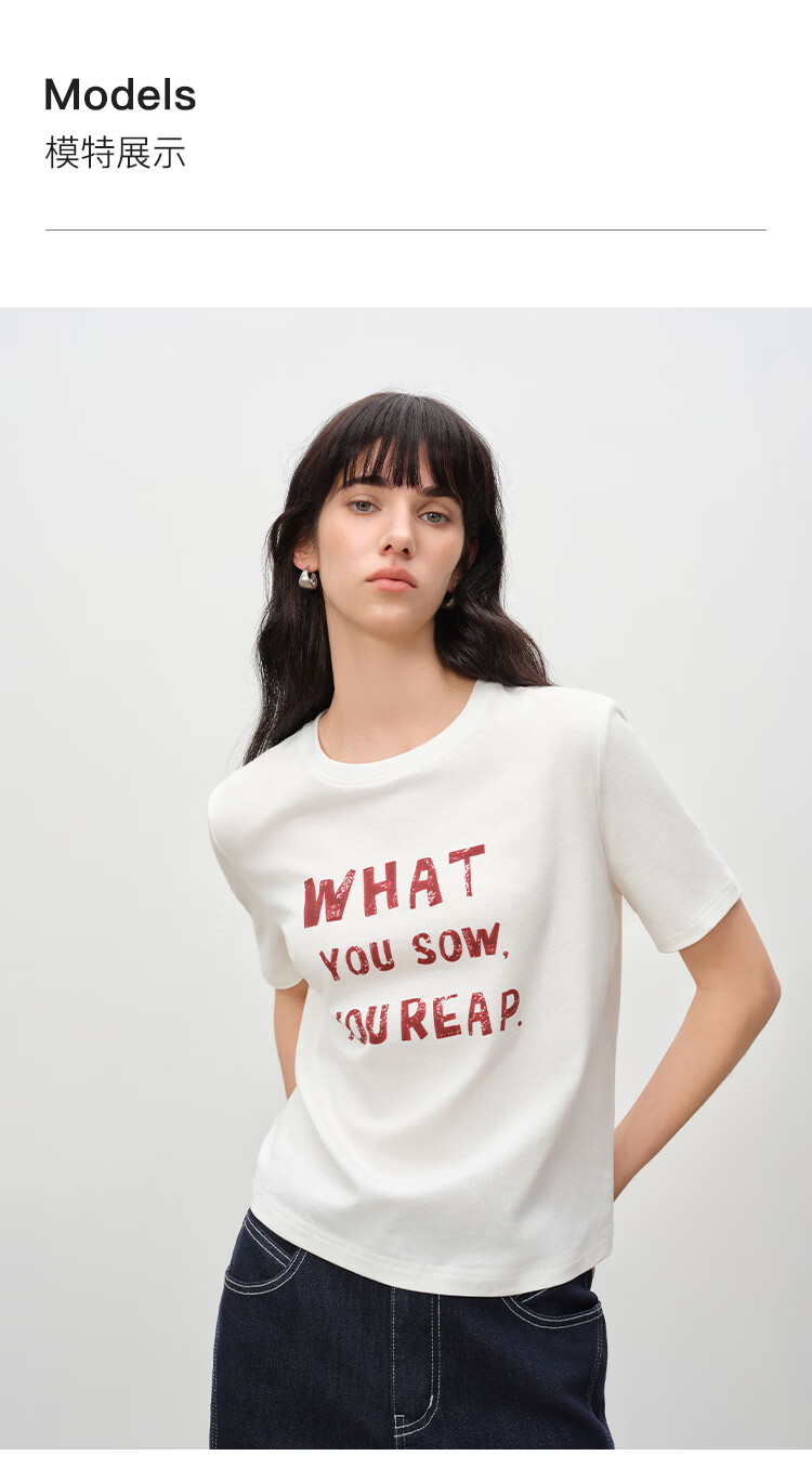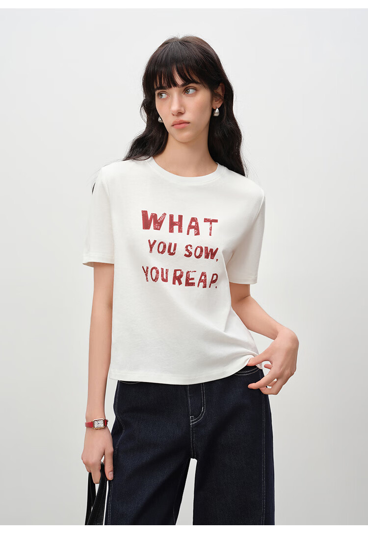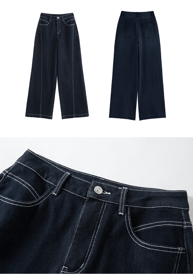 自巧小个子针织墨迹印花T恤&拖地阔腿牛仔裤套装女2026年春季新款 原牛色牛仔裤 M (尺码:4)