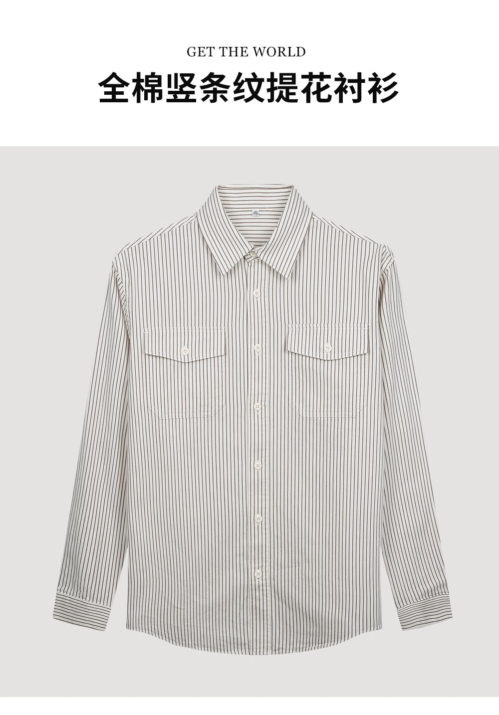 才子(TRIES)纯棉提花衬衫男竖条纹设计商务休闲质感高级春秋季长袖简约衬衣 灰色 M (165/84A)