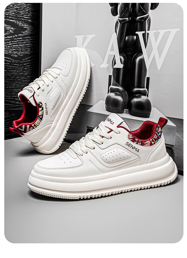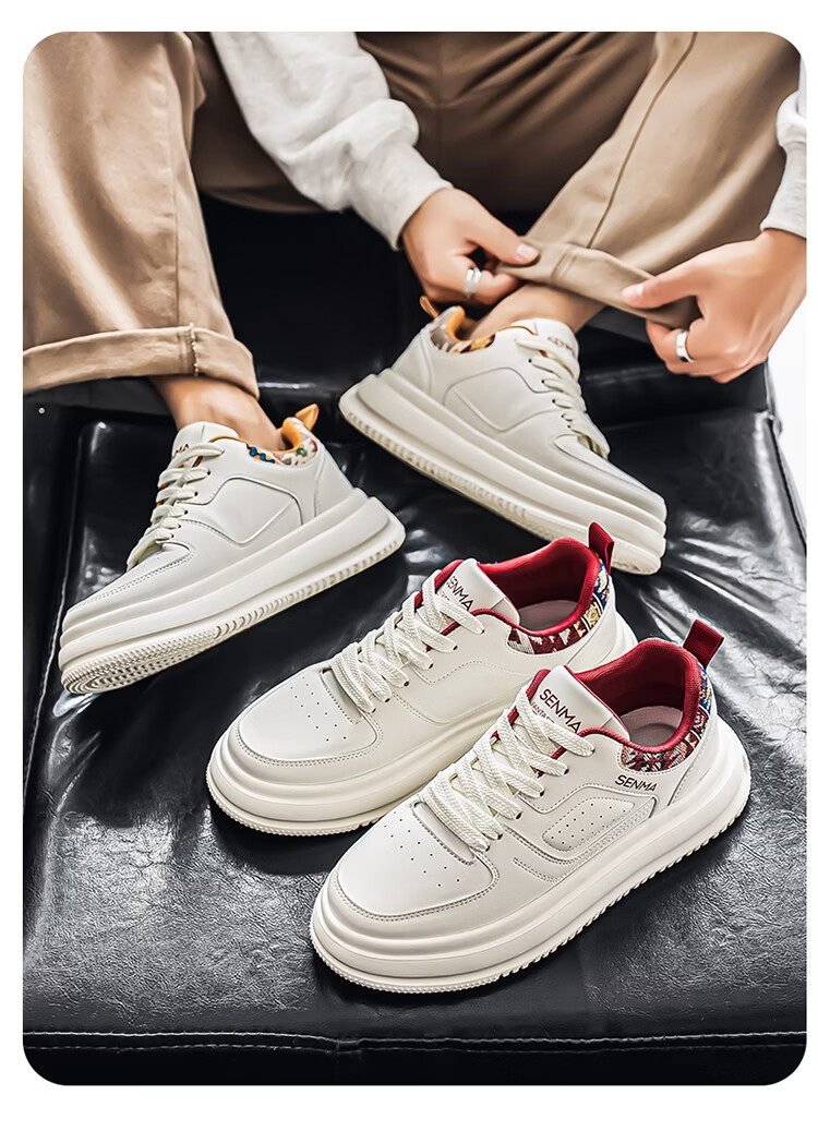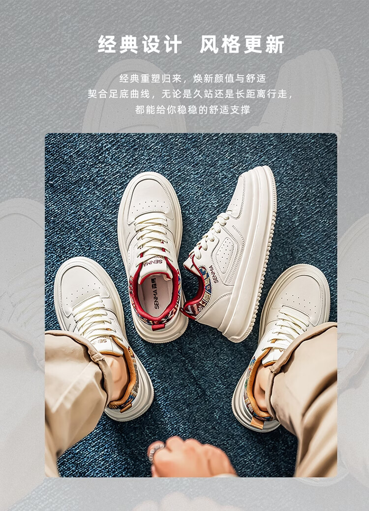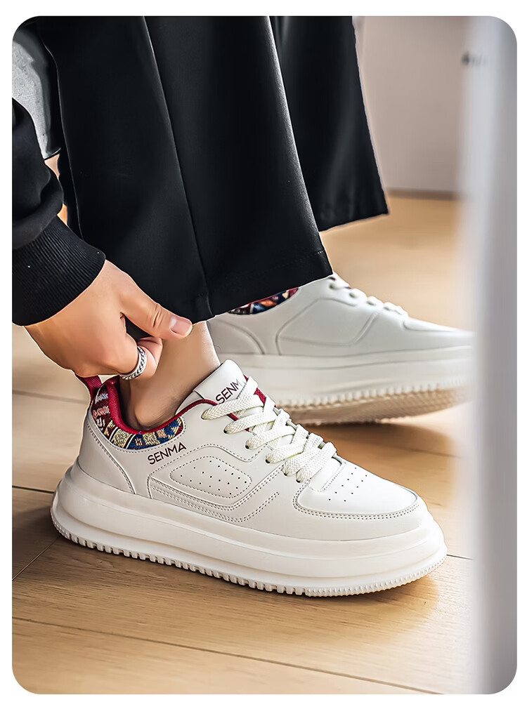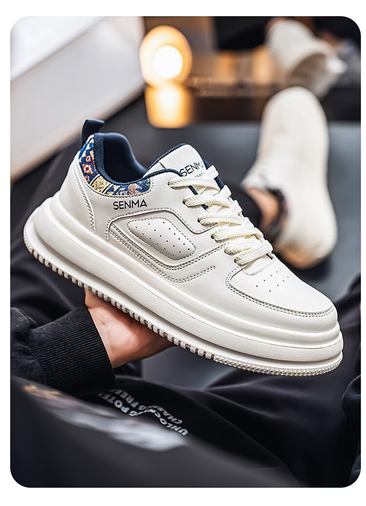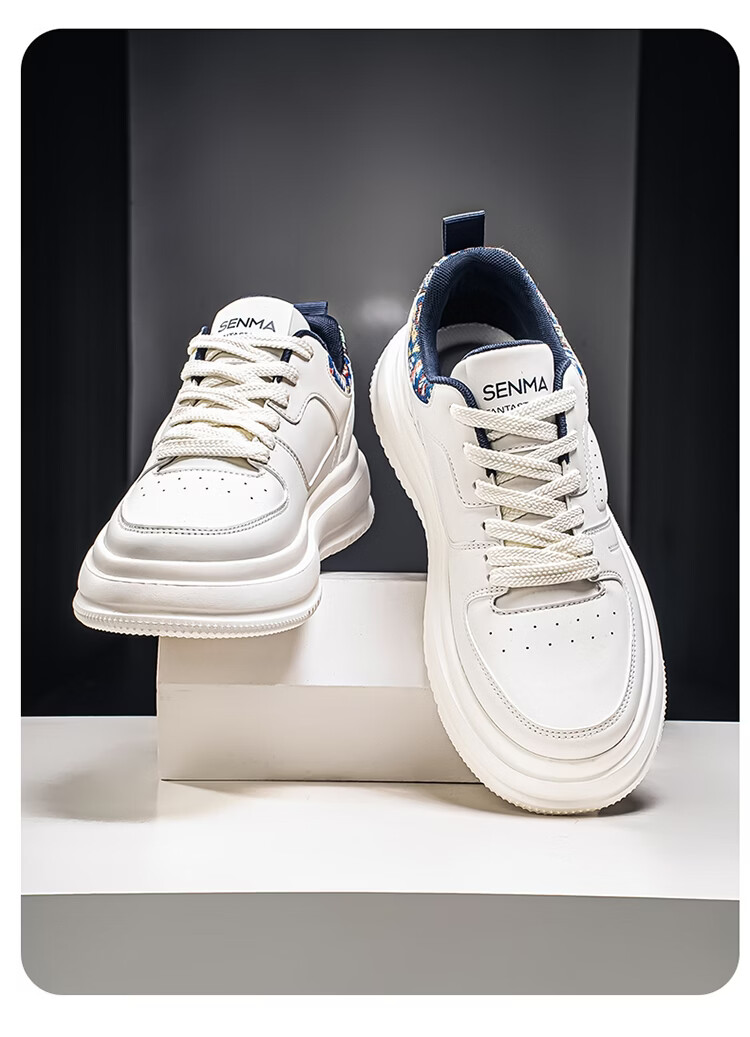 森馬男鞋2026新款春季百搭小众低帮板鞋男士厚底防滑运动皮面小白潮鞋 白蓝【基础款】 39 标准码数/现货秒发