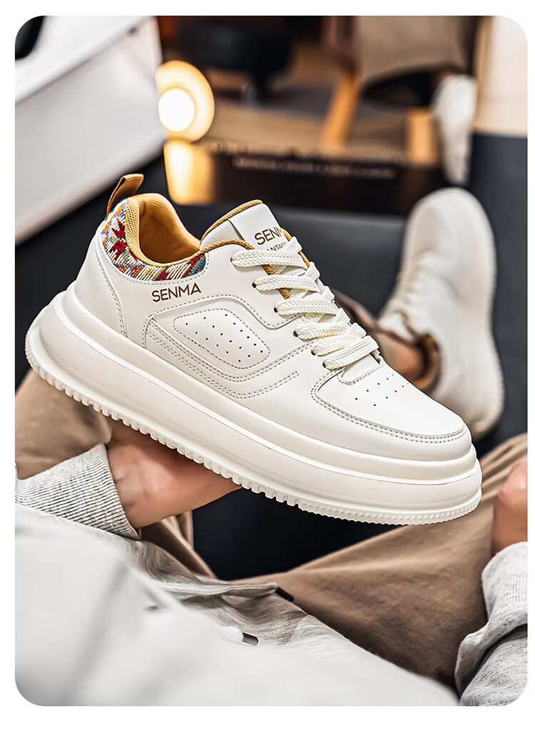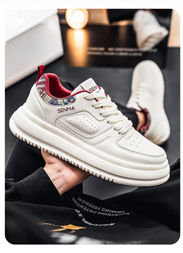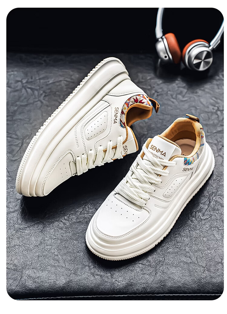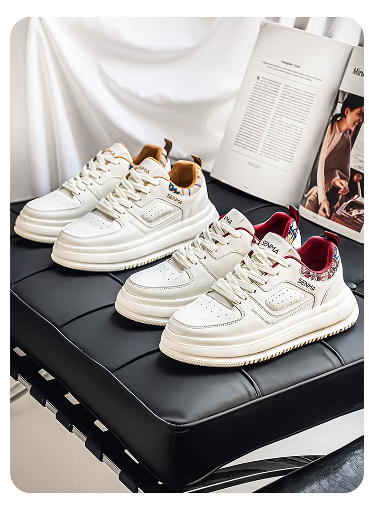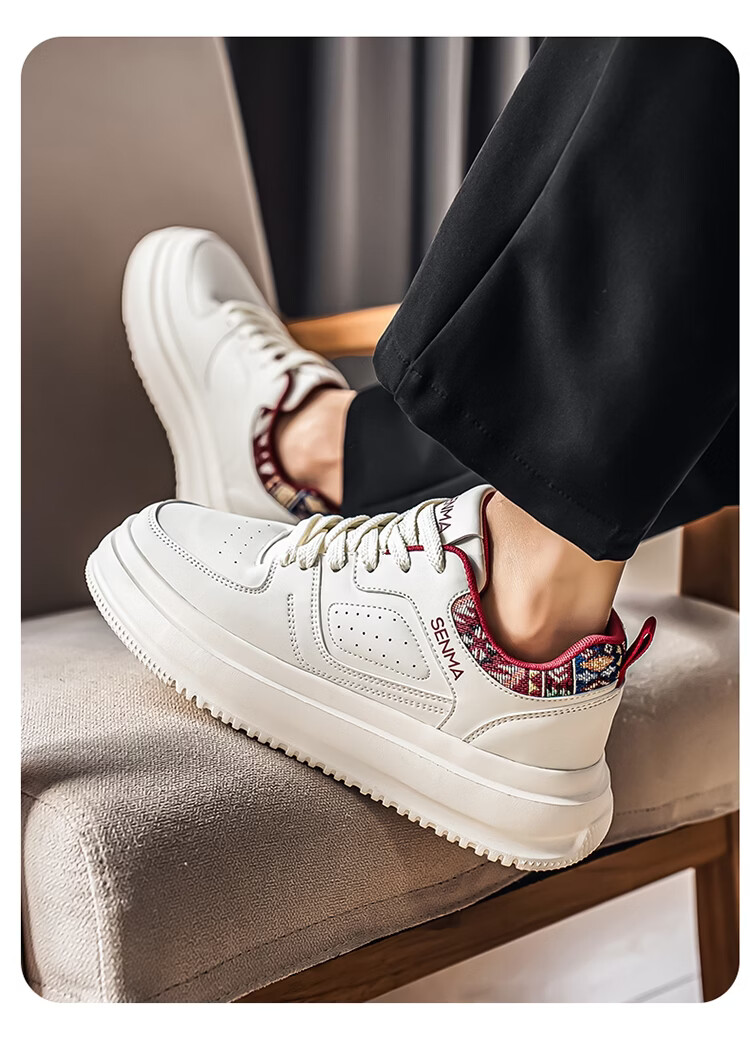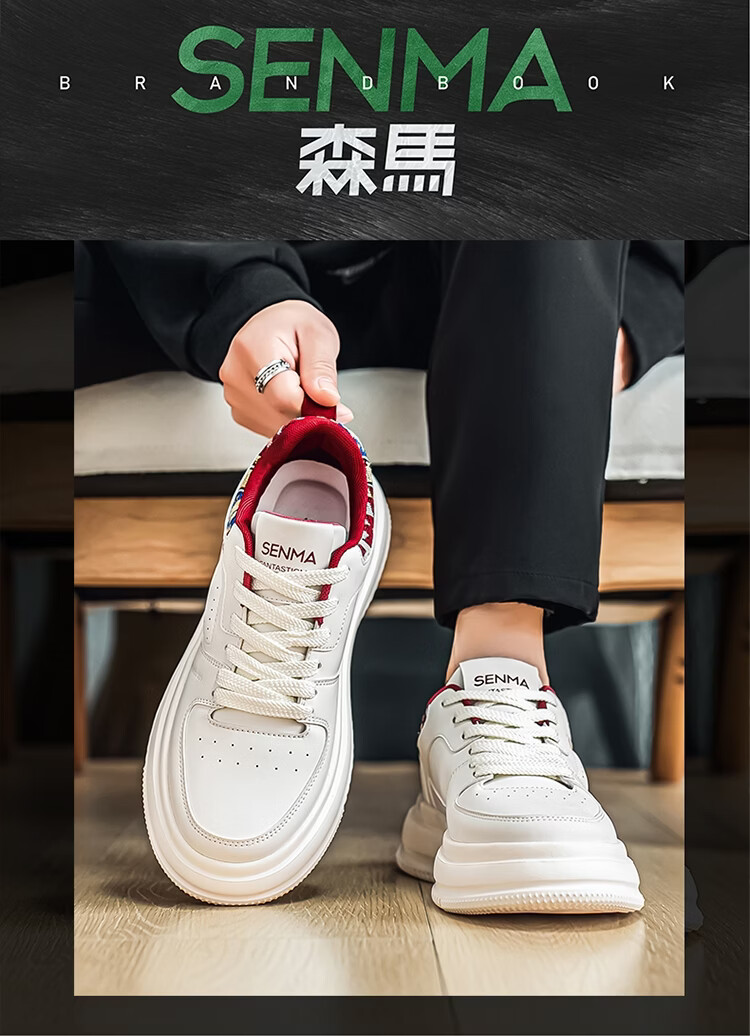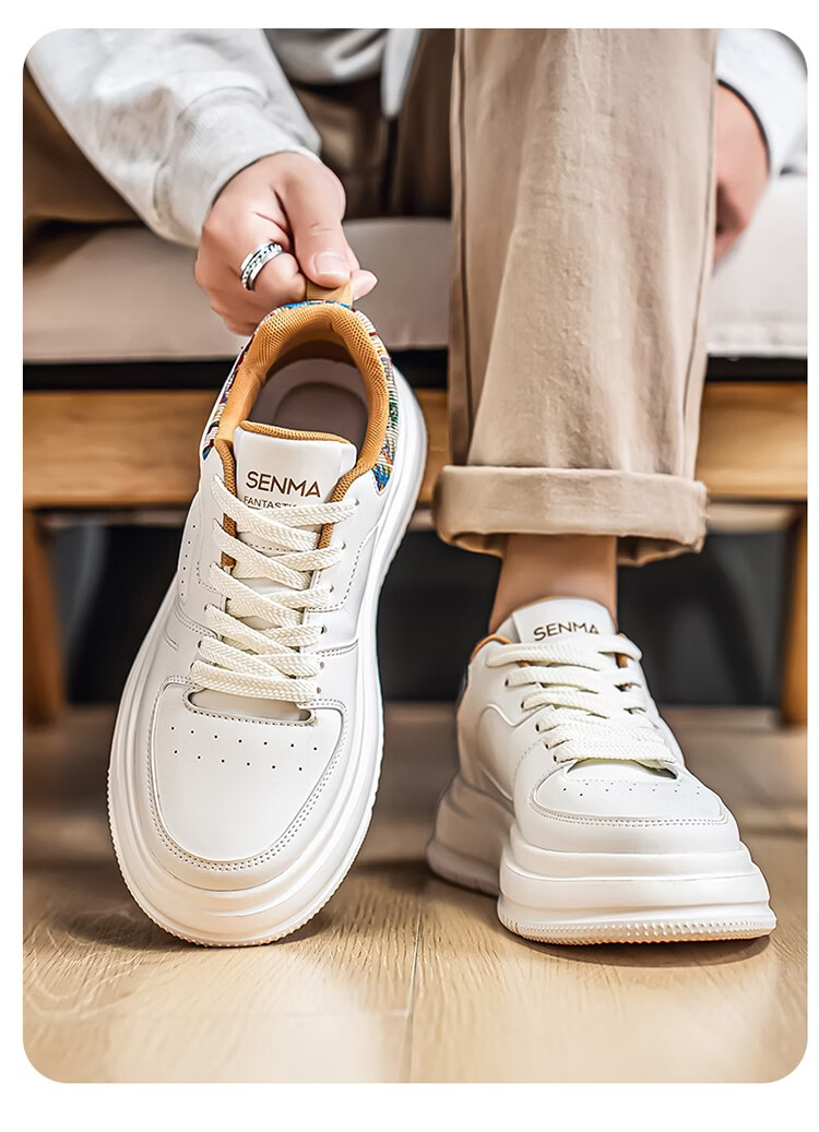 森馬男鞋2026新款春季百搭小众低帮板鞋男士厚底防滑运动皮面小白潮鞋 白蓝【基础款】 39 标准码数/现货秒发