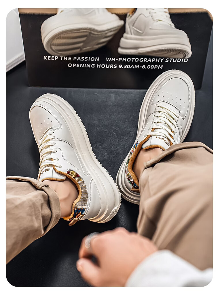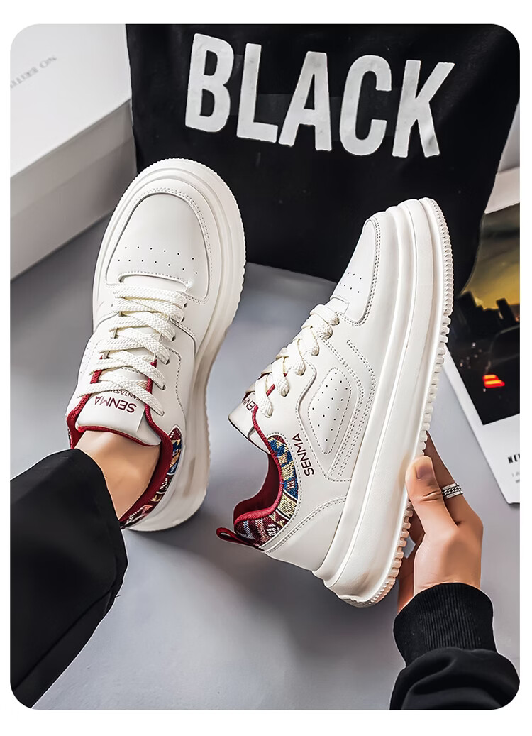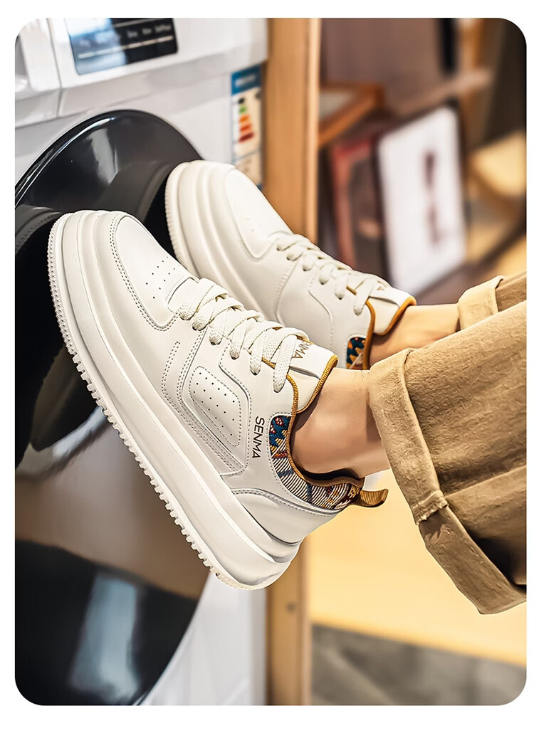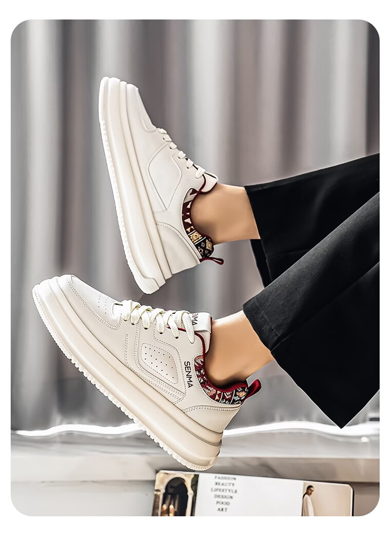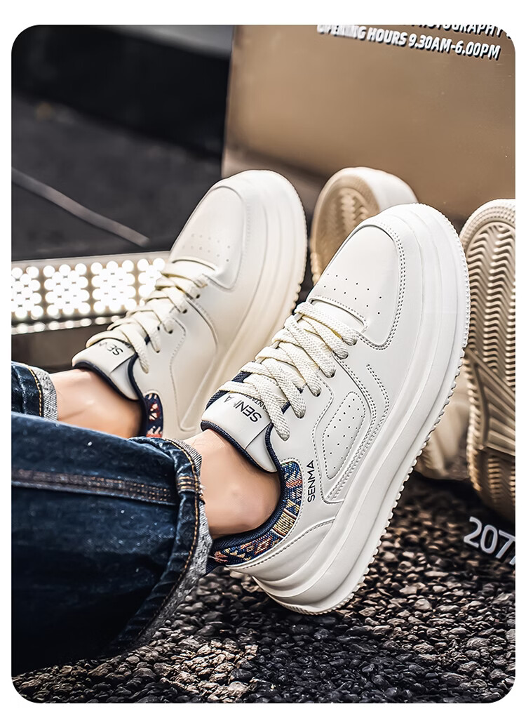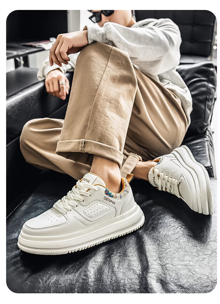 森馬男鞋2026新款春季百搭小众低帮板鞋男士厚底防滑运动皮面小白潮鞋 白蓝【基础款】 39 标准码数/现货秒发