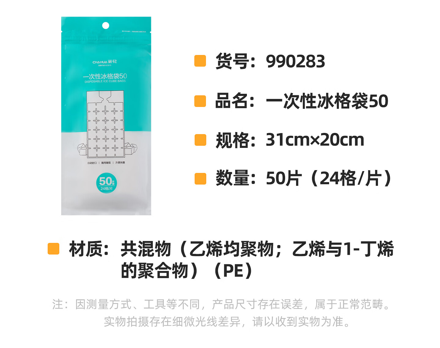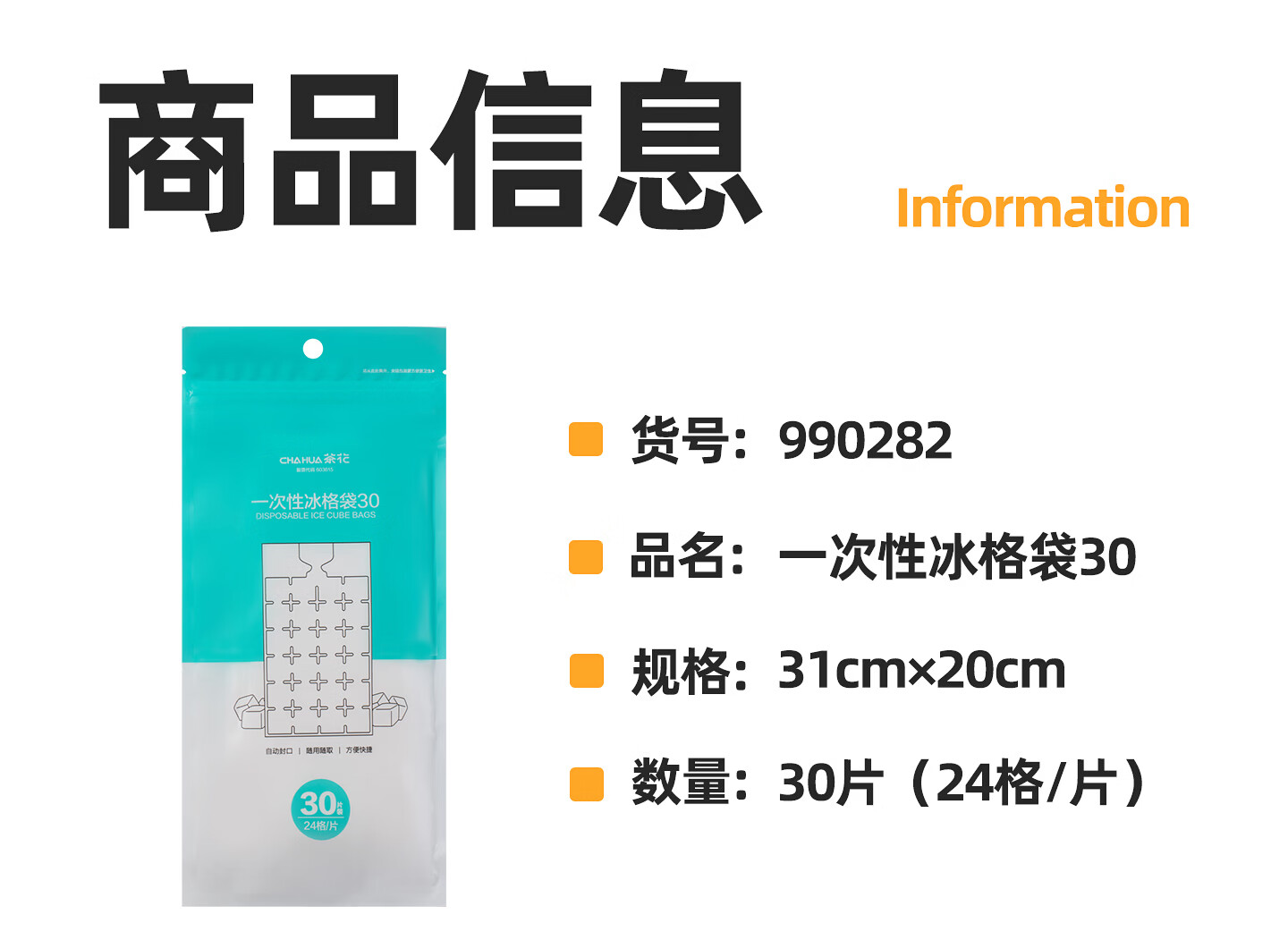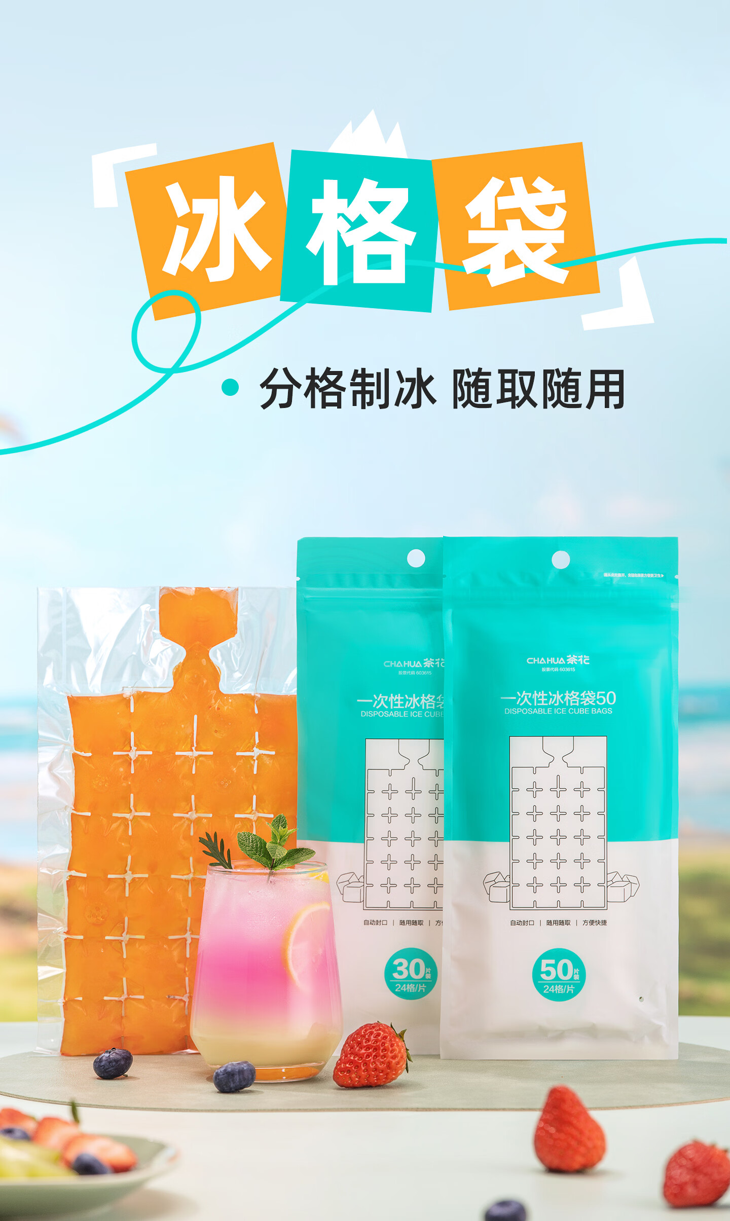 茶花(CHAHUA)茶花家用冰格制冰袋方便快捷自动封口一次性 自封冰格袋【30片/720格】