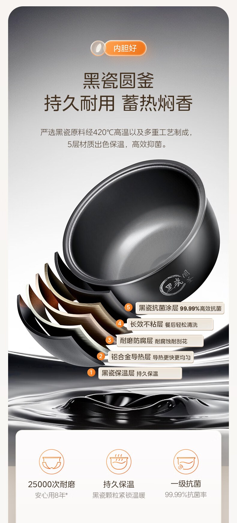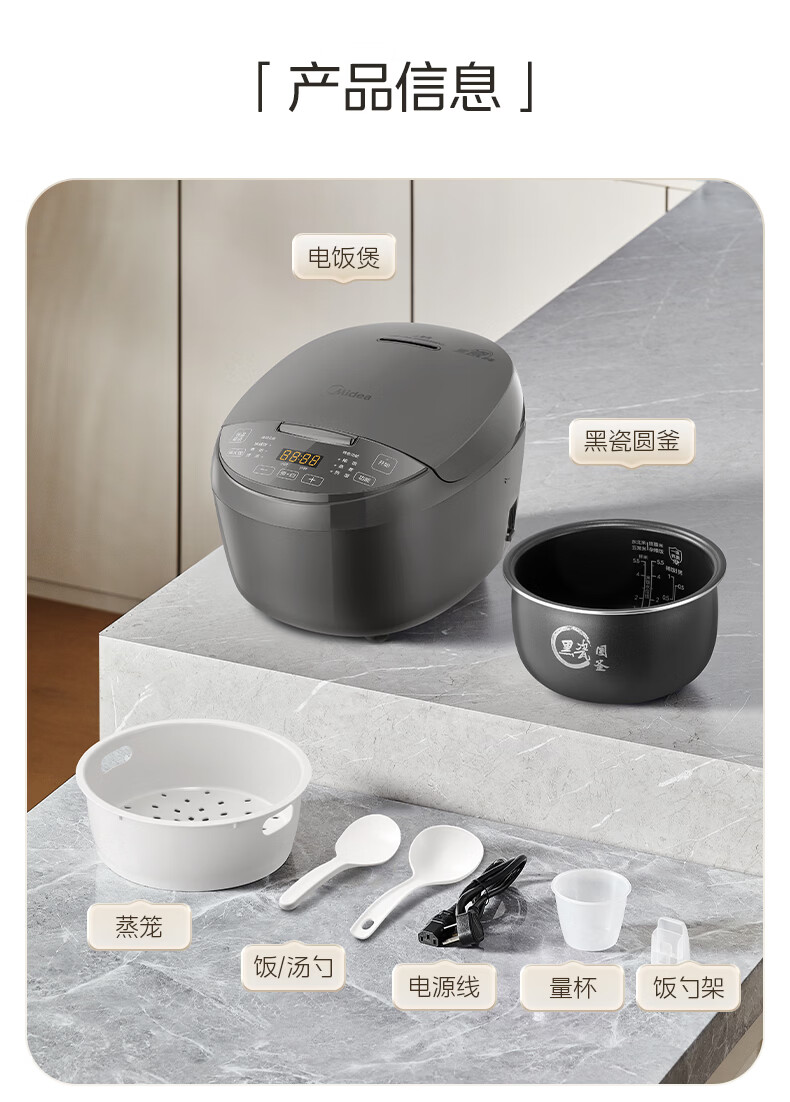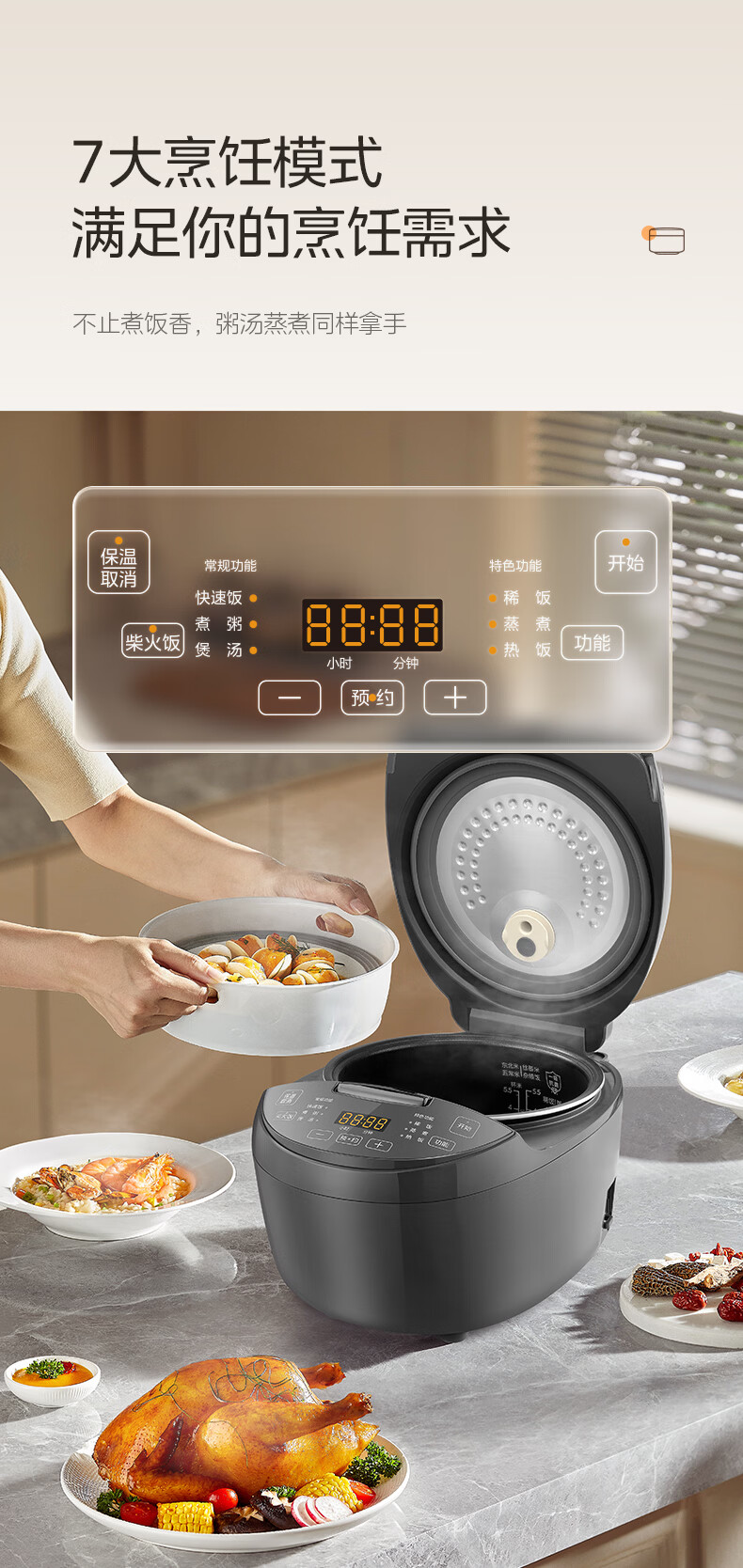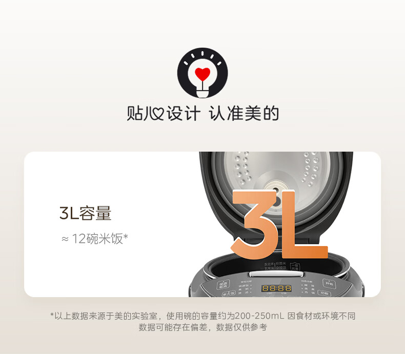 美的(Midea)智能电饭煲电饭锅2-3人家用3L可拆蒸汽阀智能24H预约蒸煮米饭锅MB-RA303