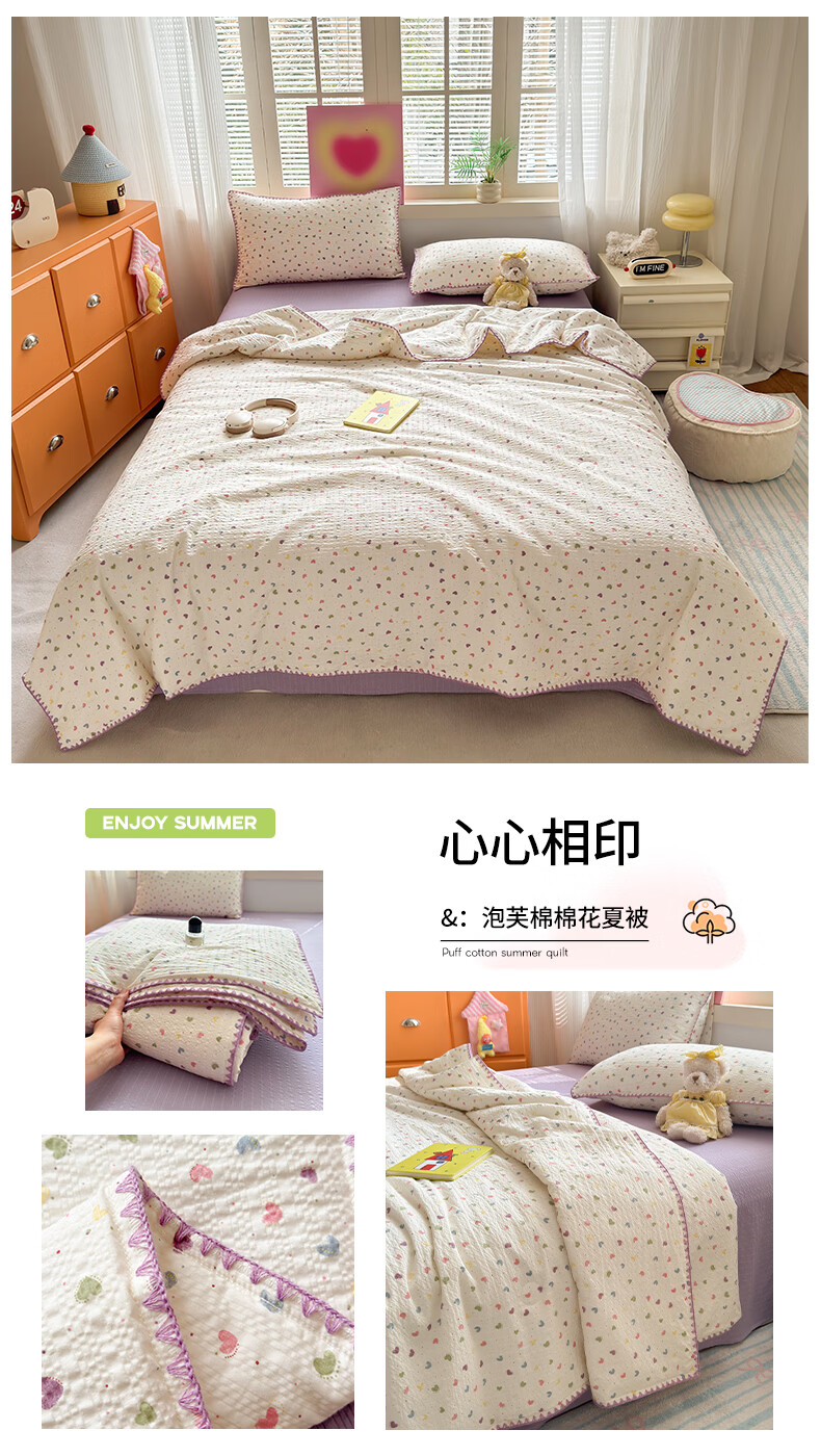 无印良品夏季新疆棉花空调被夏凉被单人可机洗水洗裸睡薄款被子夏被四件套 心心相印【A类母婴级 100%新疆棉花填充】 150cmx200cm单夏被