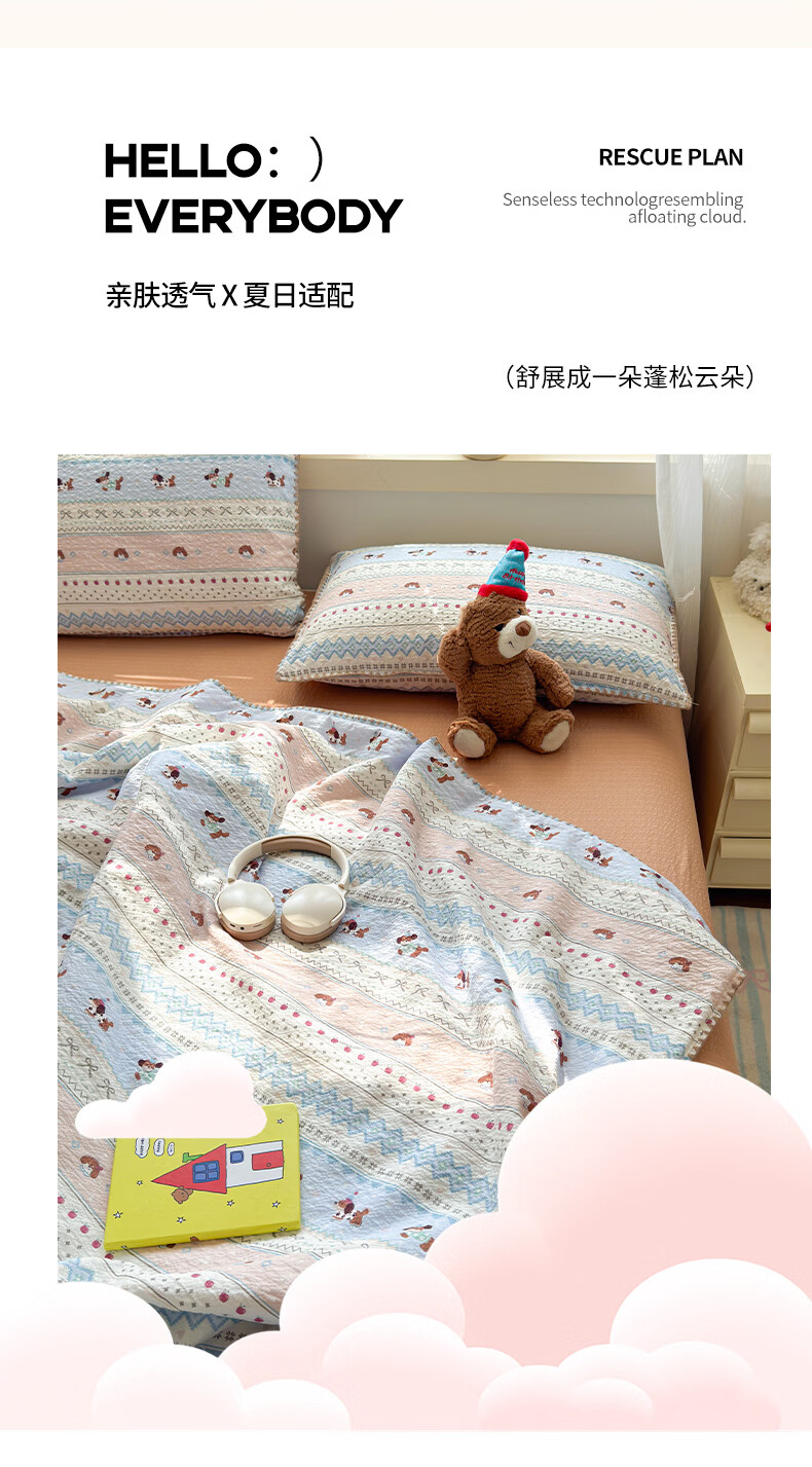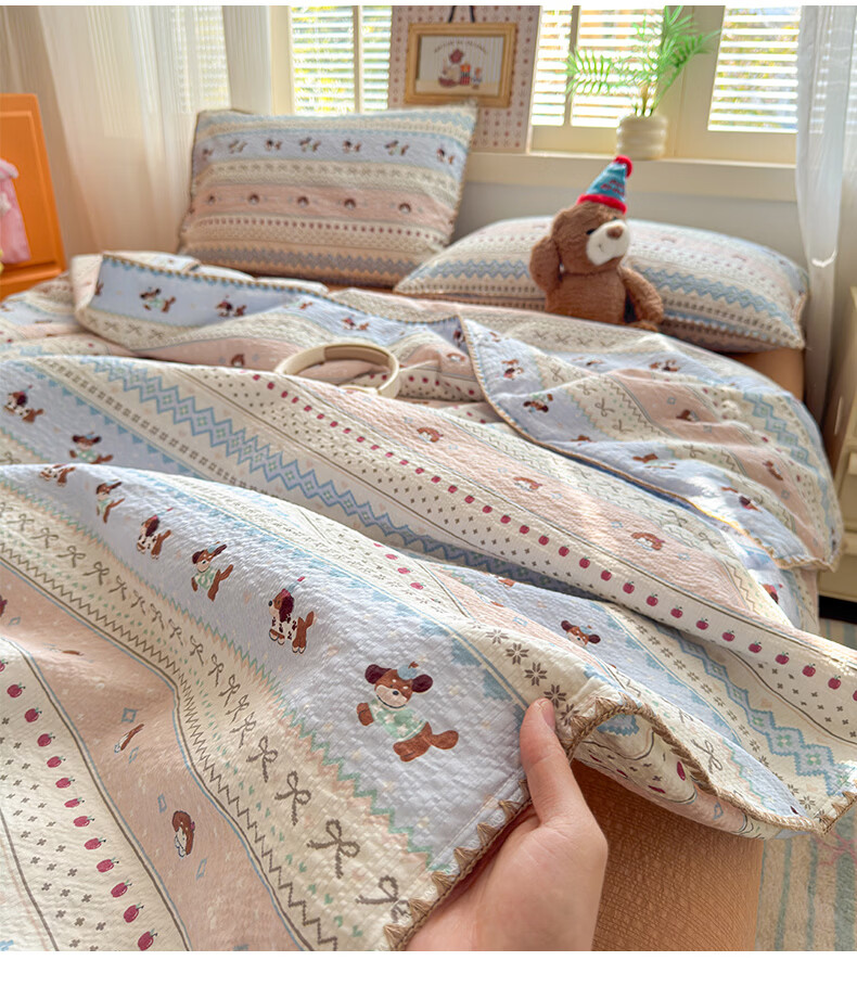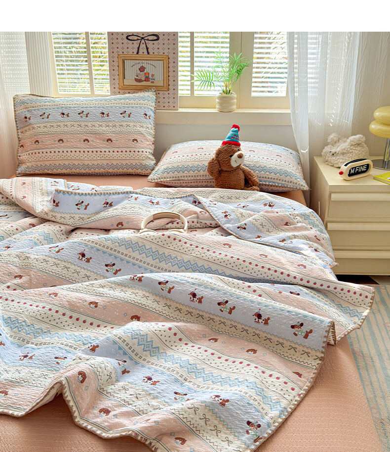 苏萱2026新款全棉纯棉华夫格夏被四件套夏季夏凉被空调被可机洗单双人 简森兰 单人夏被-150*200cm