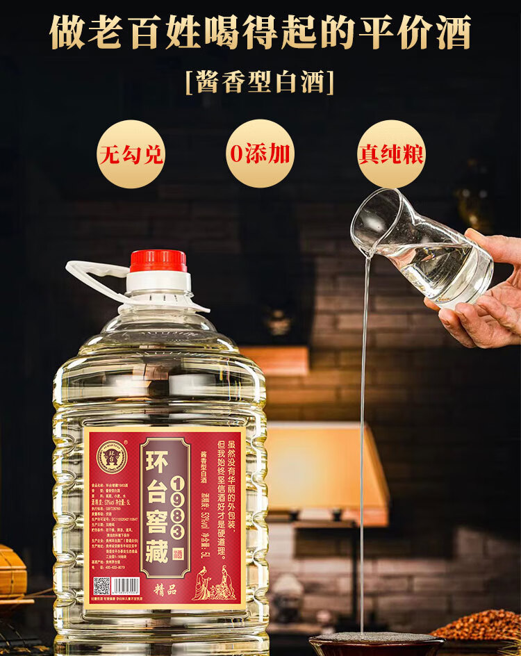 环台贵州酱香型白酒53度粮食酒高粱原浆老酒桶装10斤高度泡酒用酒 53度 5000mL 1桶
