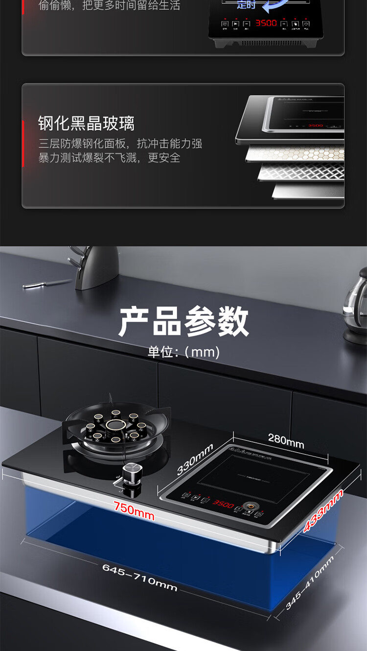 欢呼好太太烟灶套装电磁炉煤气灶二合一气电两用灶油烟机燃气灶套餐两件套嵌入式一体双头一电一气电气灶 【两件套】40立方变频烟机+左电右气凹面 液化气