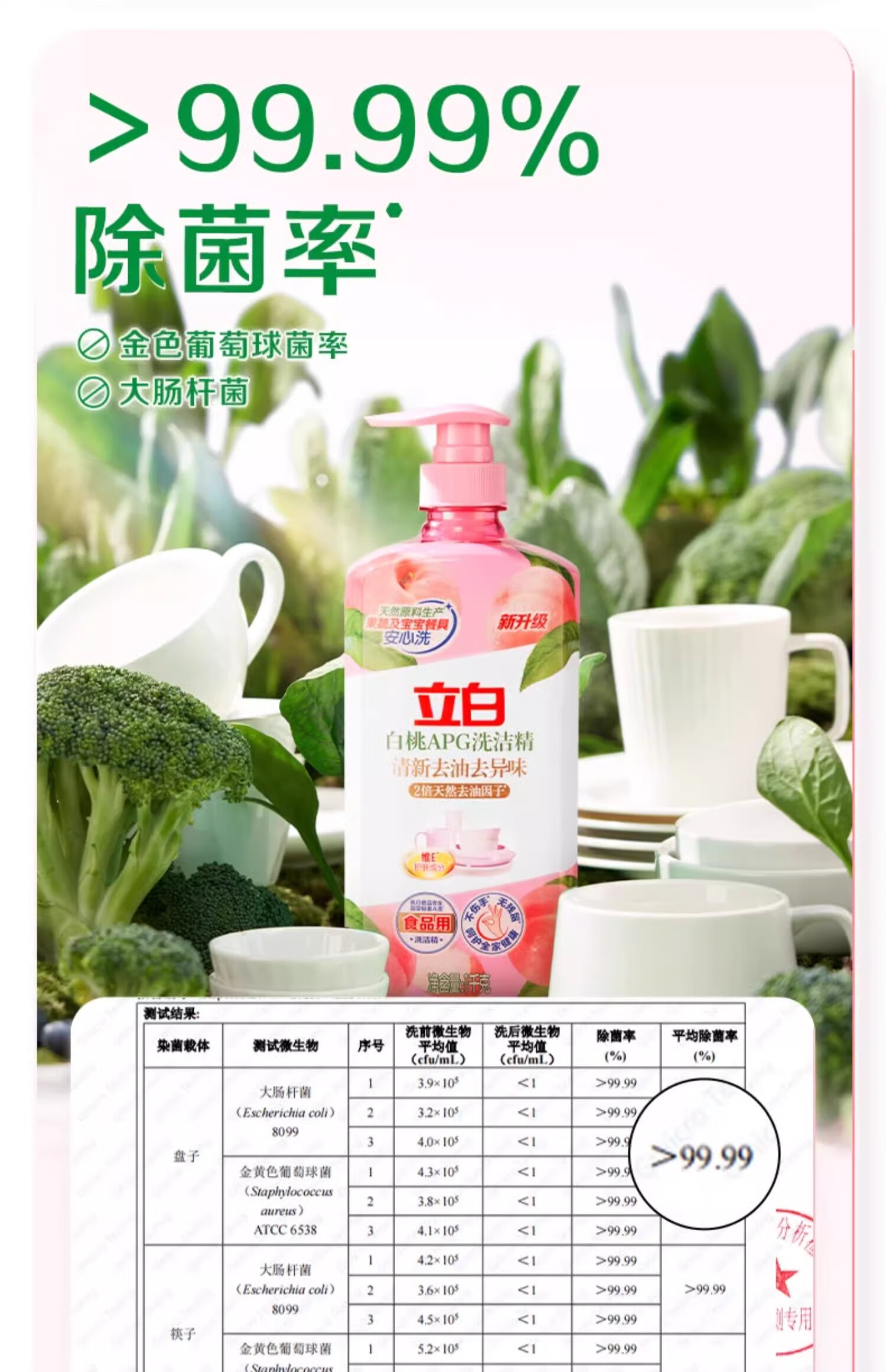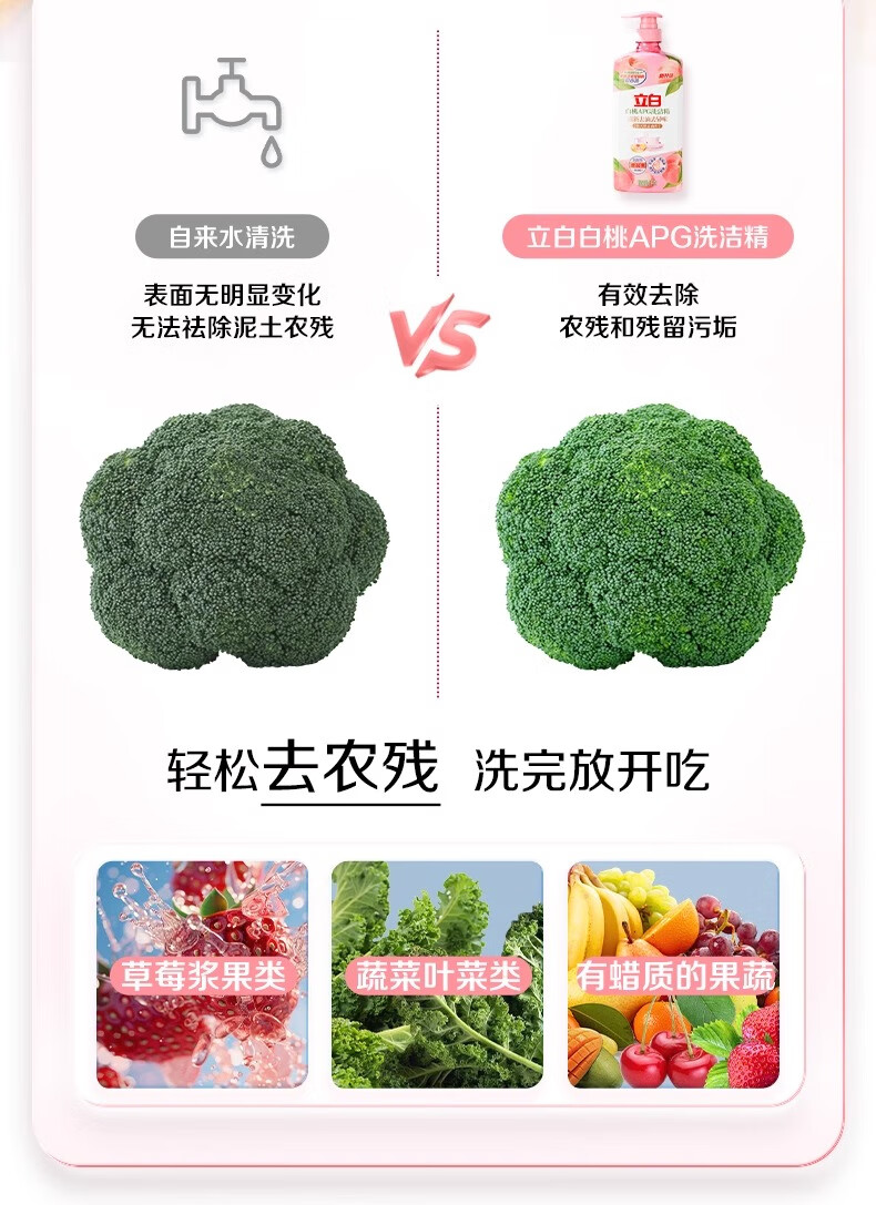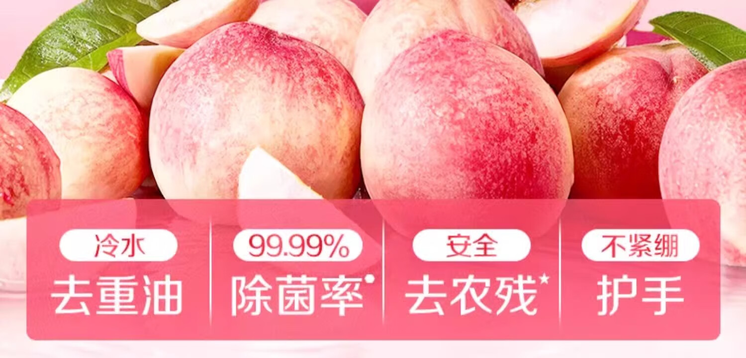立白白桃洗洁精APG有效去油果蔬餐具清洁温和不伤手食品用家用 2瓶*1kg