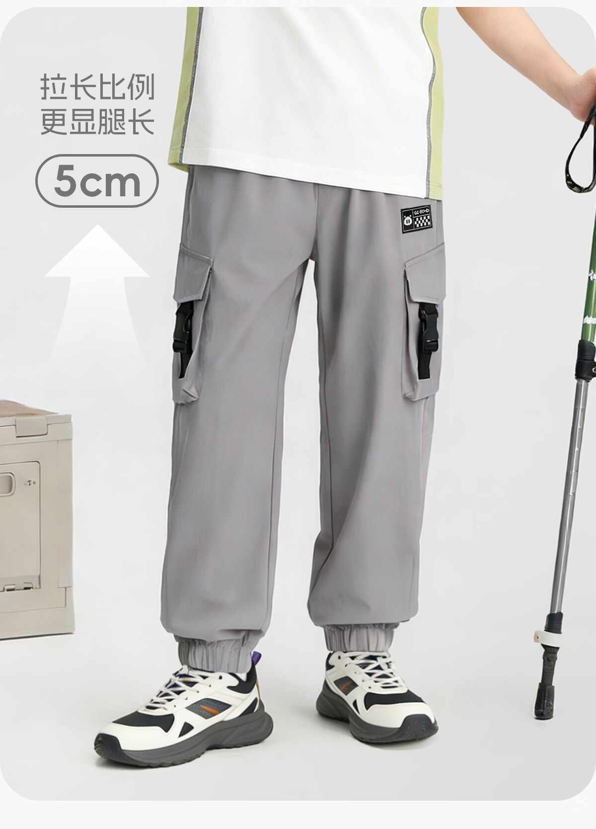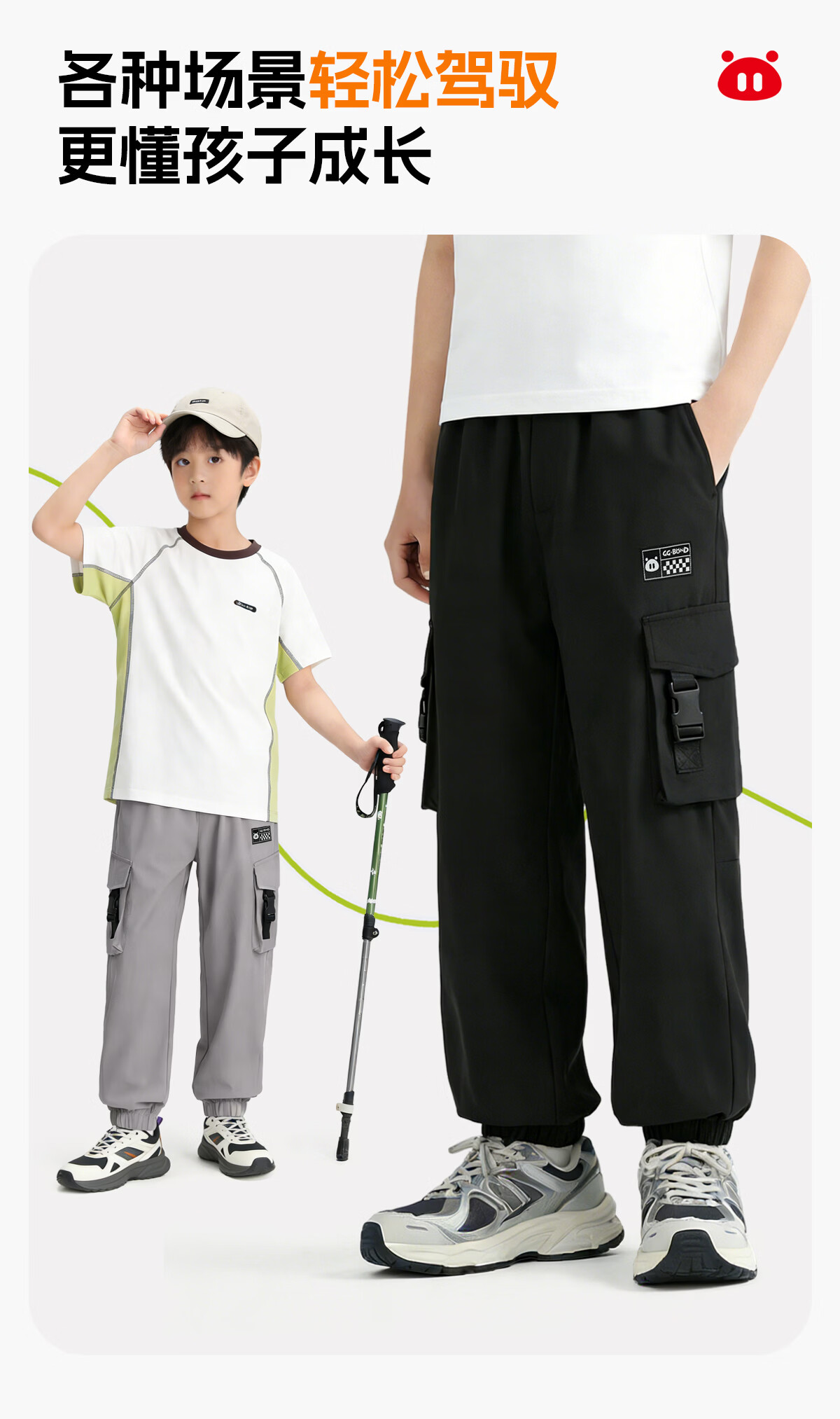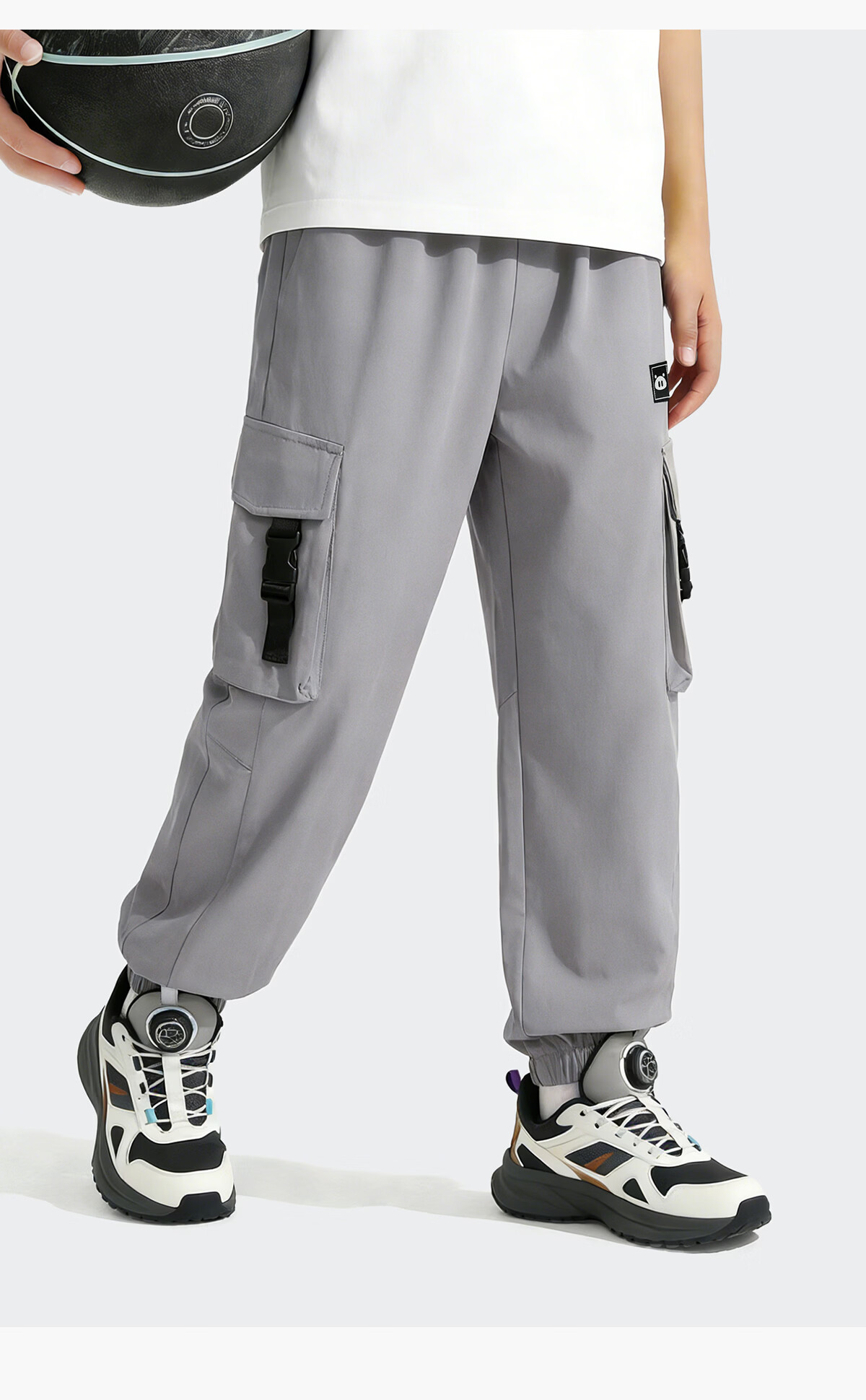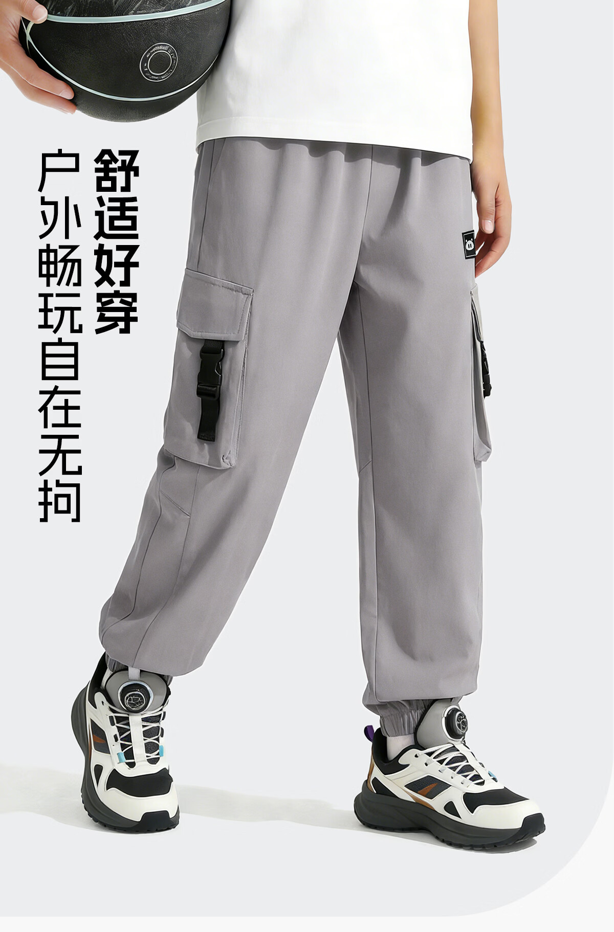 猪猪侠(GG·BOND)多口袋工装裤2026春夏新款儿童运动裤休闲裤透气长裤男童束脚裤子 灰色 165