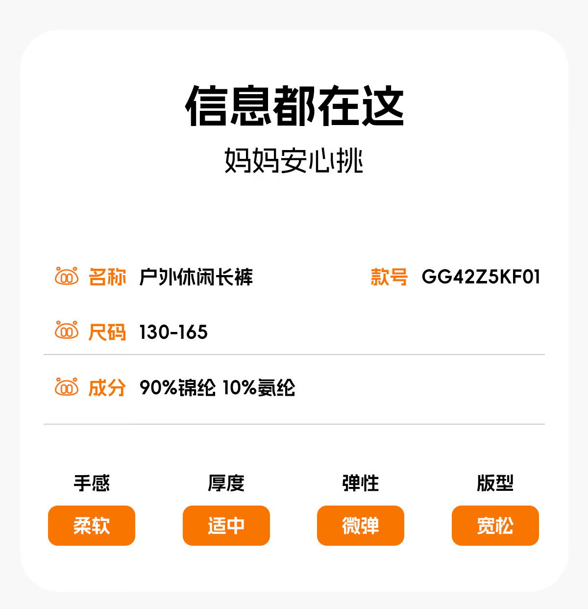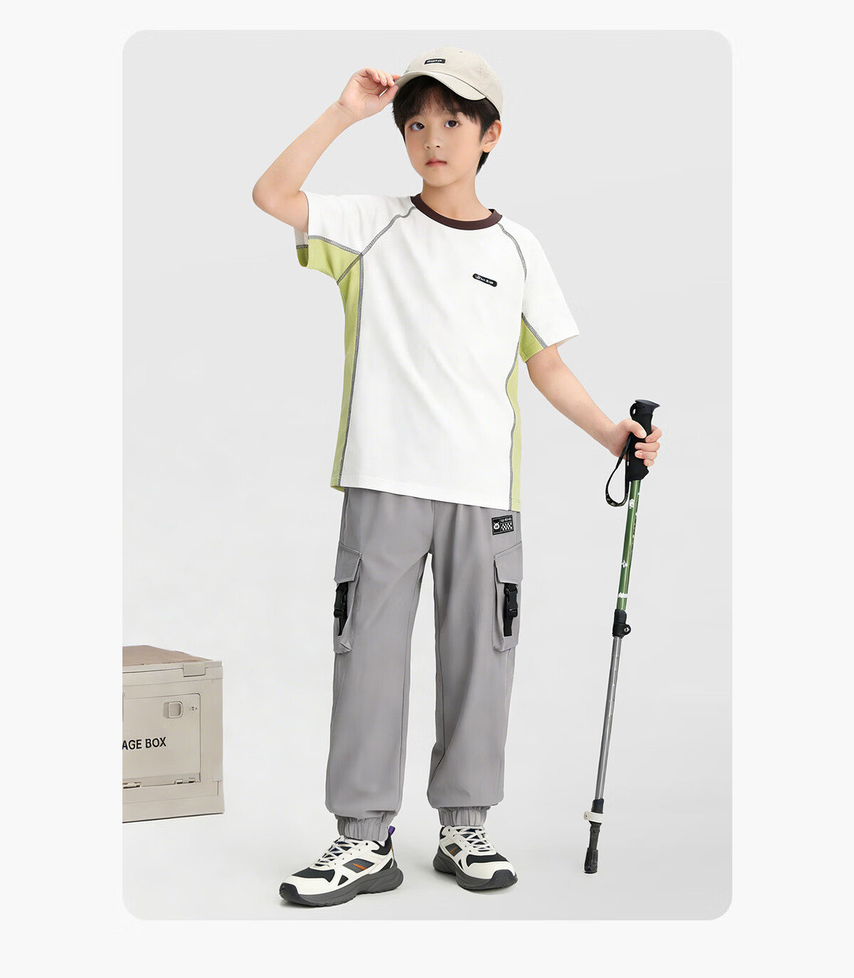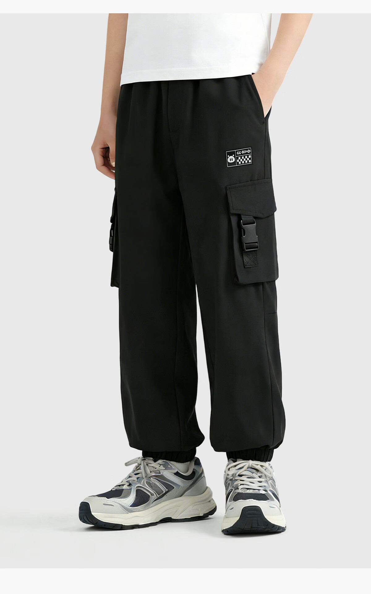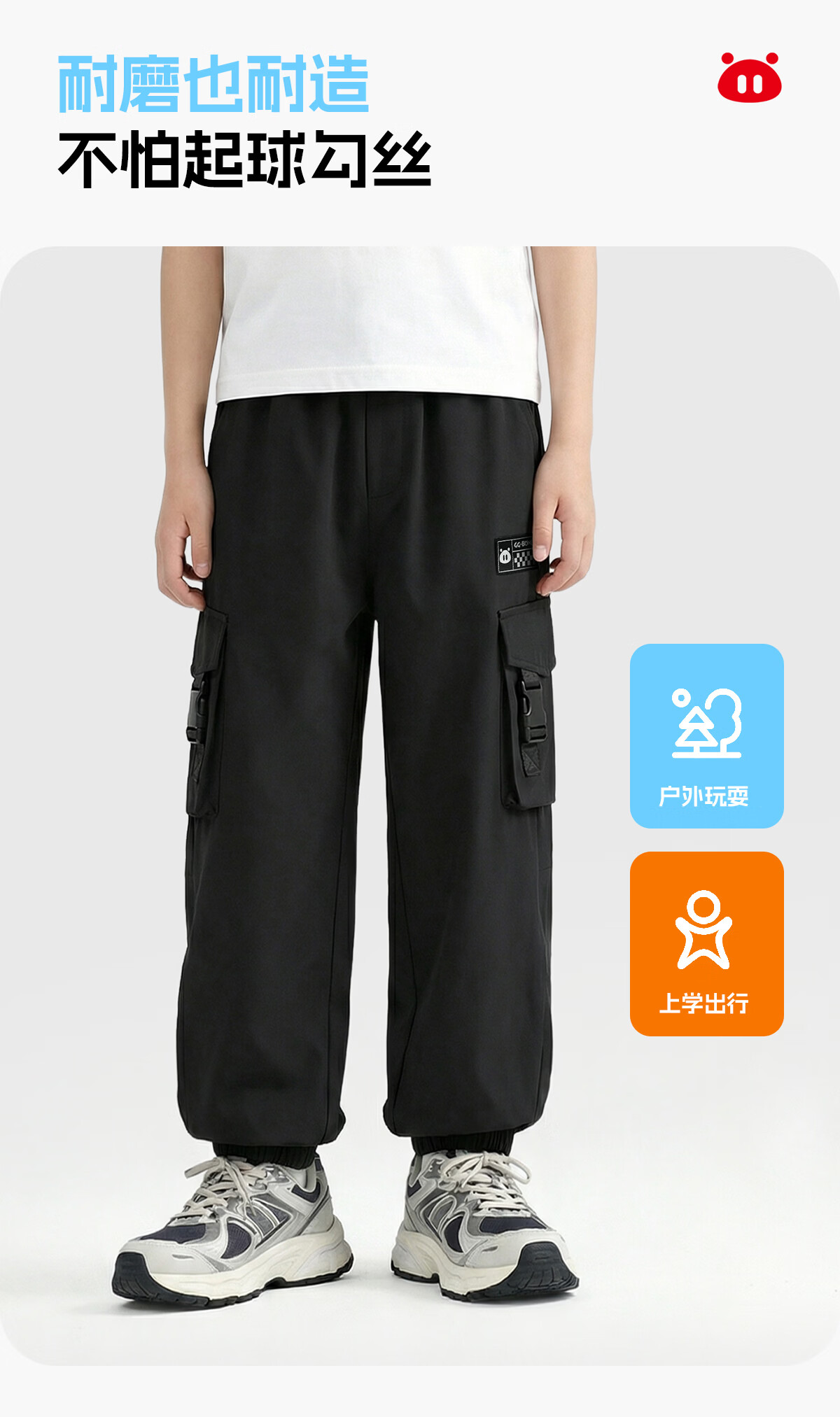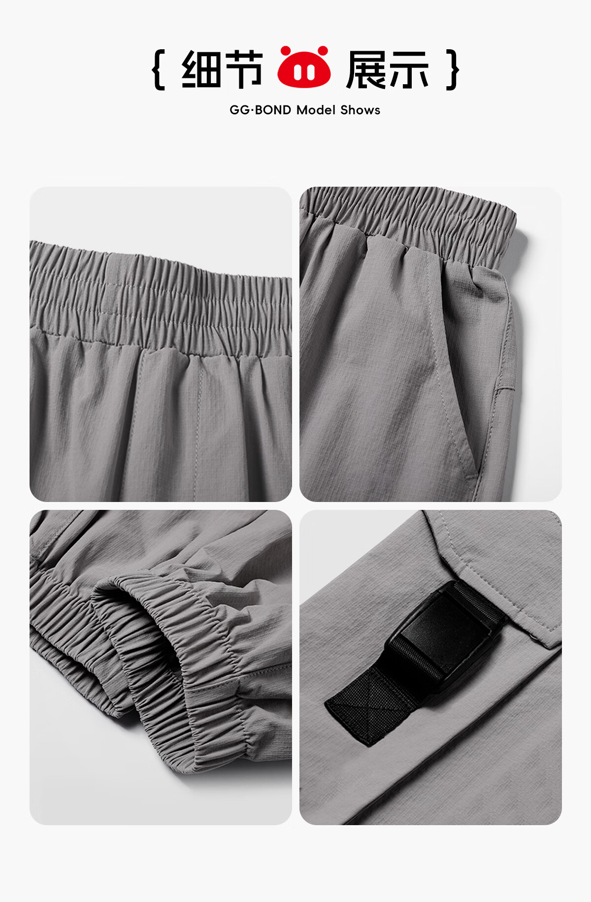 猪猪侠(GG·BOND)多口袋工装裤2026春夏新款儿童运动裤休闲裤透气长裤男童束脚裤子 灰色 165