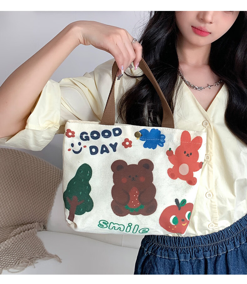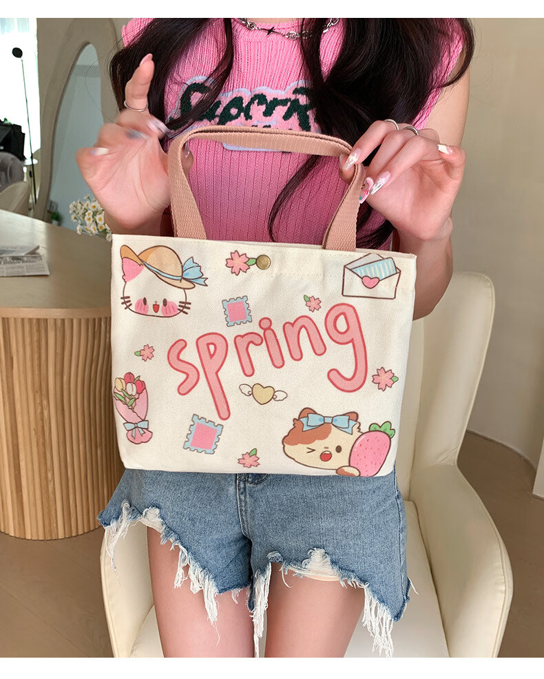 【甄选厂家】帆布包包女2025新款手拎布袋大学生上班饭盒包小包手 春天的信