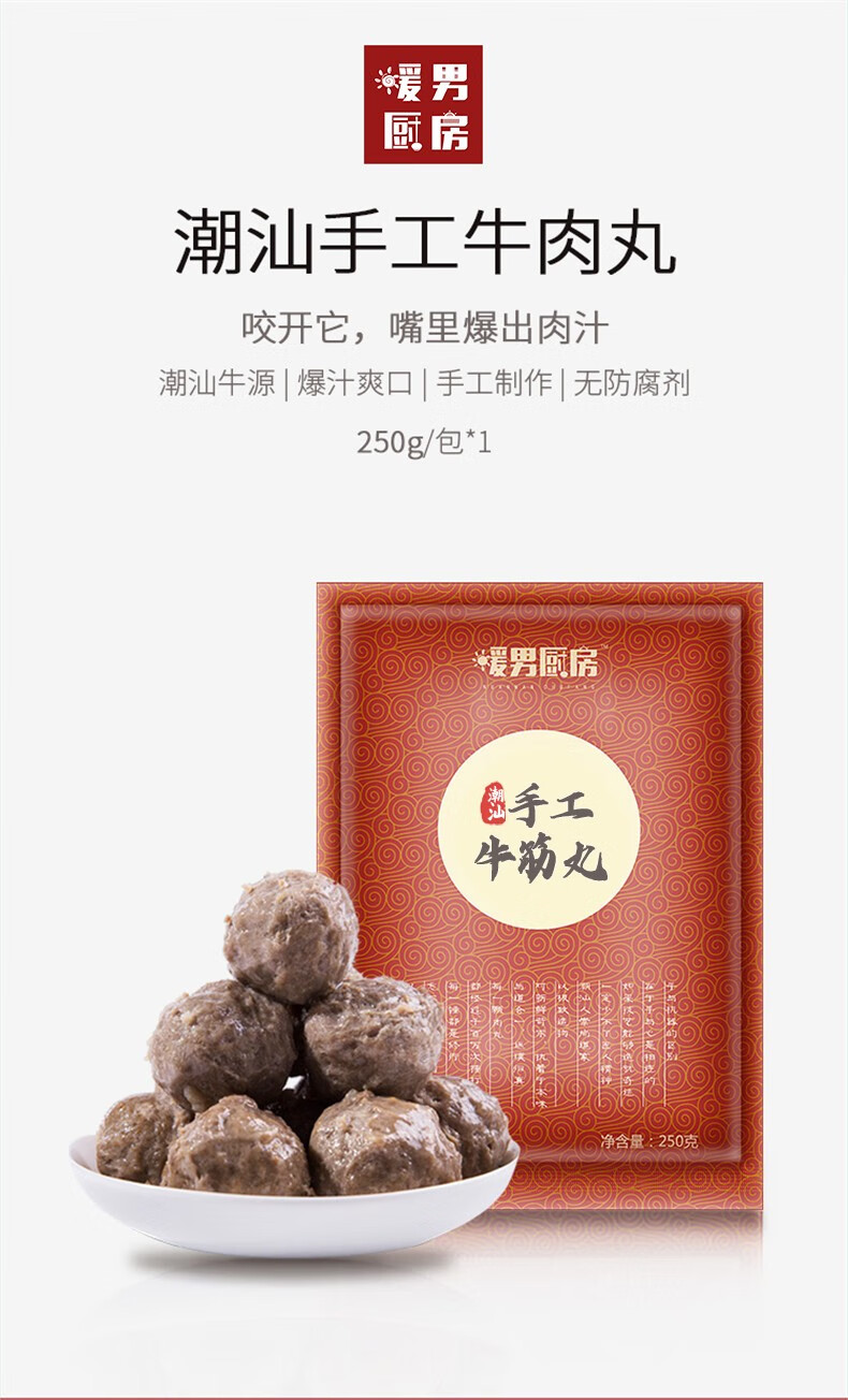 暖男厨房【79元任选4件】正宗牛肉丸牛筋丸 空气炸锅烧烤麻辣烫火锅食材 牛肉丸250g【任选拍4件到手79】