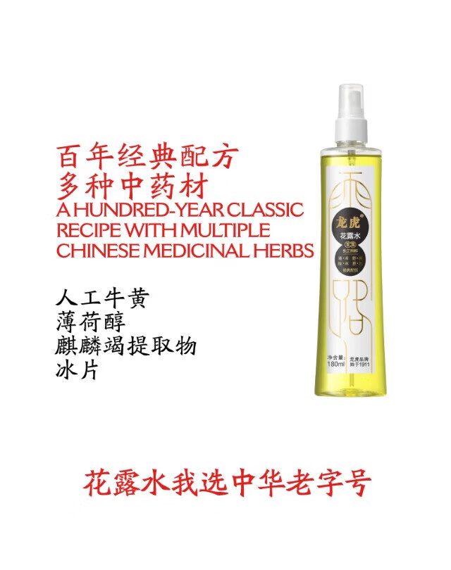龙虎清新舒缓喷雾型夏季户外防蚊蚊不叮百年老字号 止痒黄柏植萃型花露水195ml