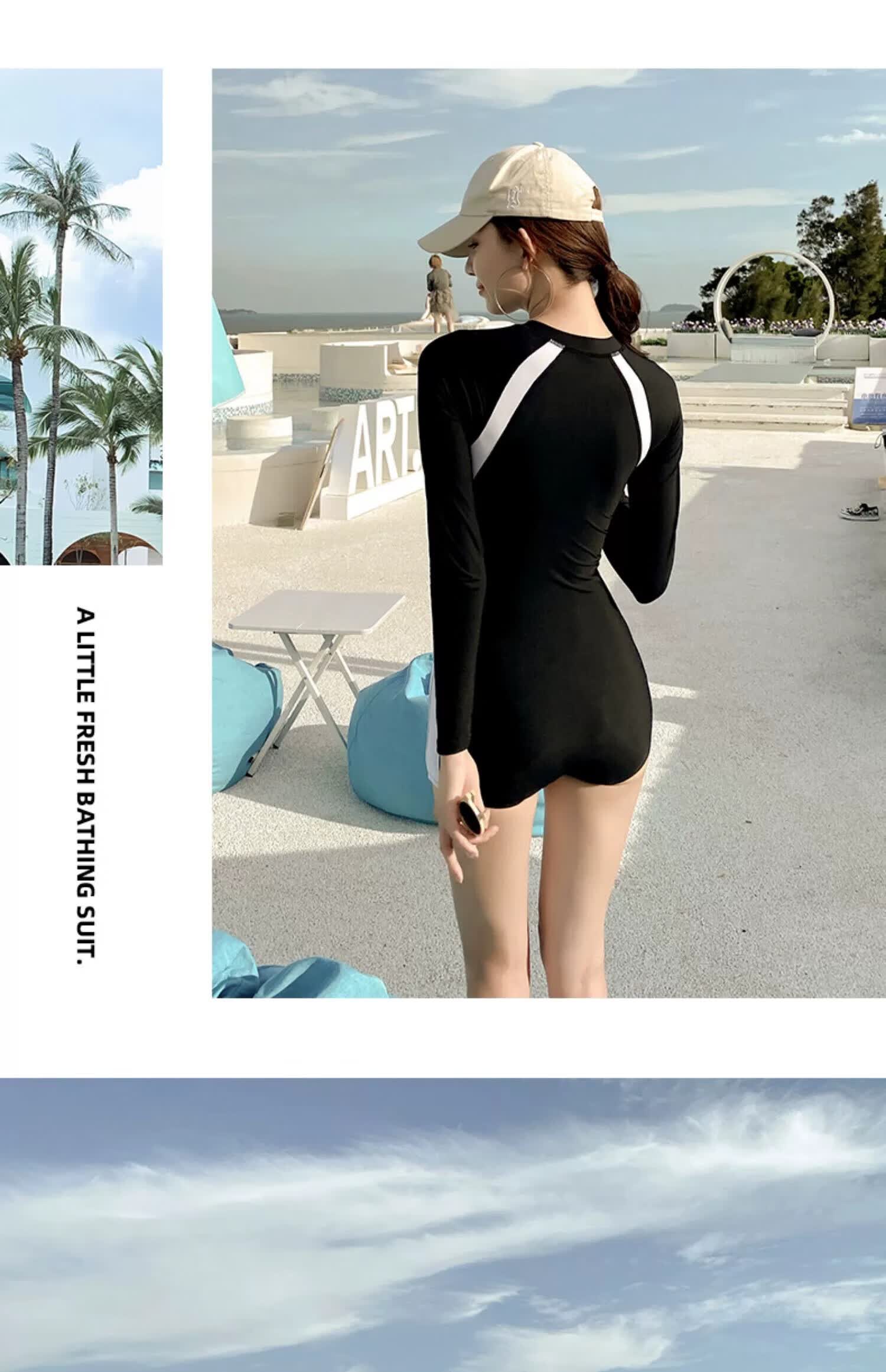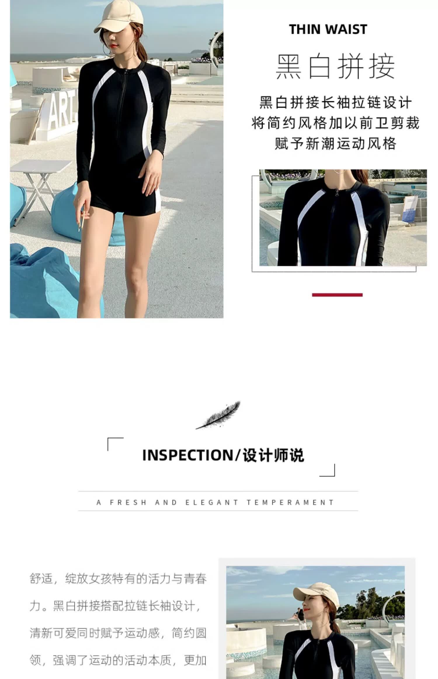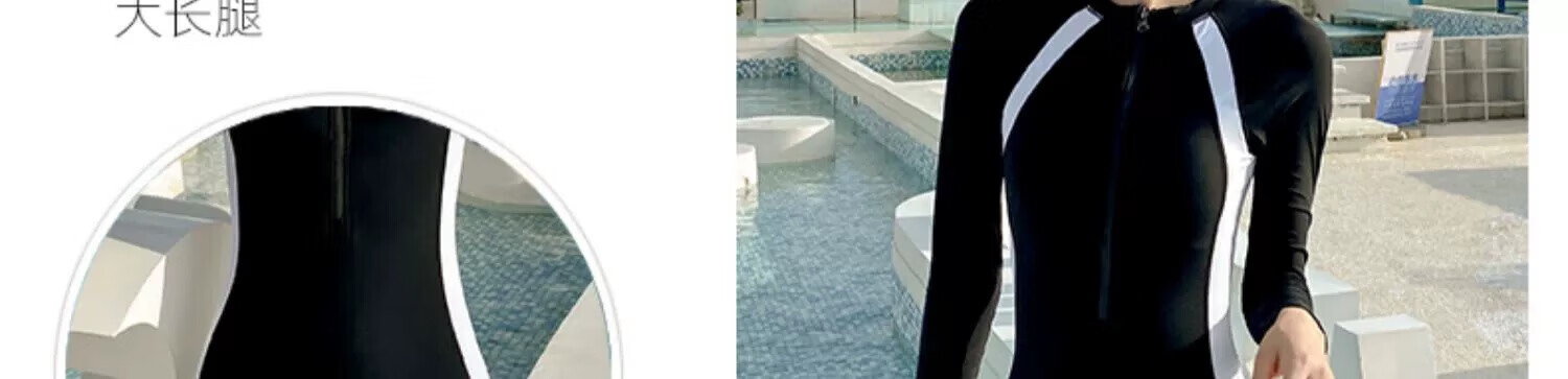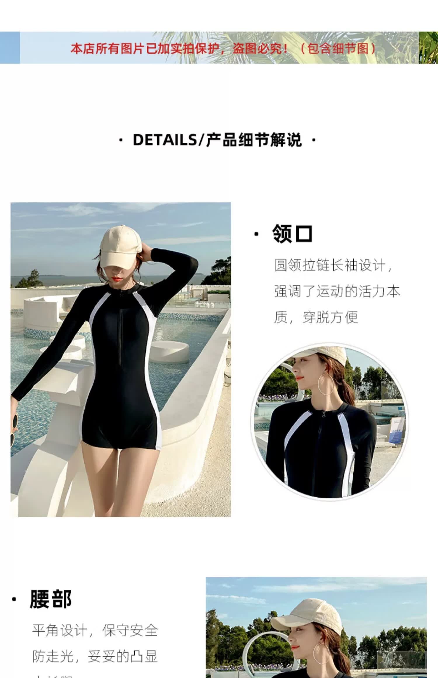 东方骆驼长袖泳衣女夏时尚连体显瘦遮肚保守新款女士游泳衣游泳馆专用 长袖蓝色 L 建议体重98-110斤