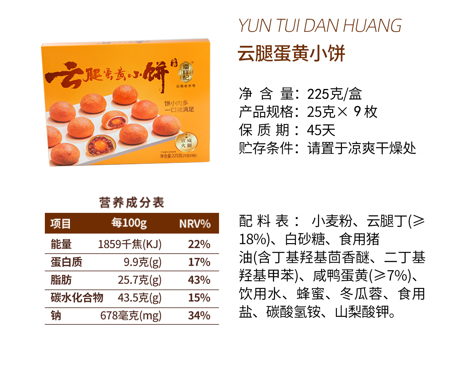 潘祥记鲜花饼 云腿蛋黄小饼云南特产小吃宣威火腿糕点早餐 9枚225g盒装