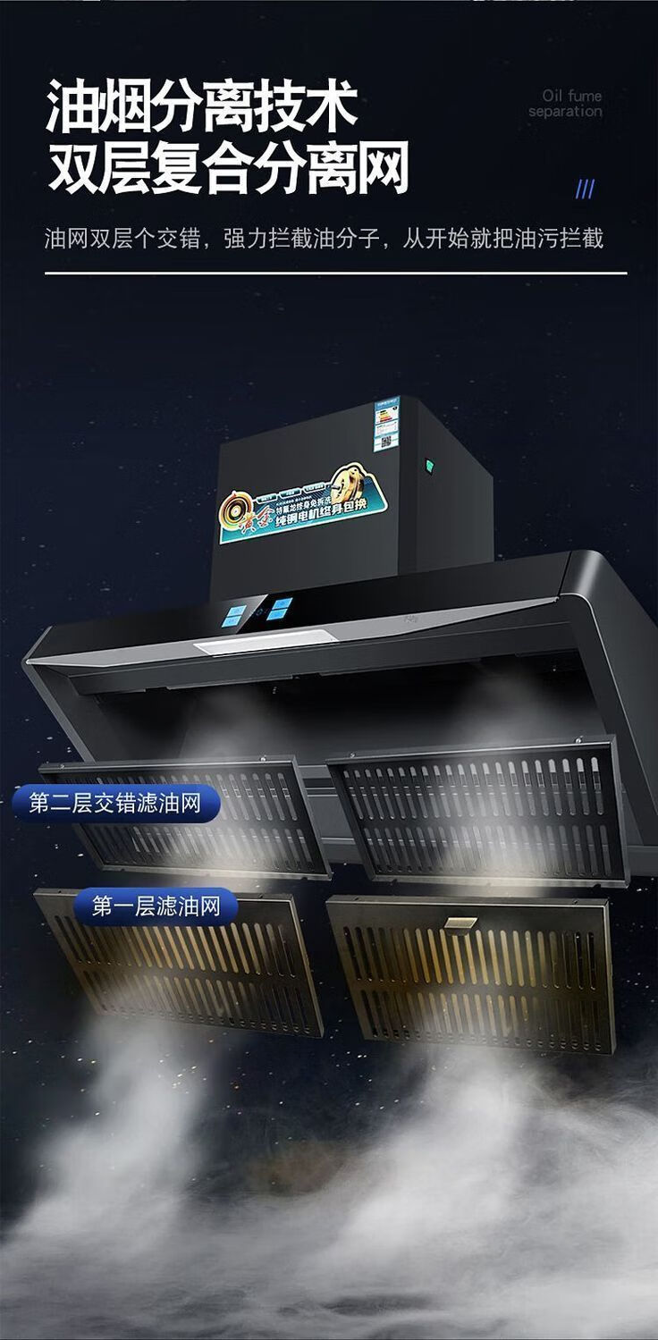 美珏好太太家用农村厨房土灶柴火灶大吸力吸油烟机不锈钢商用1000W大功率抽油烟机侧吸式油烟分离滤网 【0.9m纳米黑油烟分离套装】1000W功率+鼓风增压猛火灶