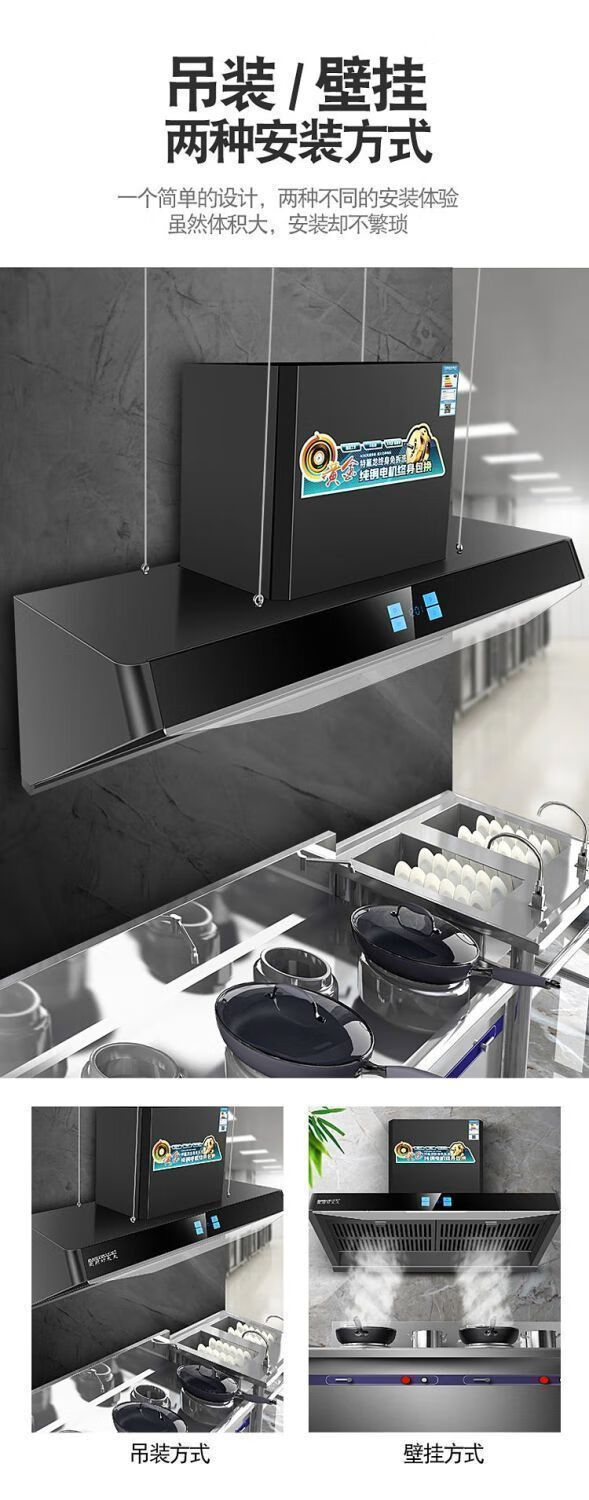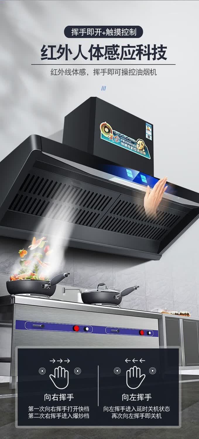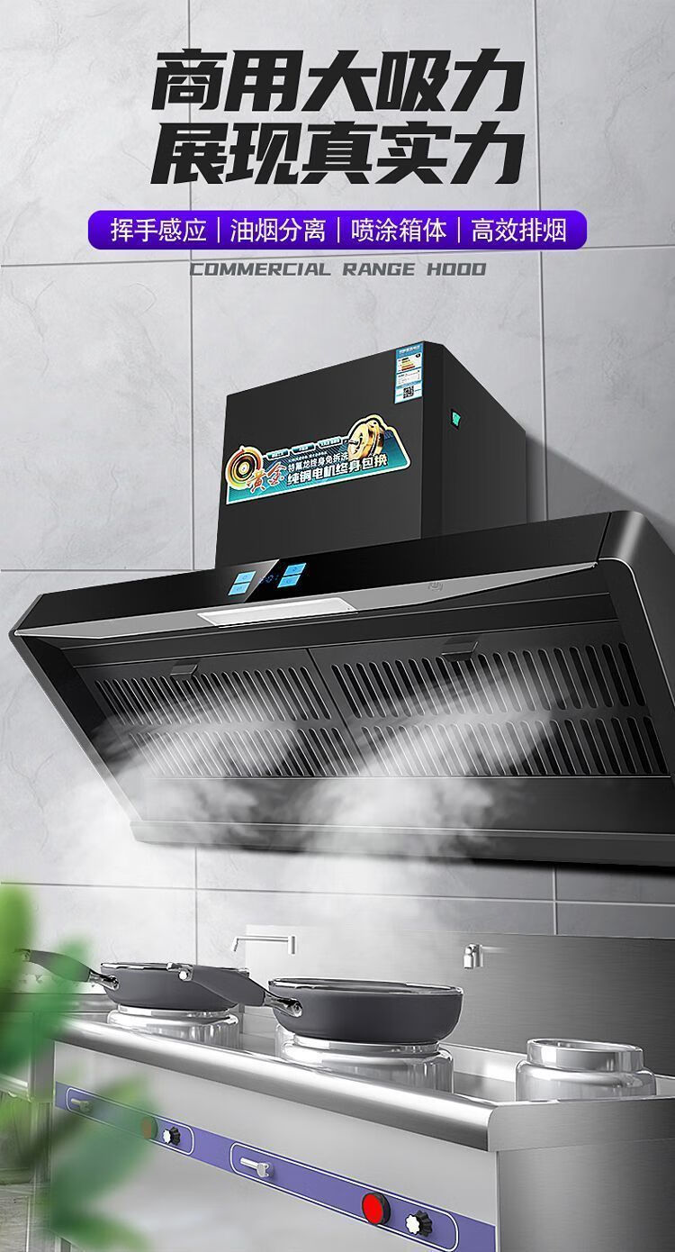 美珏好太太家用厨房农村柴火灶油烟机商用油烟机大吸力农村厨房土灶大锅灶商用餐饮猛火灶抽油烟机 【0.8m纳米黑气电灶套装】大功率烟机+凹面电磁炉