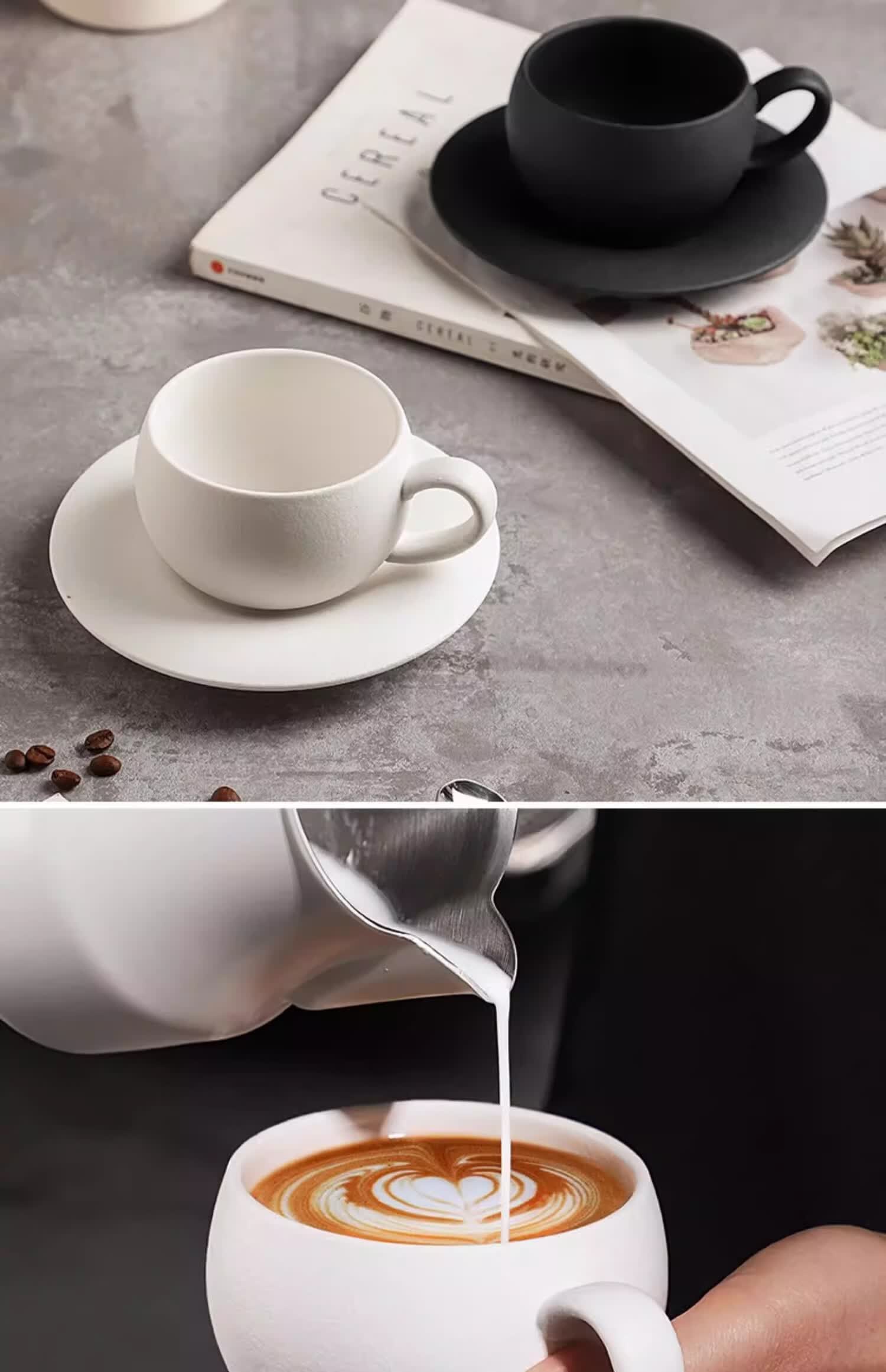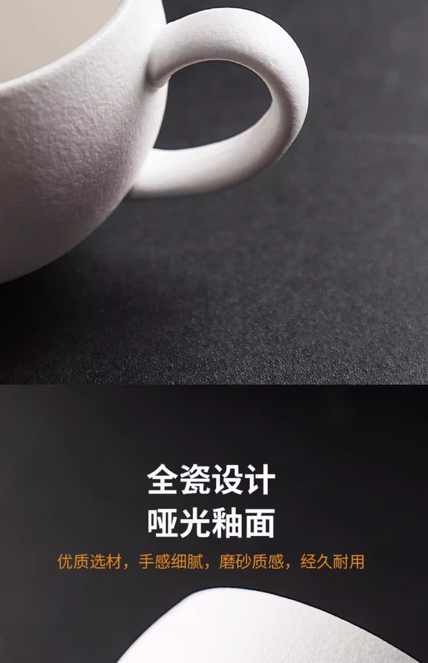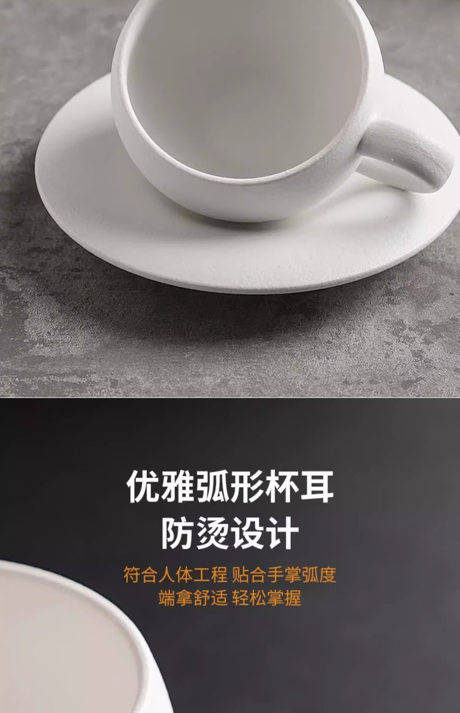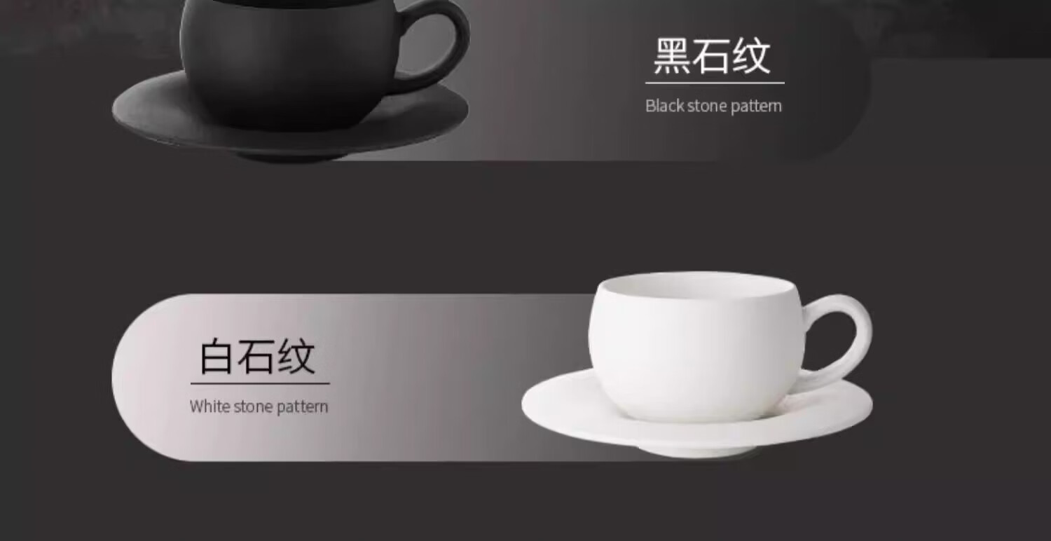 Bincoo陶瓷咖啡杯子设计感蛋形拿铁拉花专用杯精致下午茶杯碟套装 白色石纹-280ml