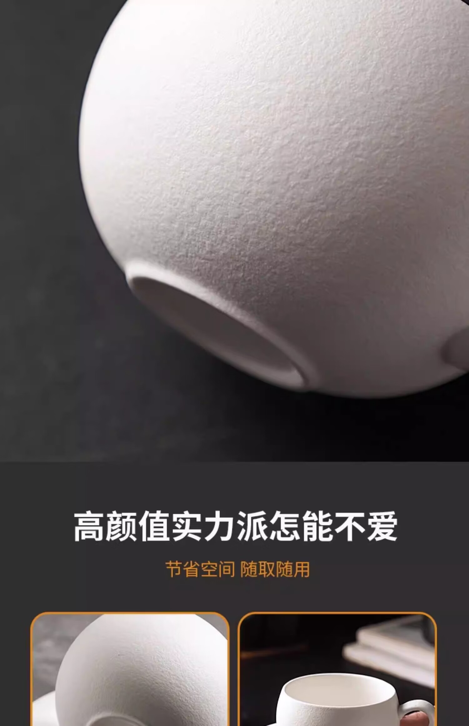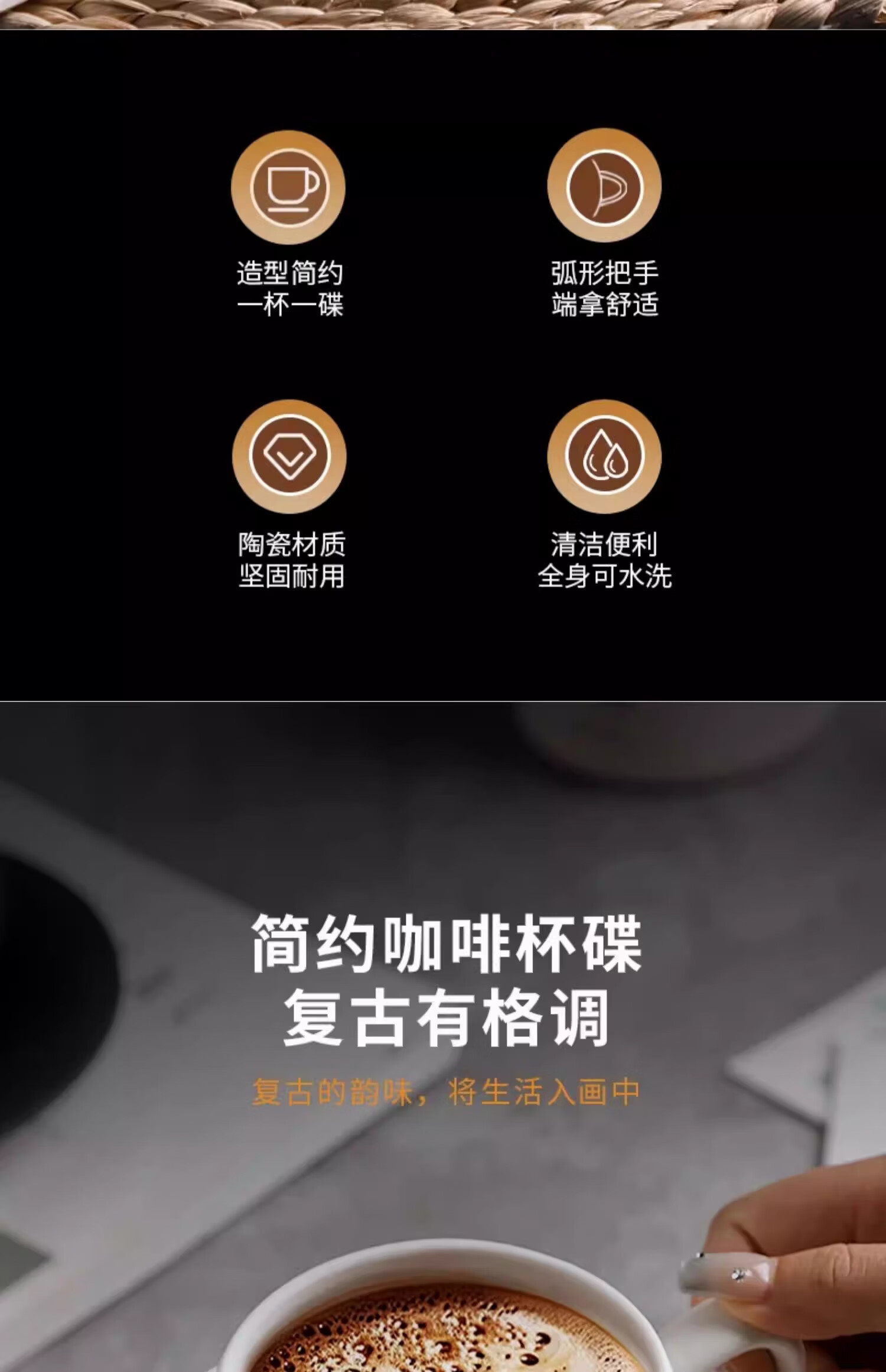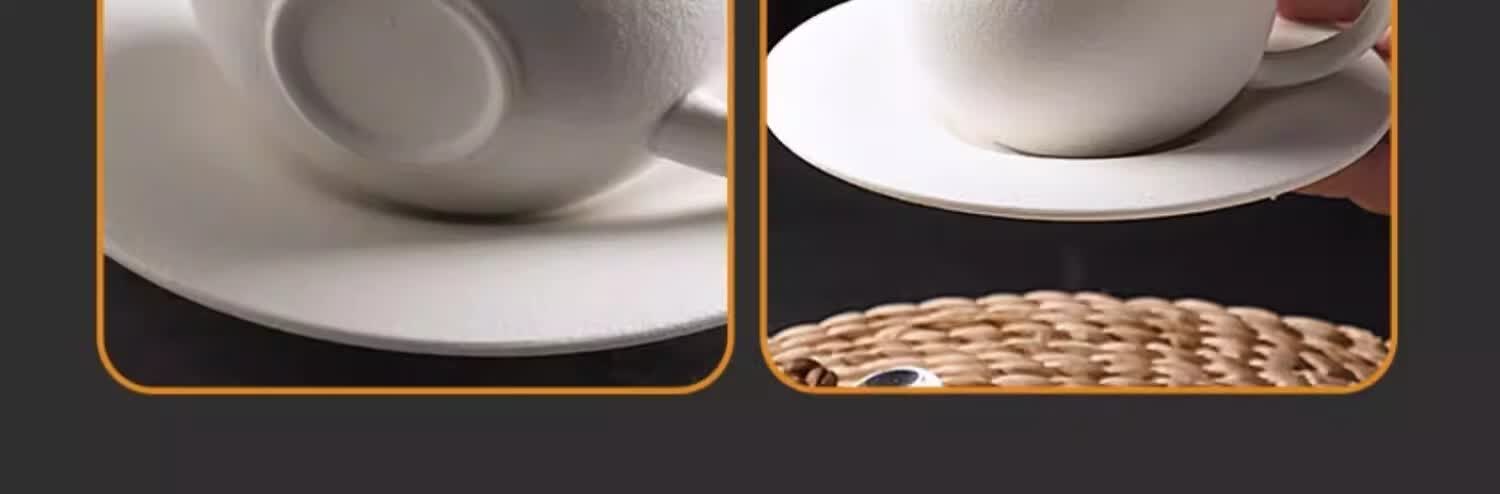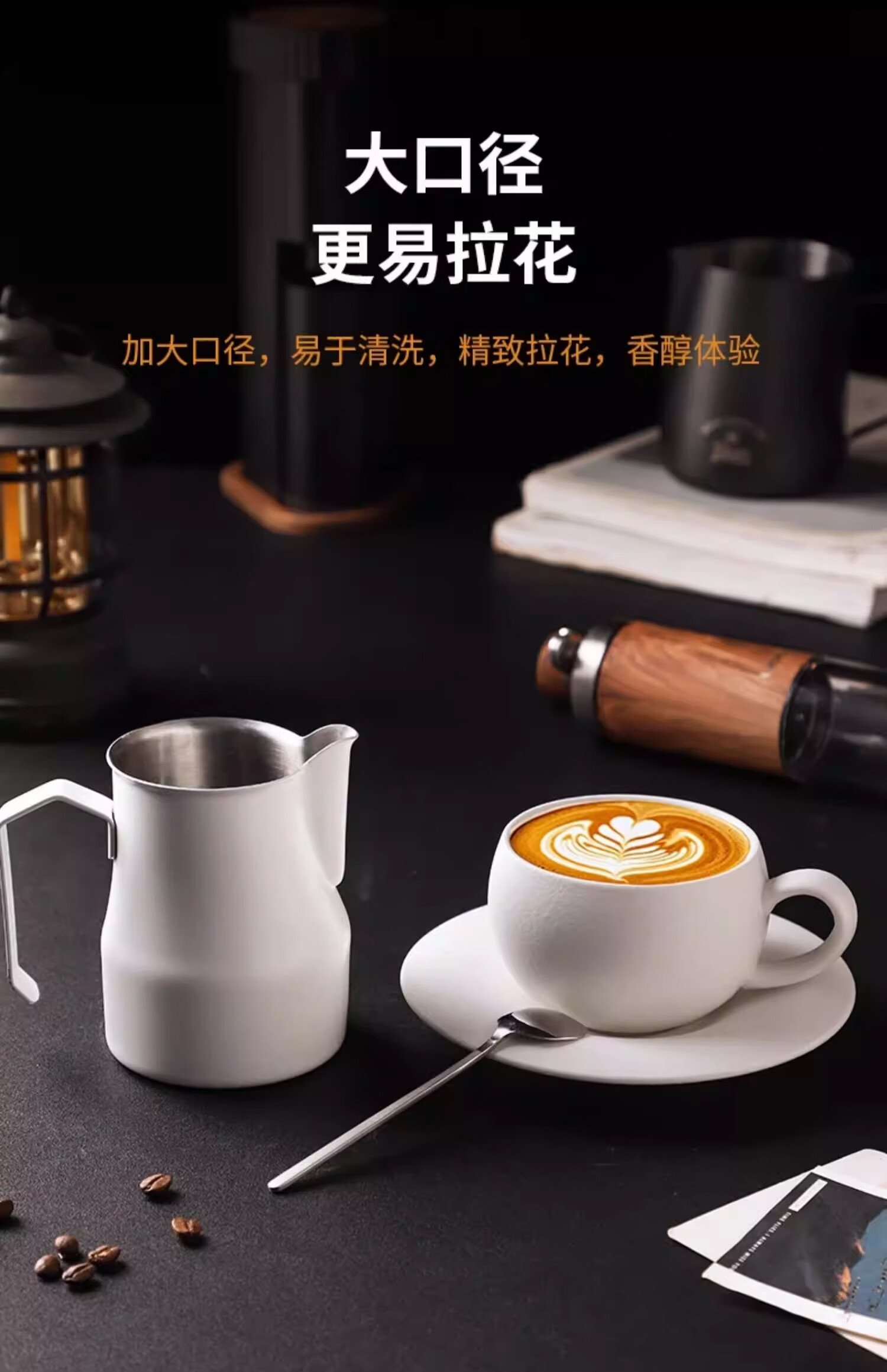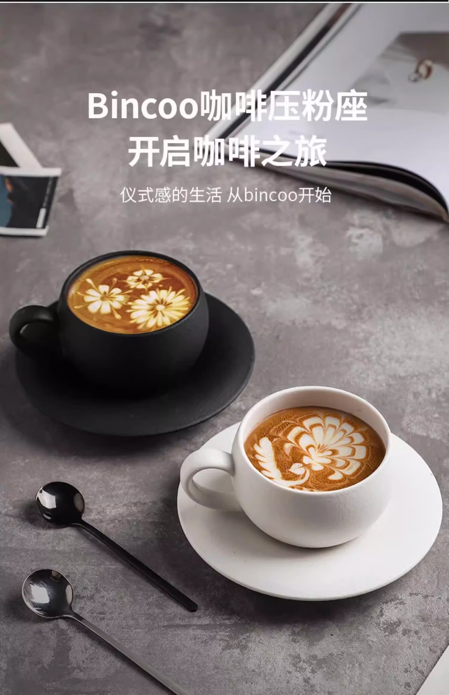 Bincoo陶瓷咖啡杯子设计感蛋形拿铁拉花专用杯精致下午茶杯碟套装 白色石纹-280ml