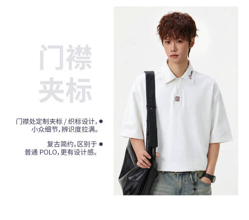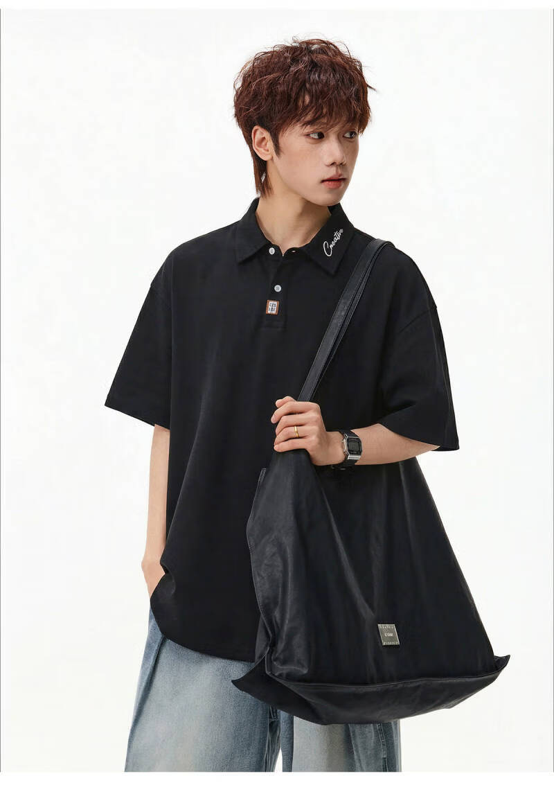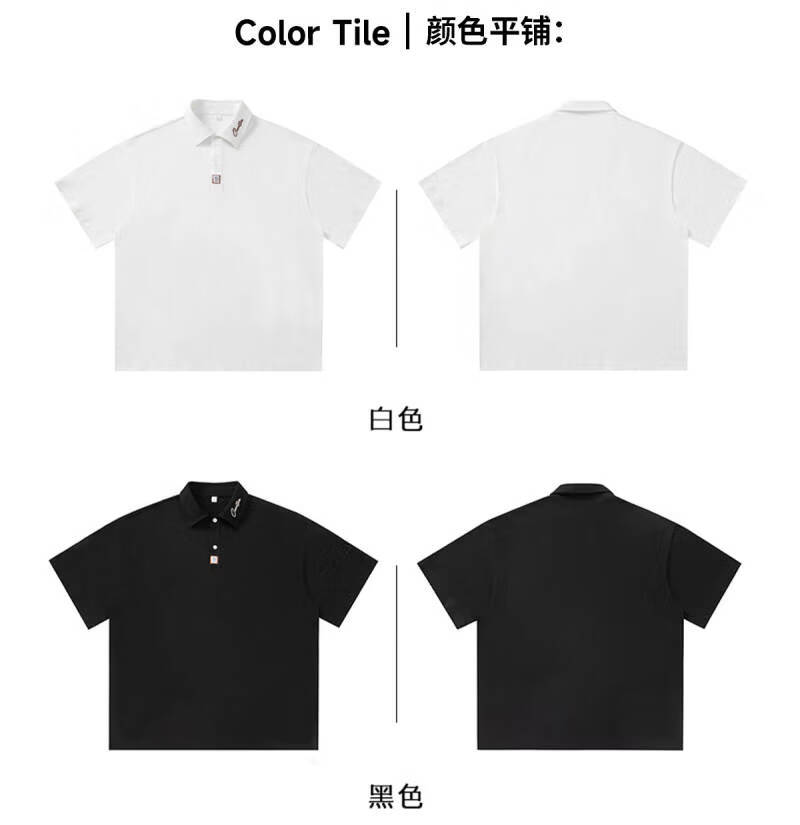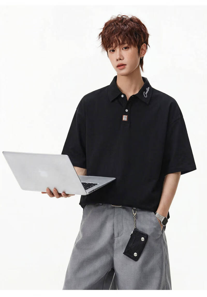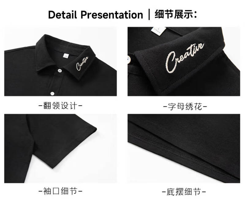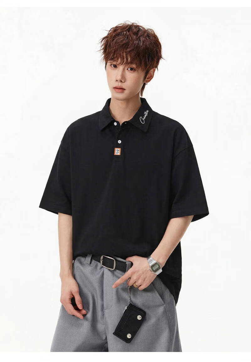 NEW OR MODE美式刺绣polo领短袖t恤男夏季新款宽松纯棉运动青少年半袖翻领T恤 黑色【高品质】 M 【建议90-110斤】