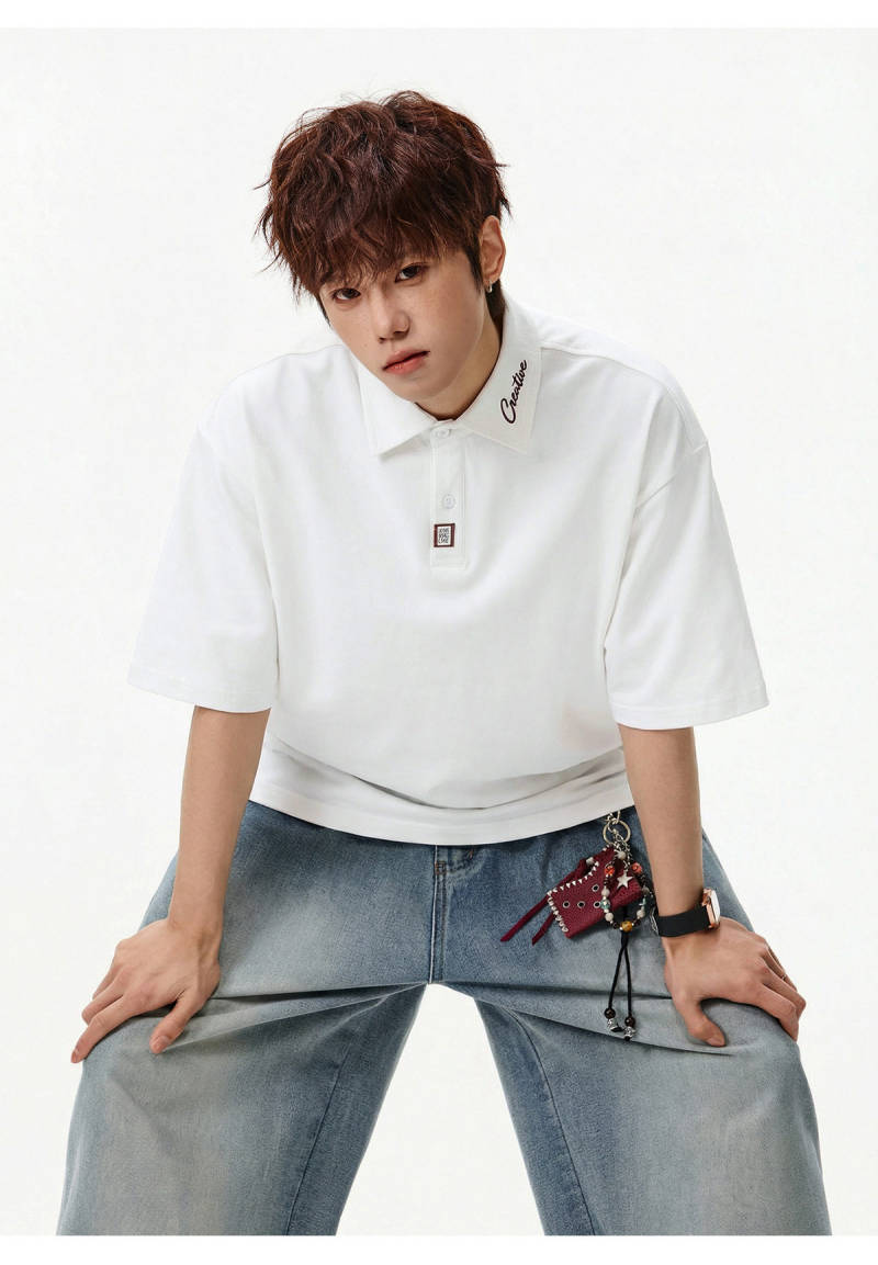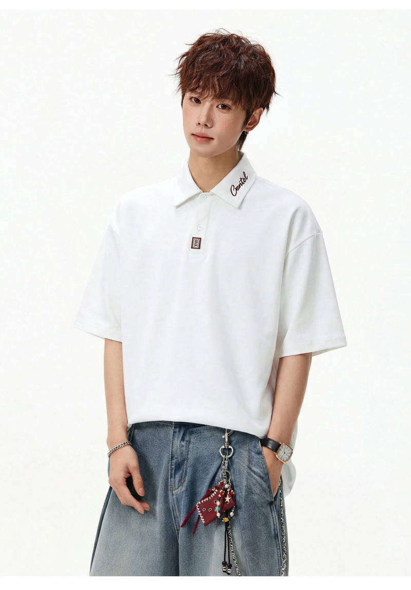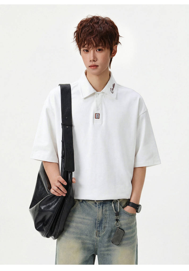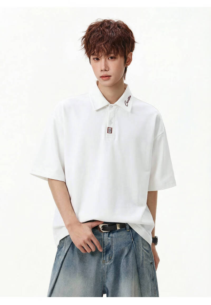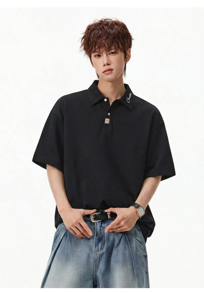 NEW OR MODE美式刺绣polo领短袖t恤男夏季新款宽松纯棉运动青少年半袖翻领T恤 黑色【高品质】 M 【建议90-110斤】