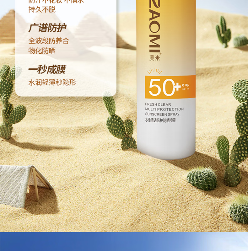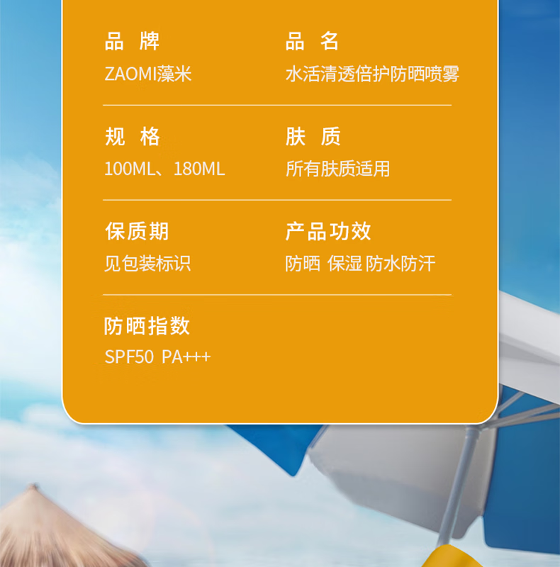 藻米【超值组合】水活清透倍护防晒喷雾100ML+180ML SPF50+/PA+++ 水活清透防晒100ML+180ML 特字号高倍防晒