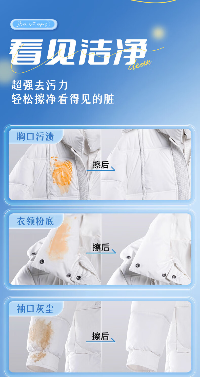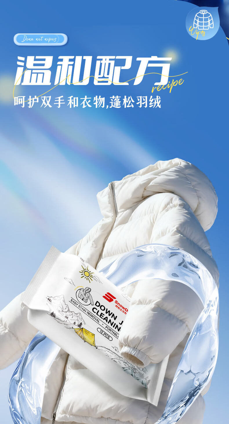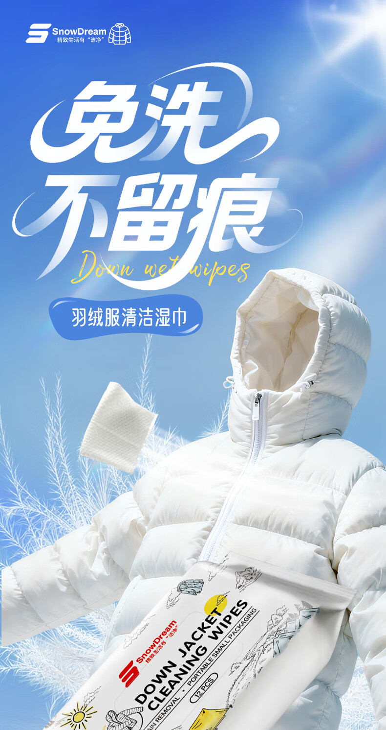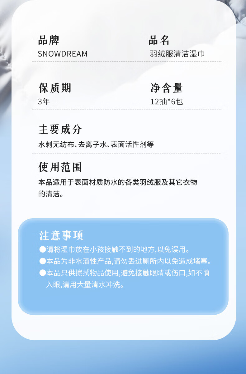 SnowDream日本羽绒服清洁湿巾12片*6包羽绒服清洗剂干洗剂去油渍免水洗神器