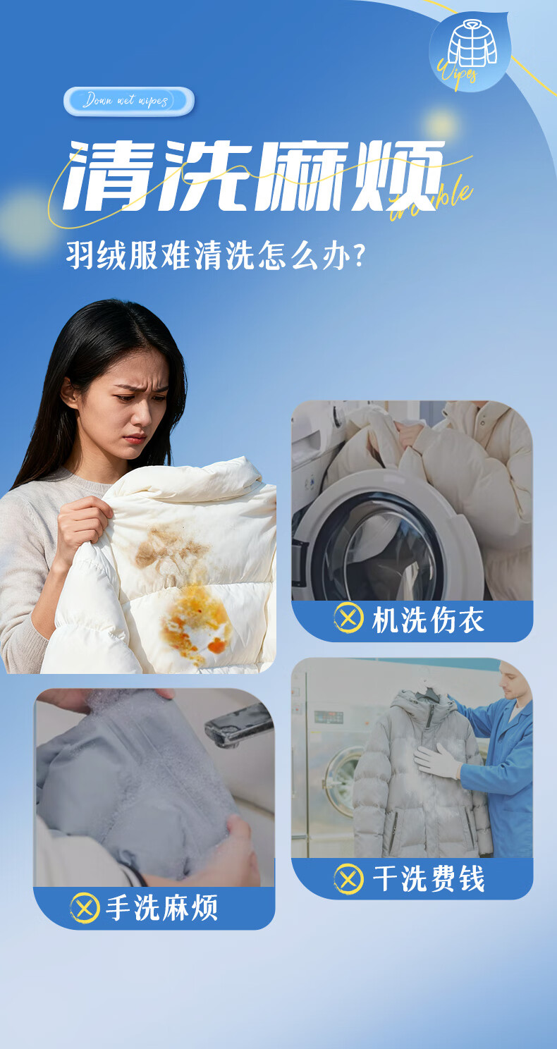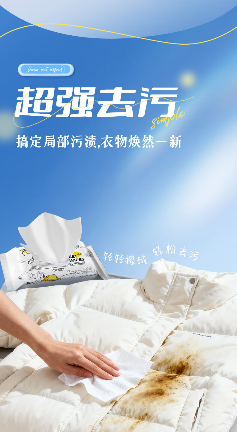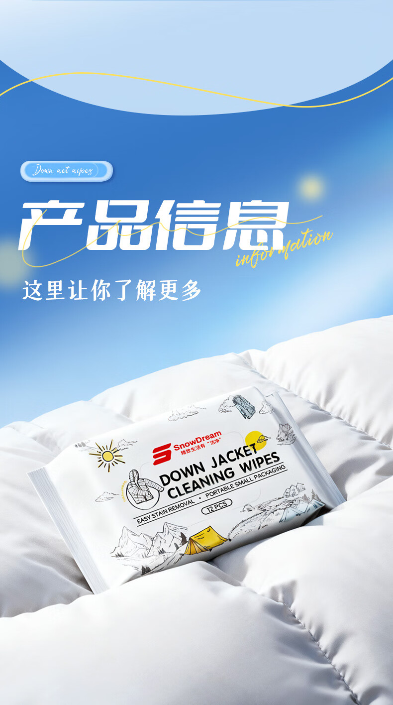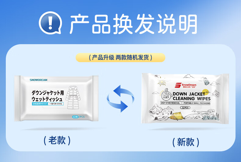 SnowDream日本羽绒服清洁湿巾12片*6包羽绒服清洗剂干洗剂去油渍免水洗神器