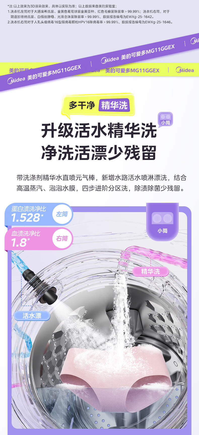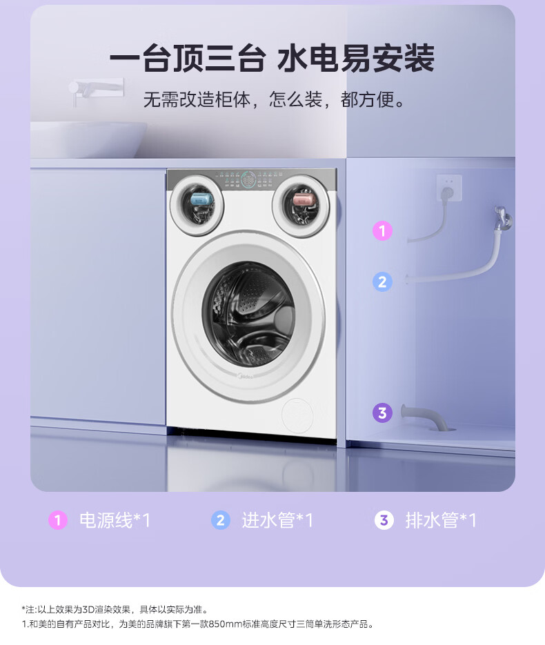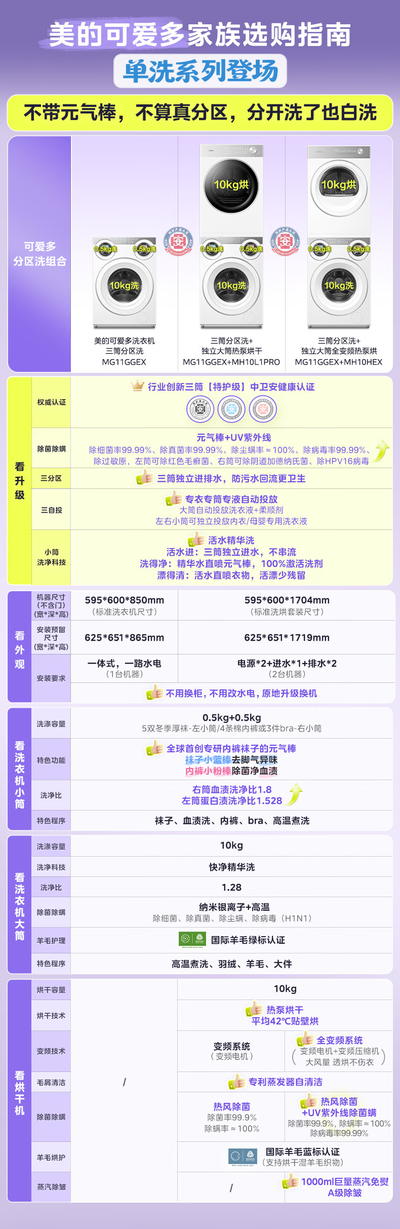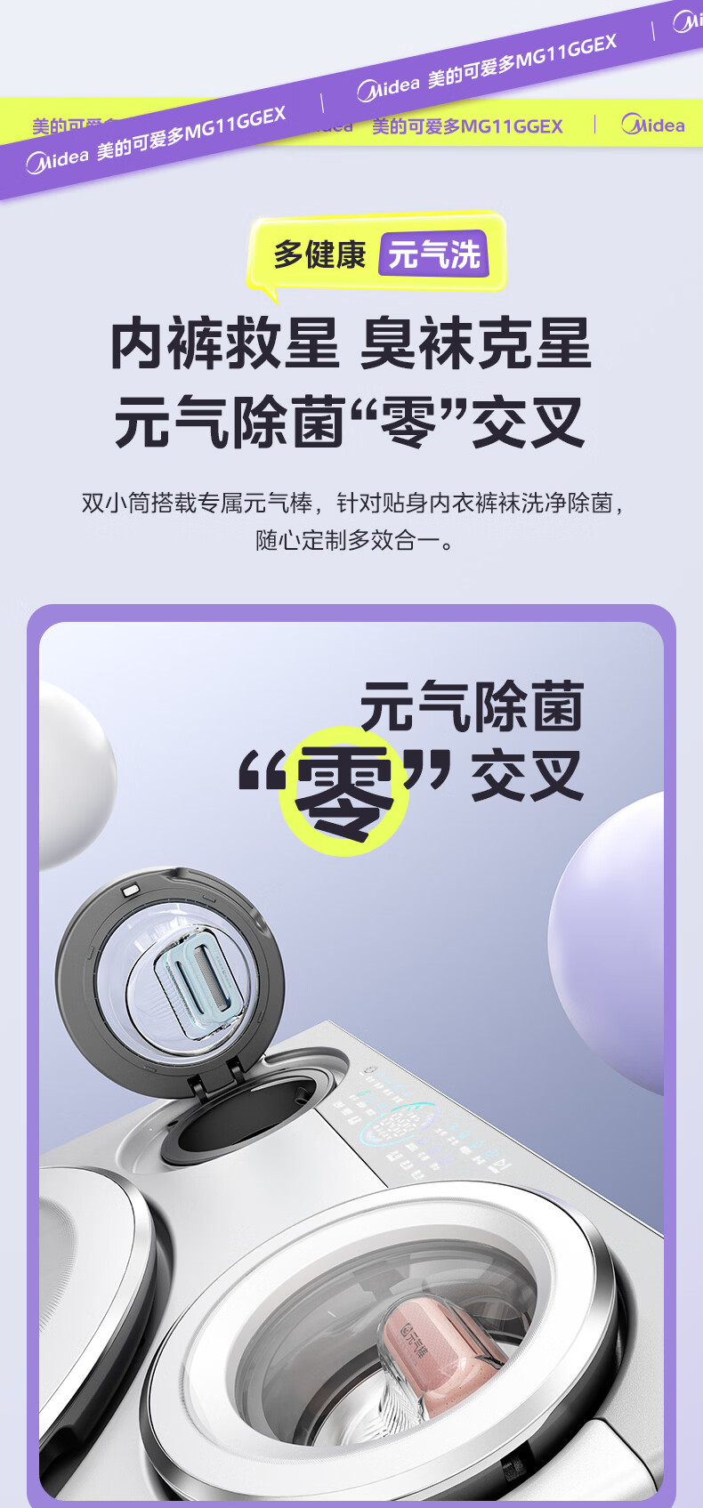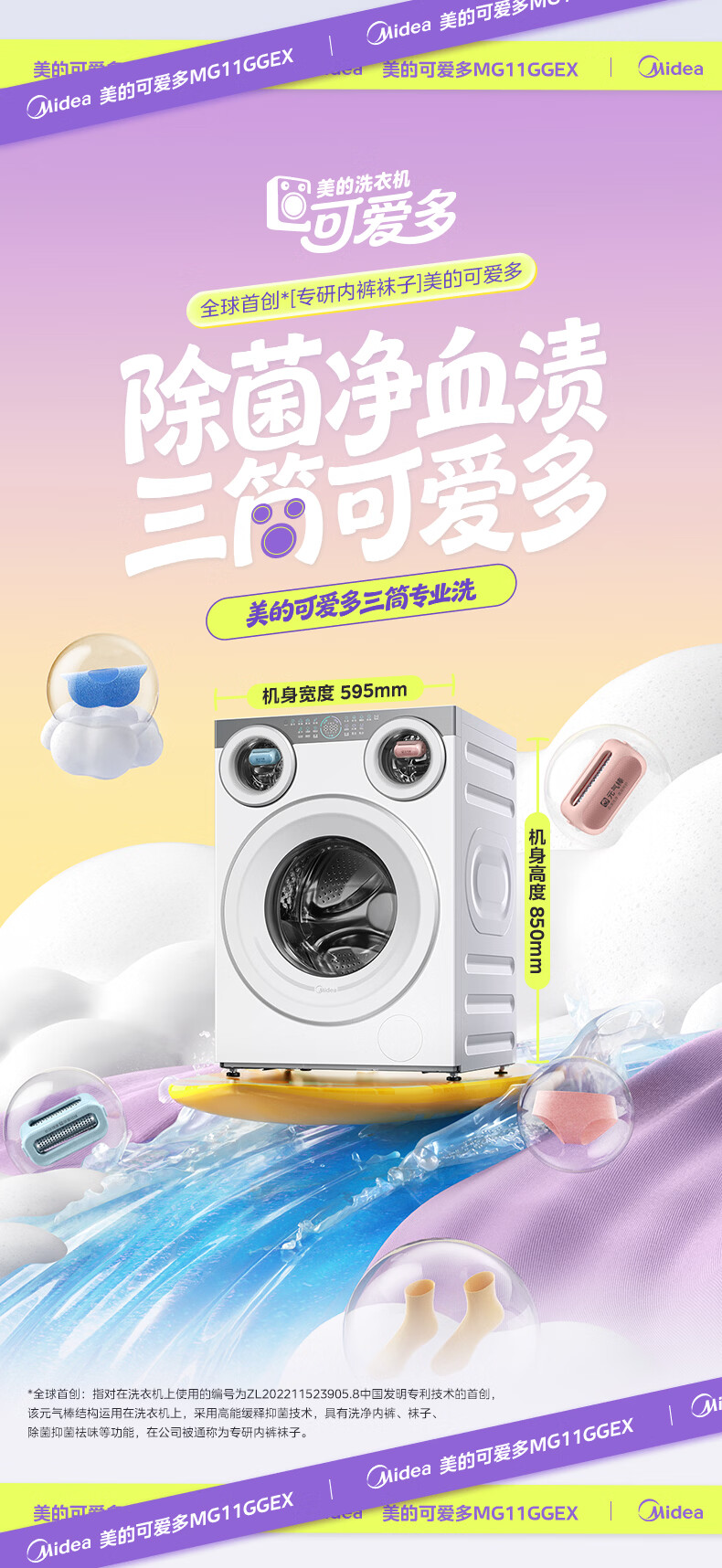美的(Midea)可爱多滚筒全自动洗衣机分区洗三筒一体机 11kg多筒母婴儿洗智能投放变频 除菌除螨羊毛绿标三桶 MG11GGEX 滚筒