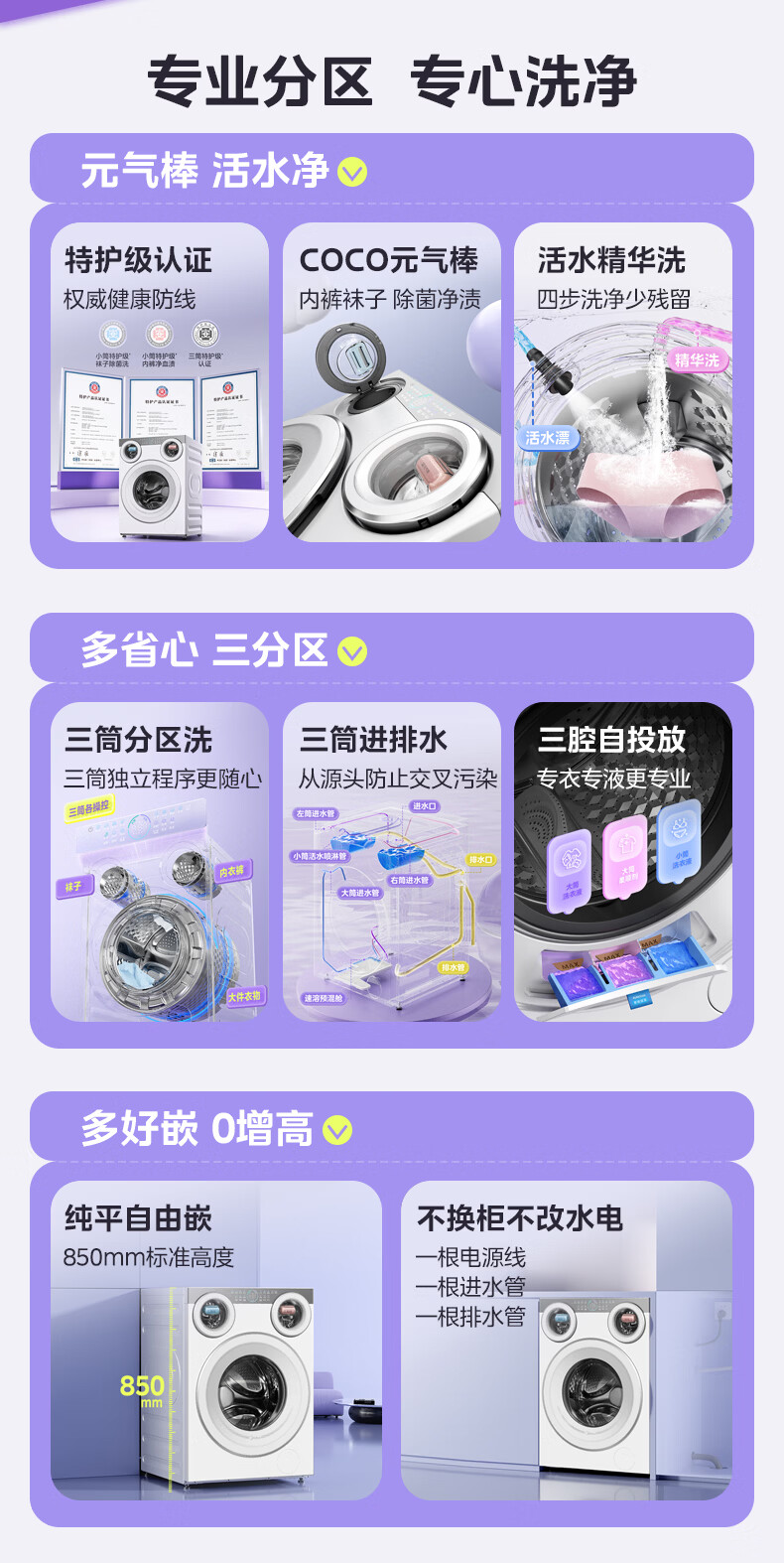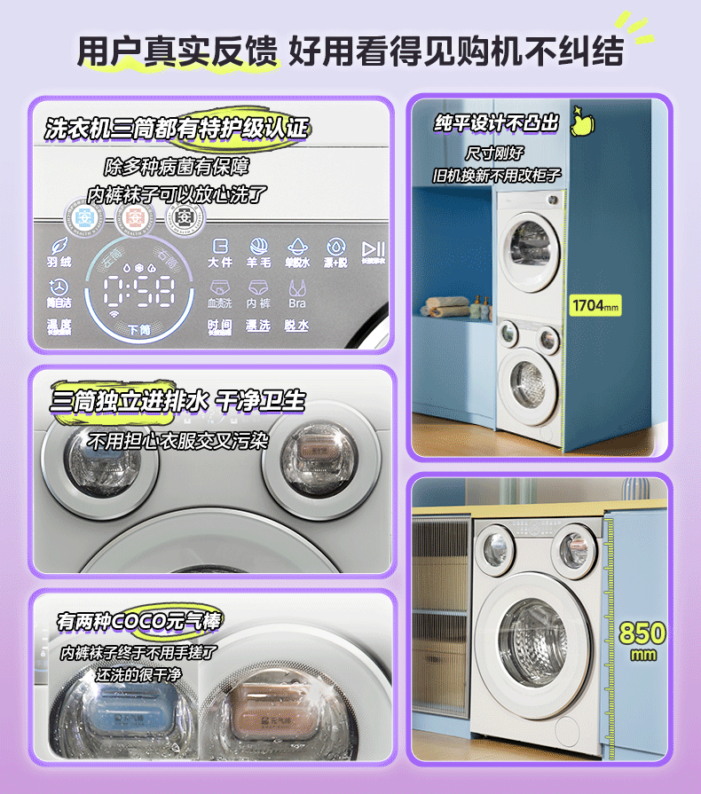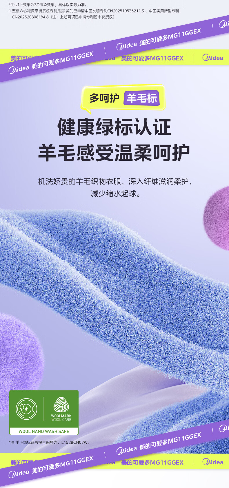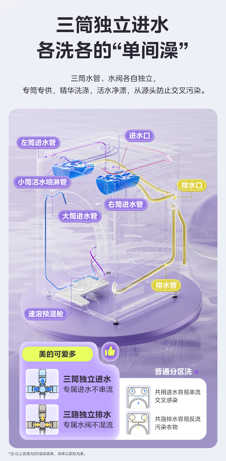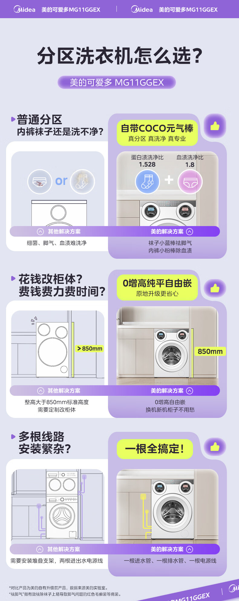 美的(Midea)可爱多滚筒全自动洗衣机分区洗三筒一体机 11kg多筒母婴儿洗智能投放变频 除菌除螨羊毛绿标三桶 MG11GGEX 滚筒