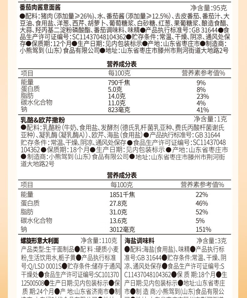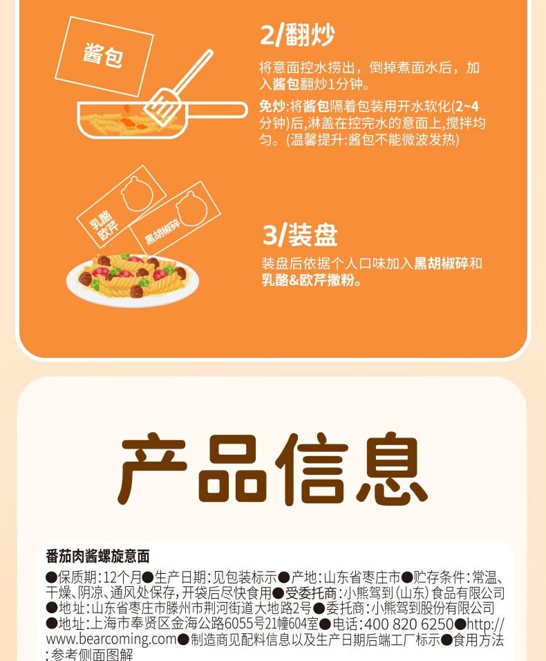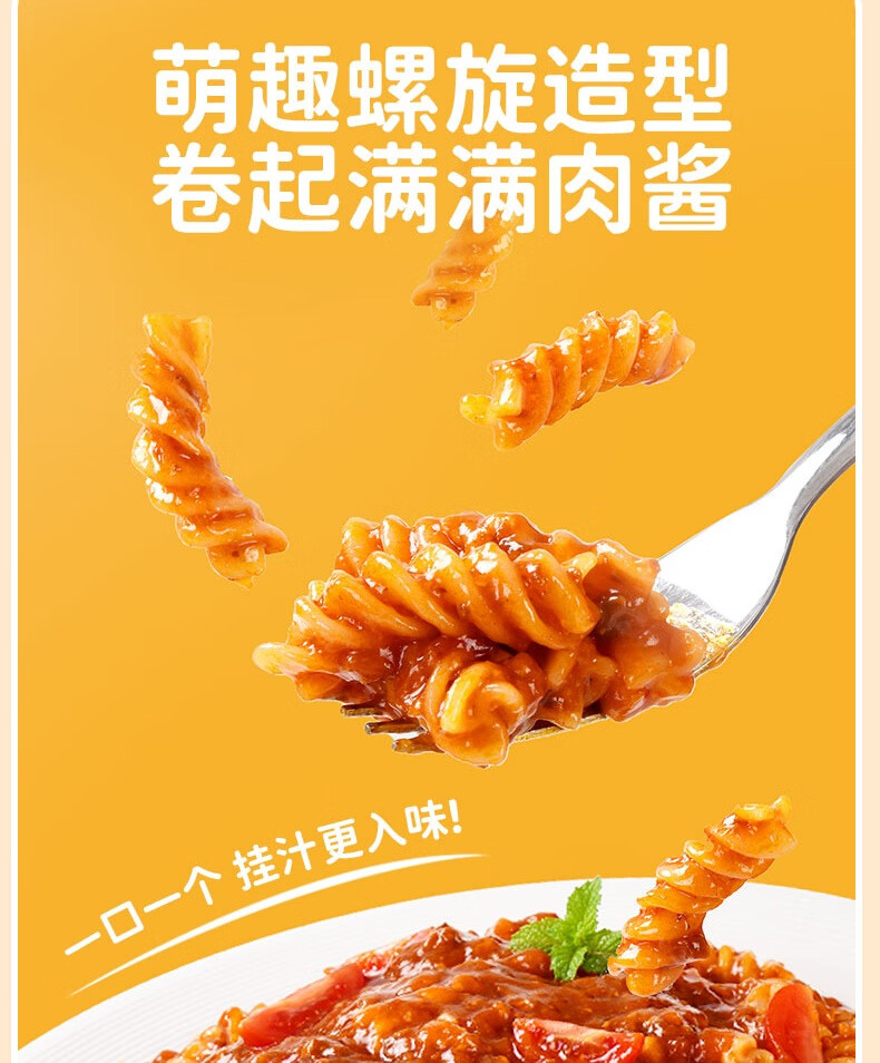 小熊驾到番茄肉酱螺旋意大利面 儿童意粉通心粉速食螺纹意面方便面 番茄肉酱螺旋意面 215g*6袋
