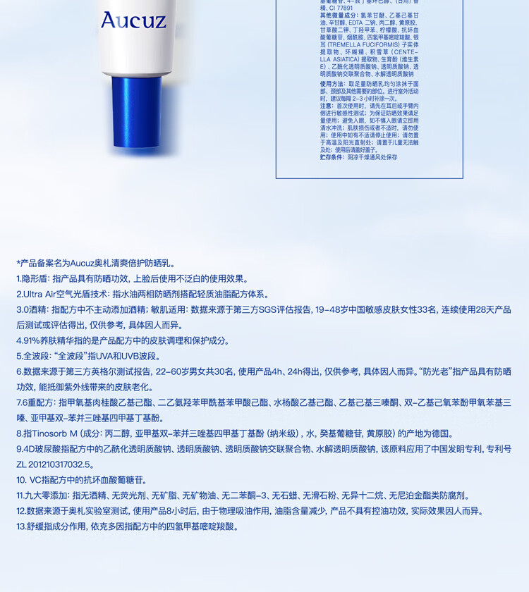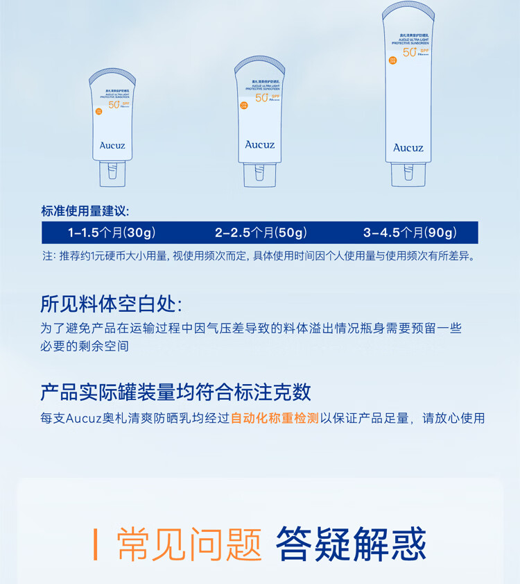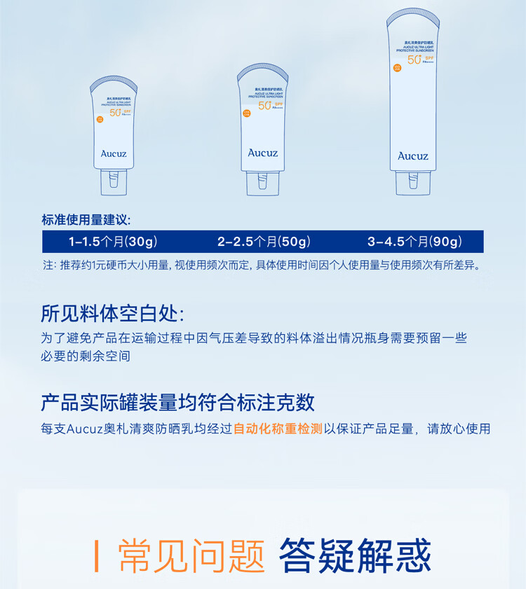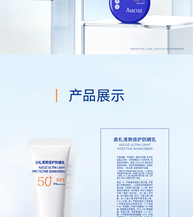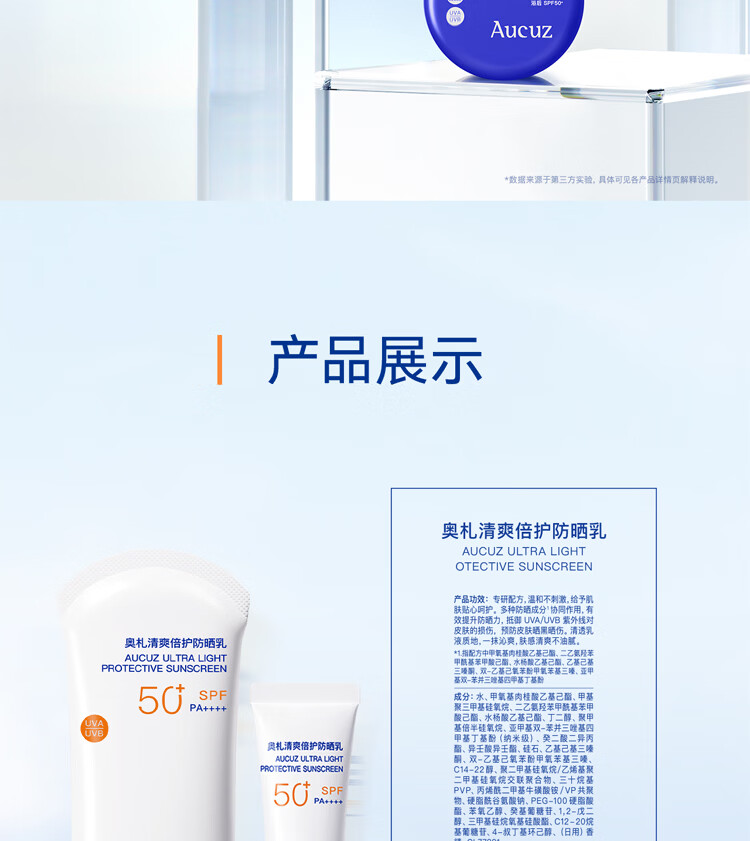 屈臣氏Aucuz奥札清爽倍护防晒乳SPF50+ PA++++ 10g