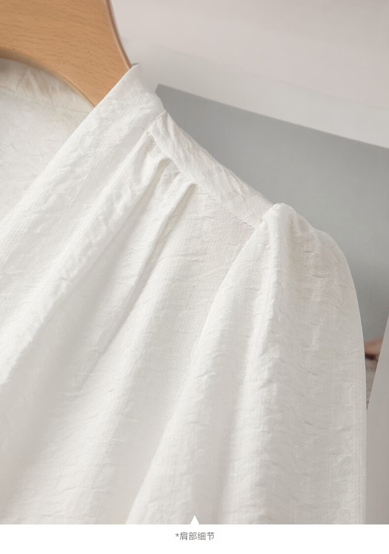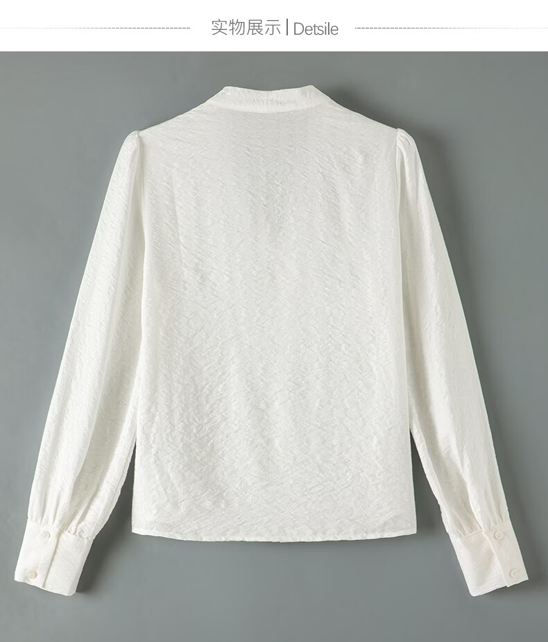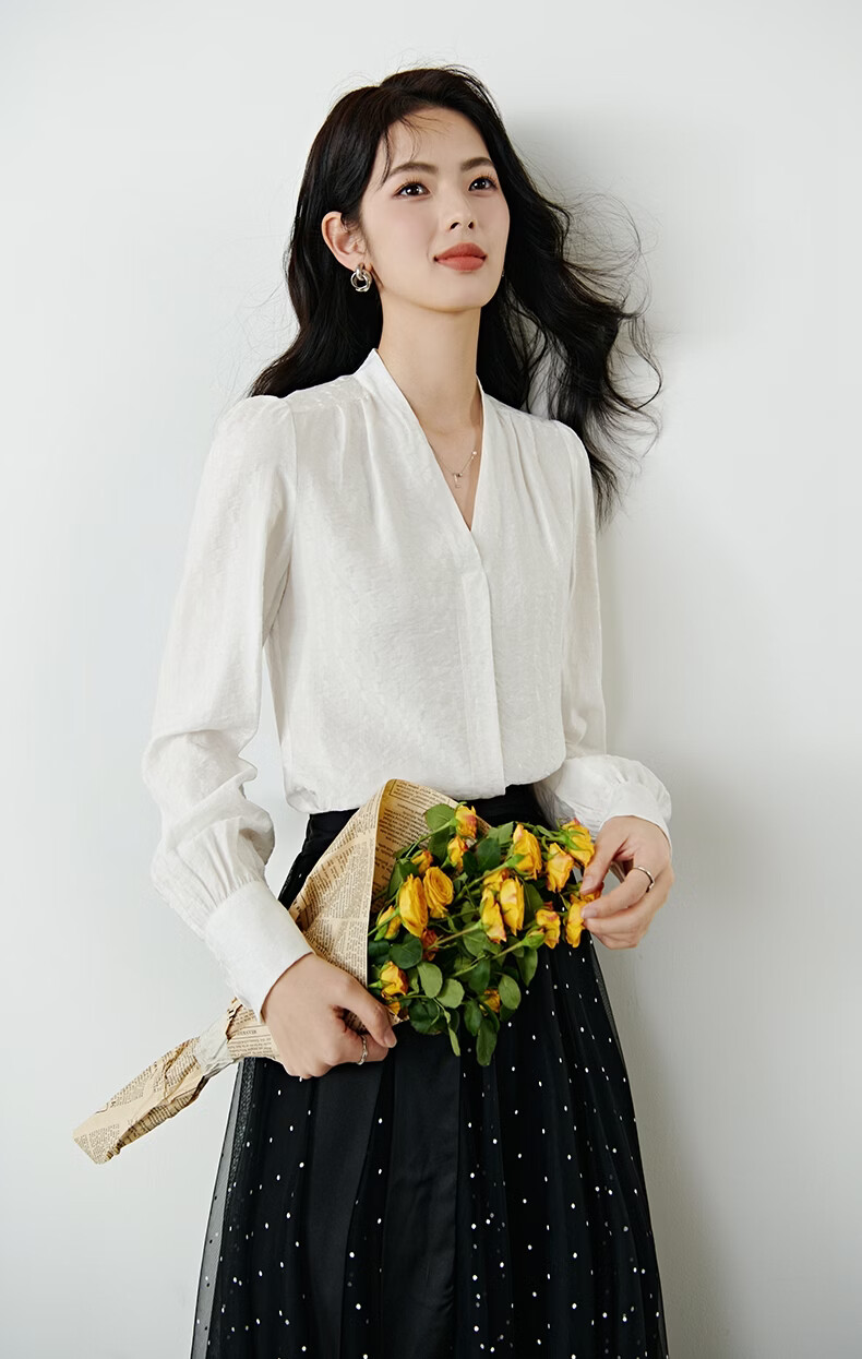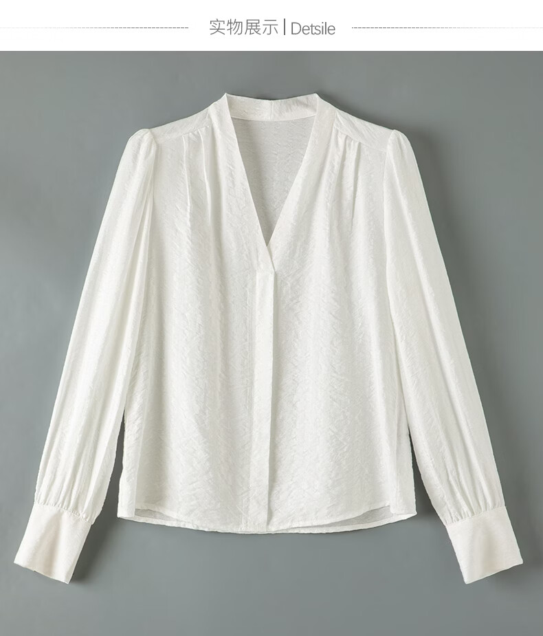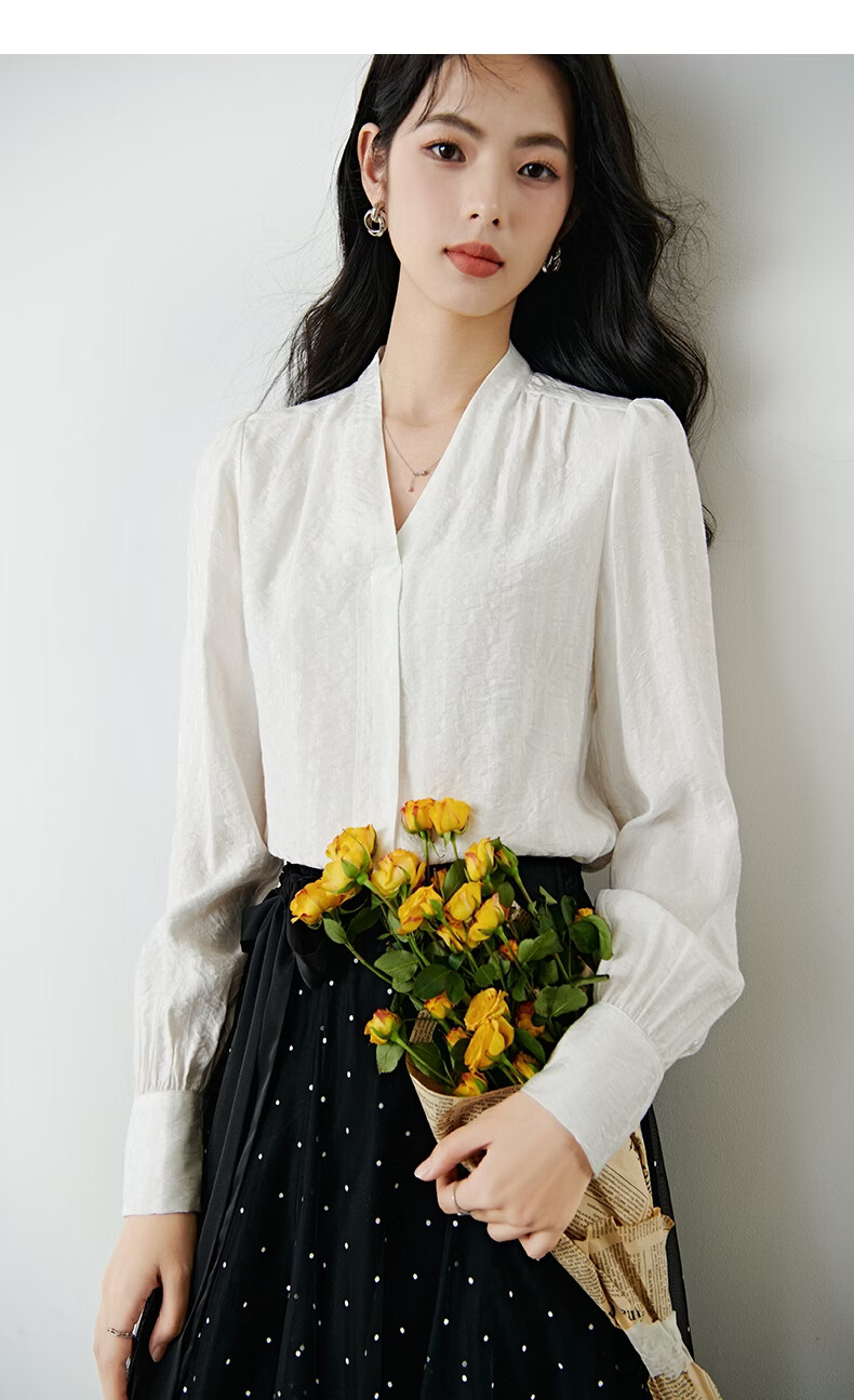 晚白【新品】法式V领白衬衫2026春经典气质上衣优雅通勤暗纹压花衬衣 白色 XL