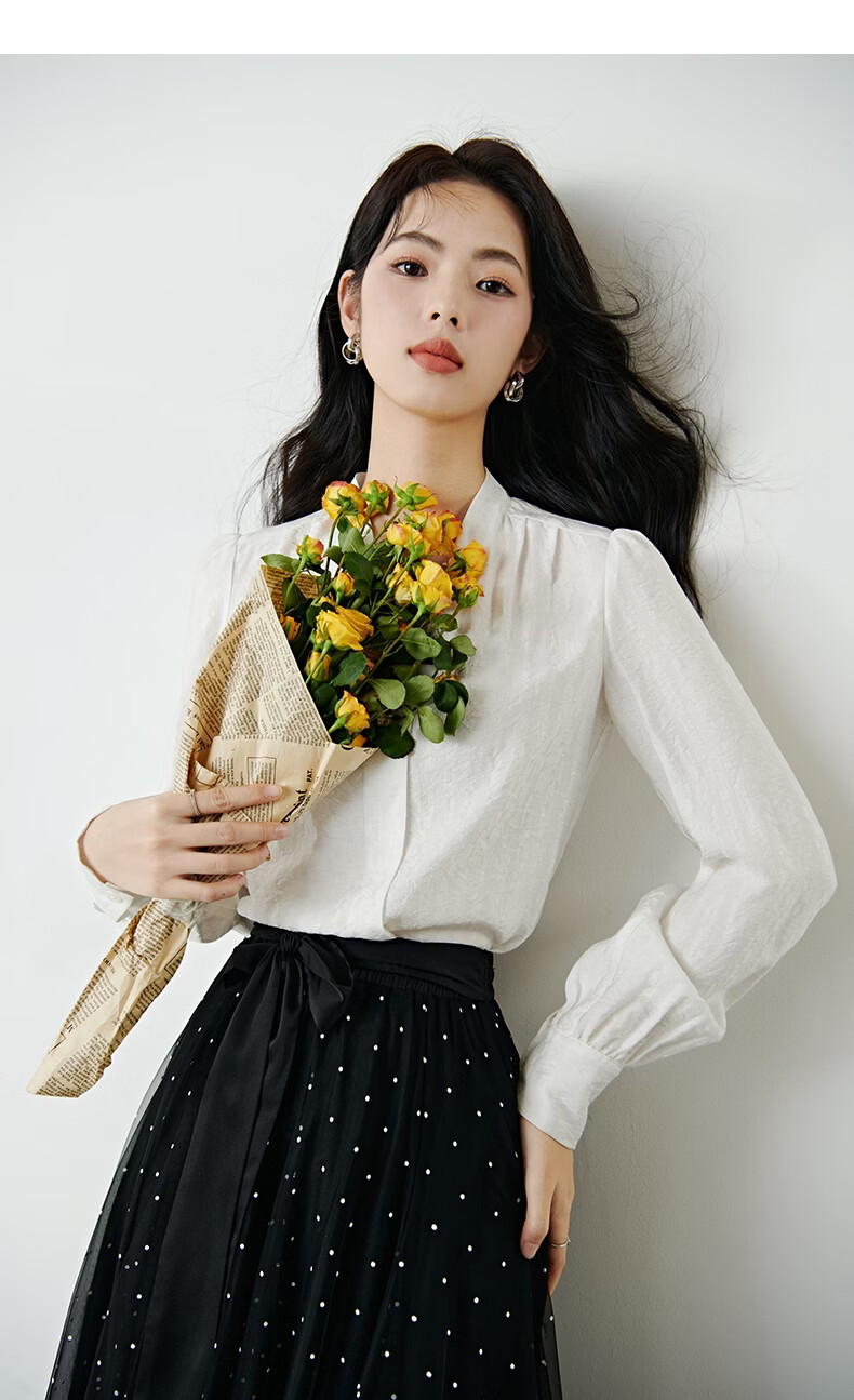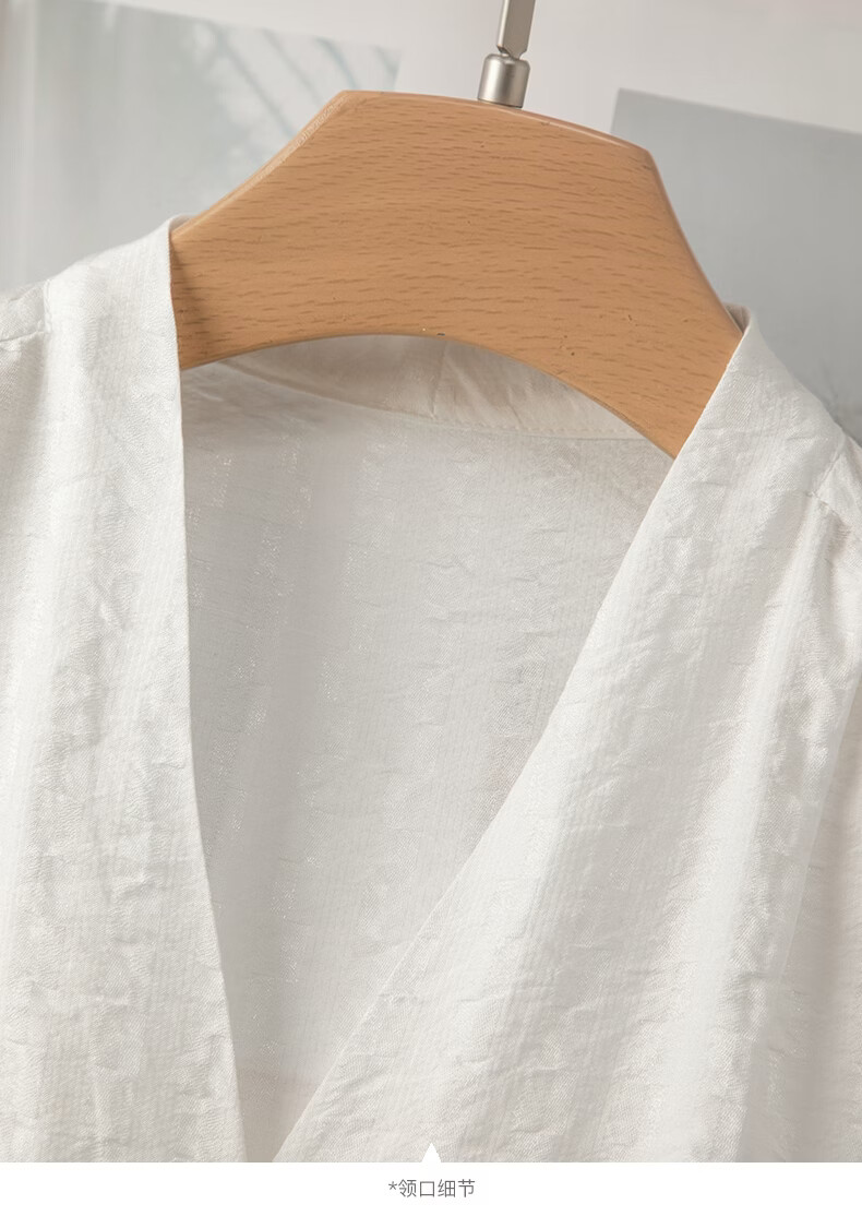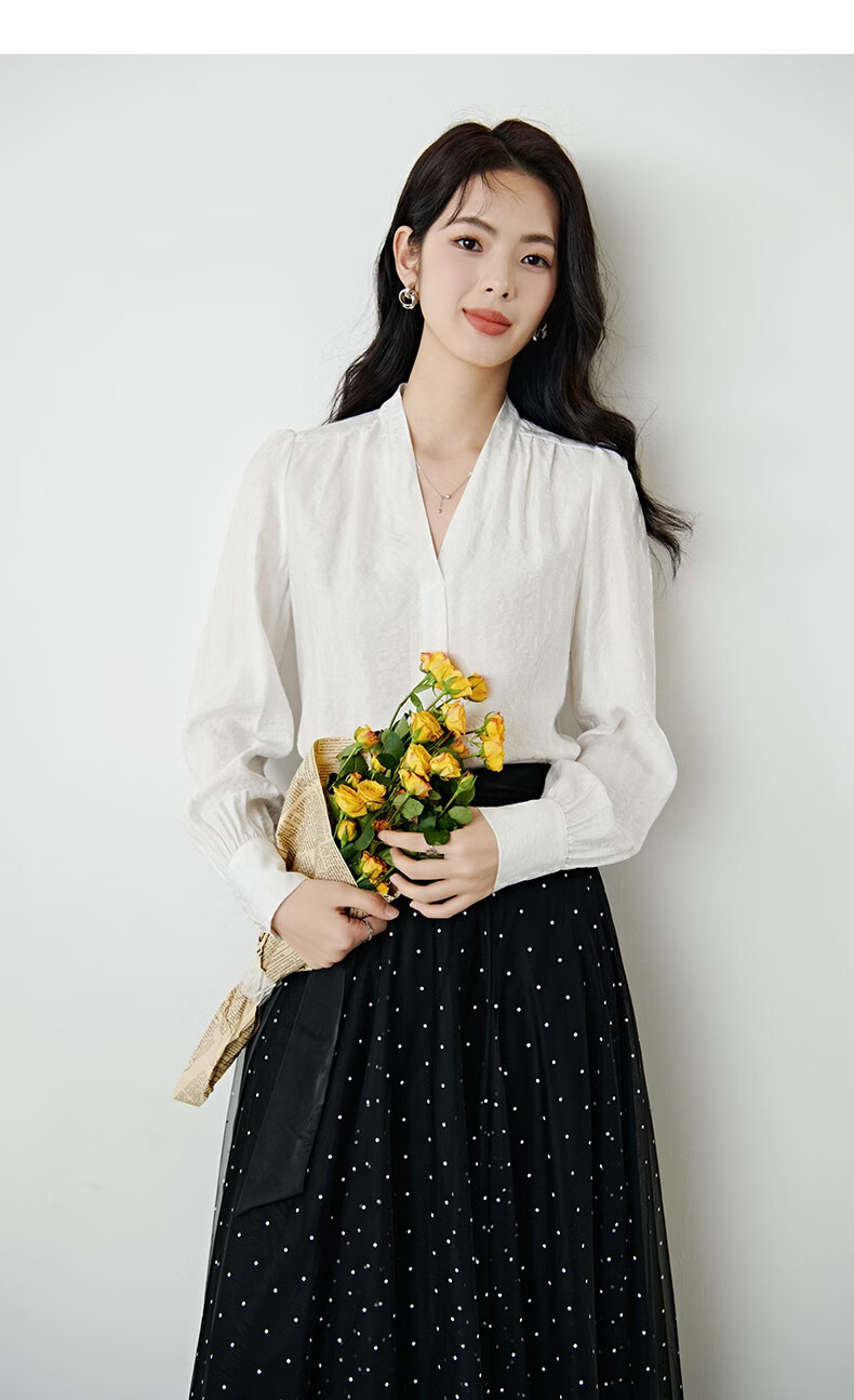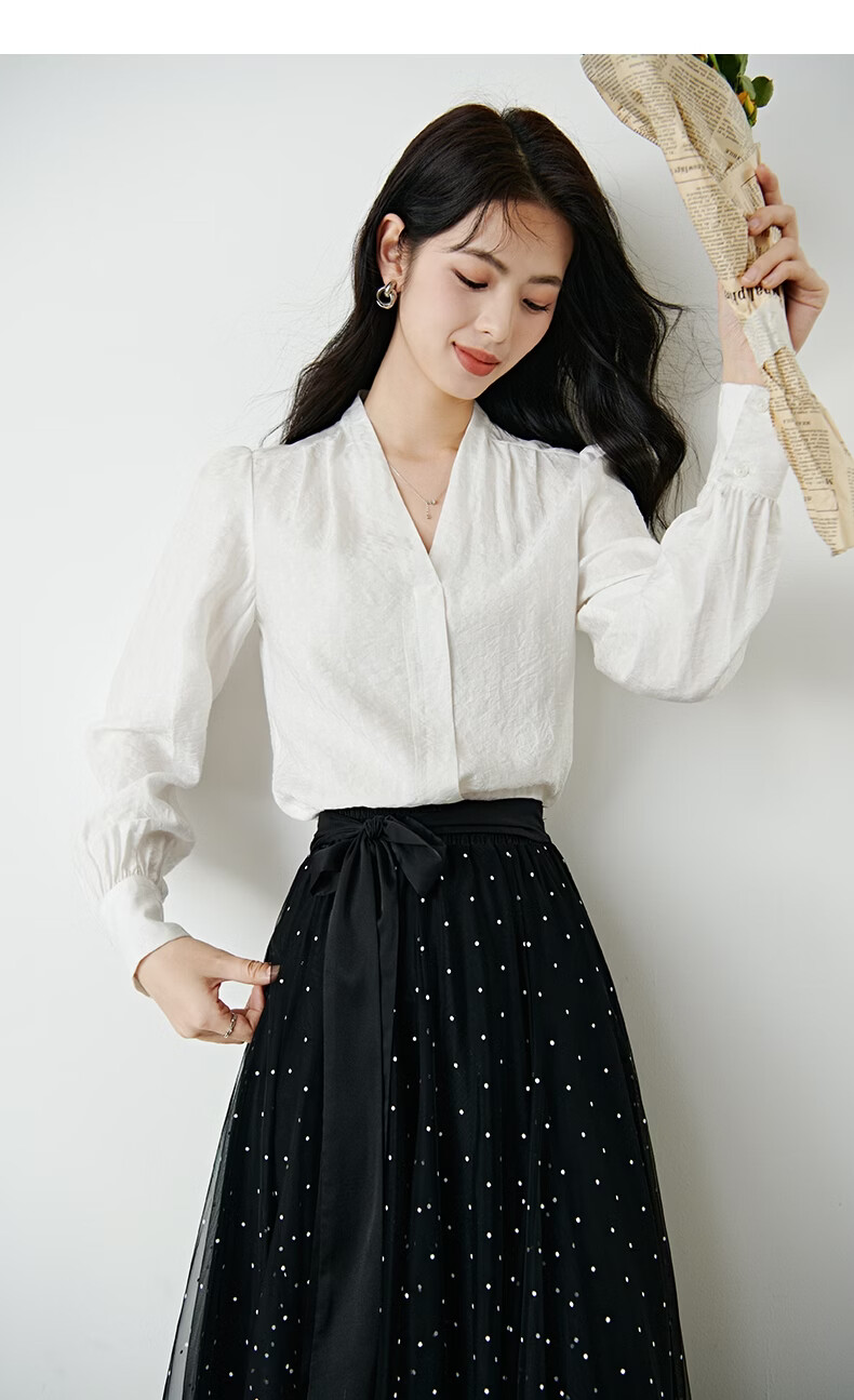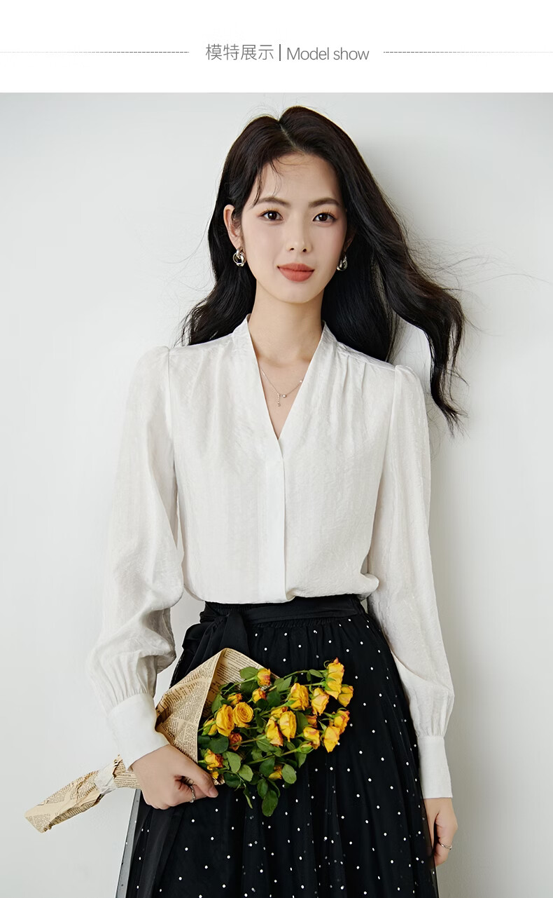 晚白【新品】法式V领白衬衫2026春经典气质上衣优雅通勤暗纹压花衬衣 白色 XL