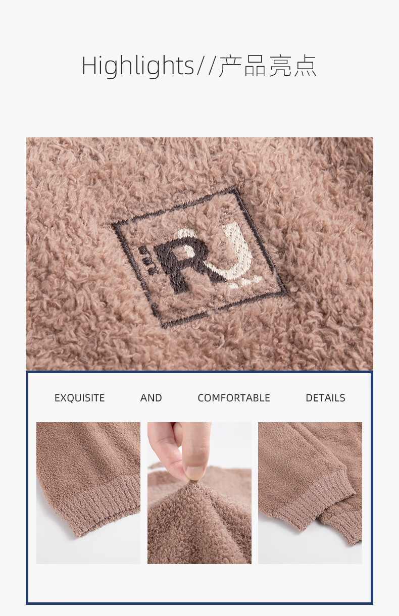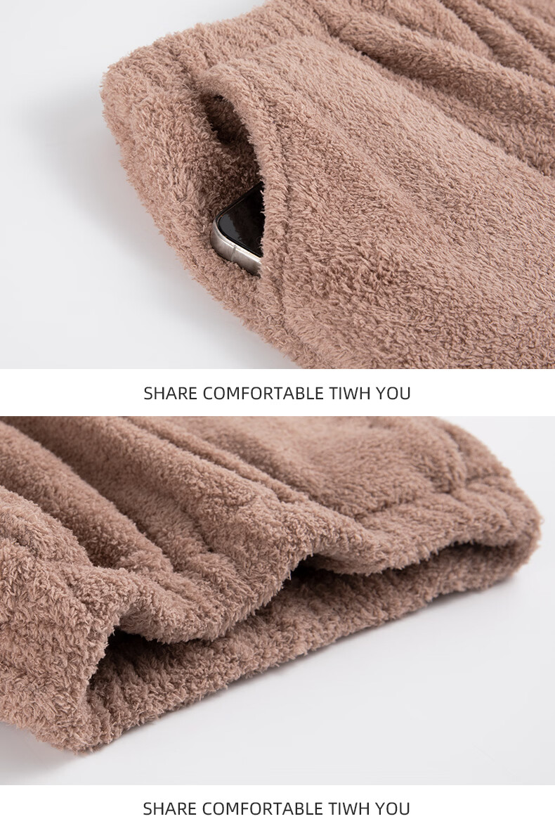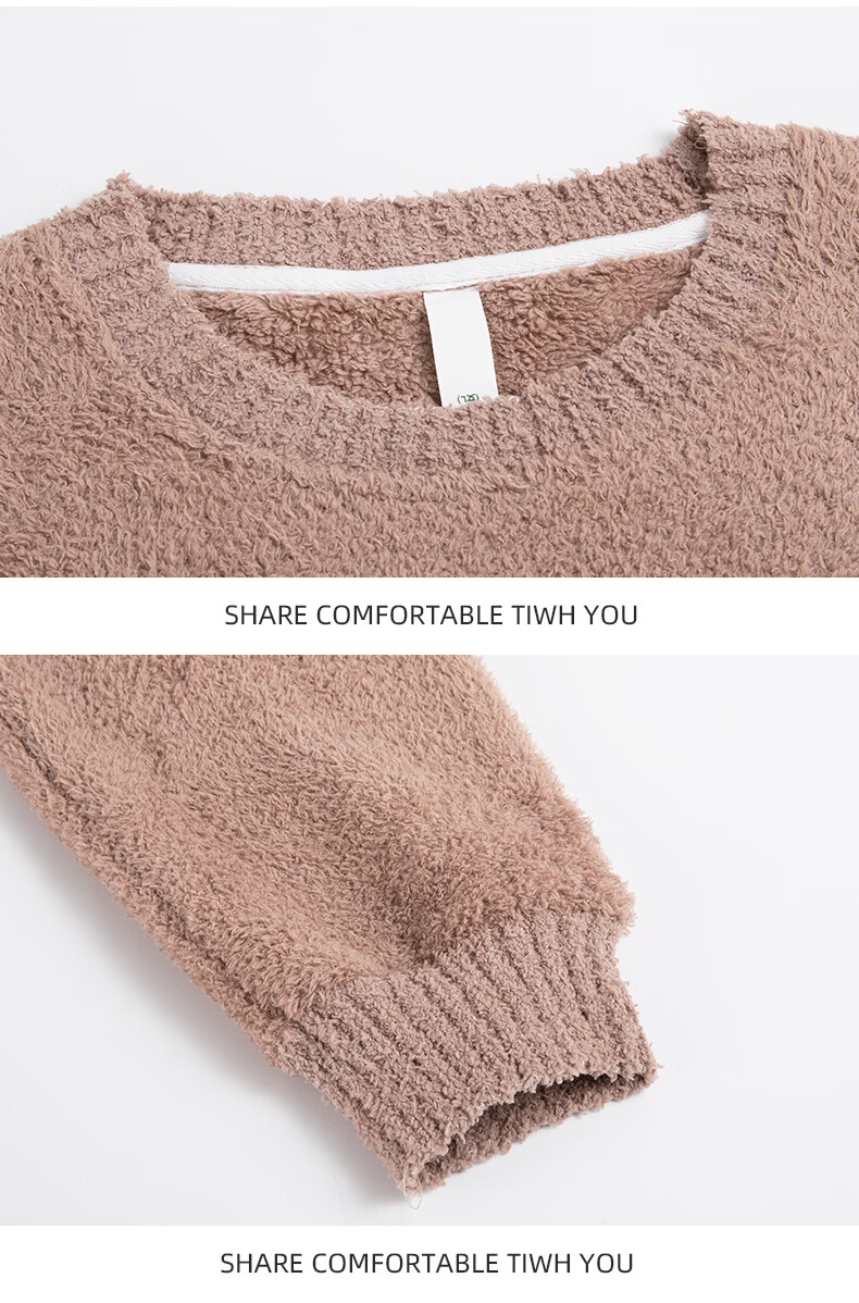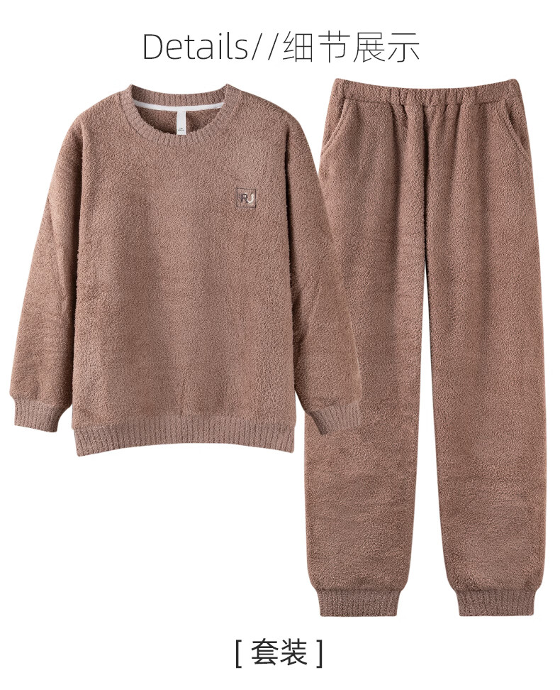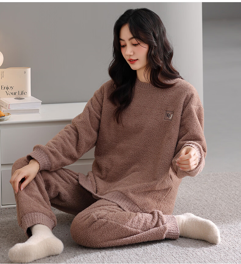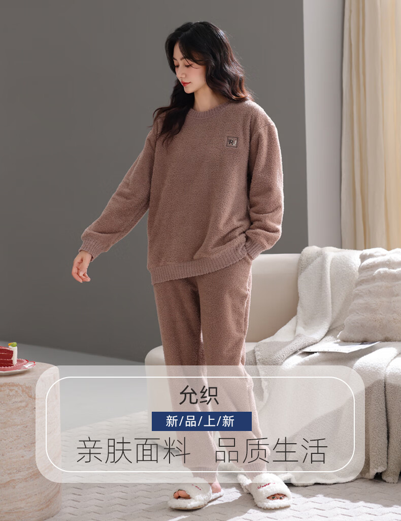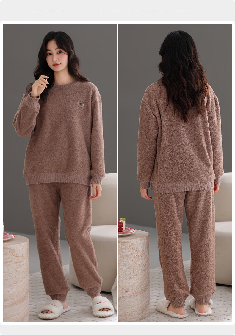 允织睡衣女士冬季半边绒加绒加厚套头女款高级感可外穿女款家居服套装 82803-暖茶咖 M (160) :建议90-110斤穿着
