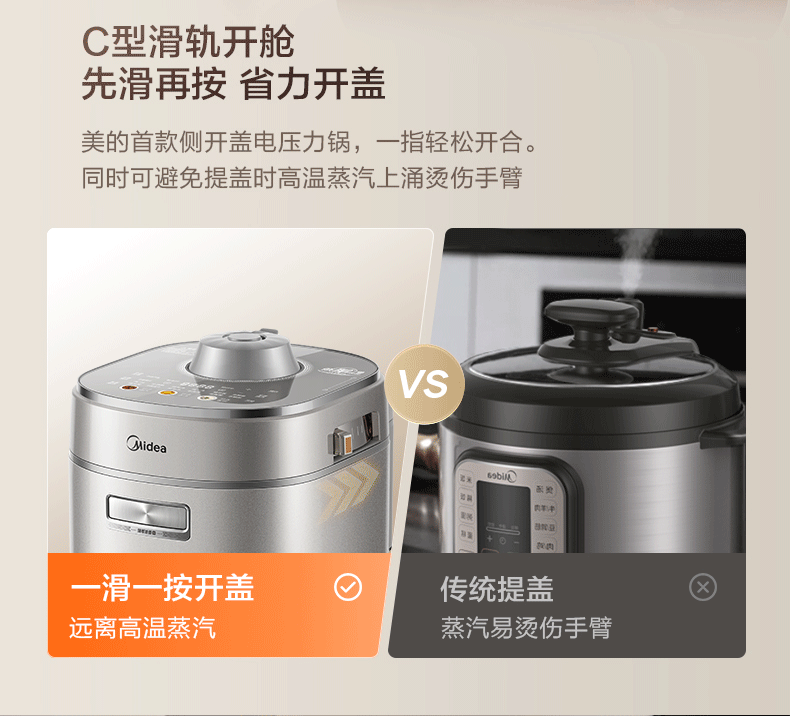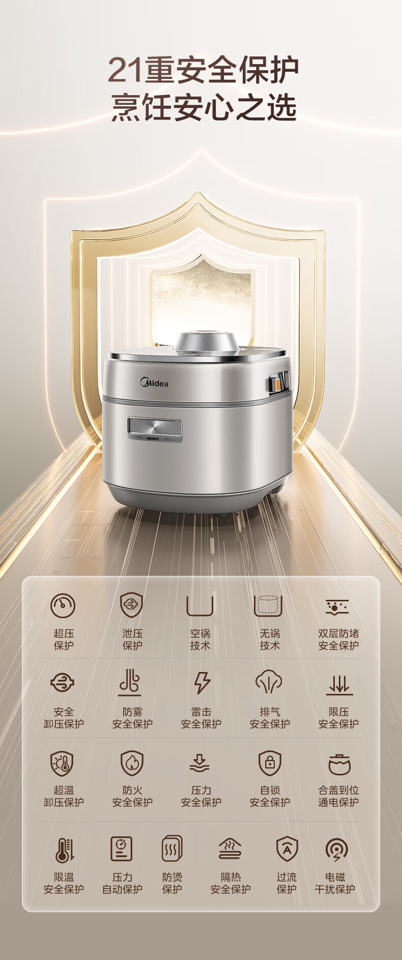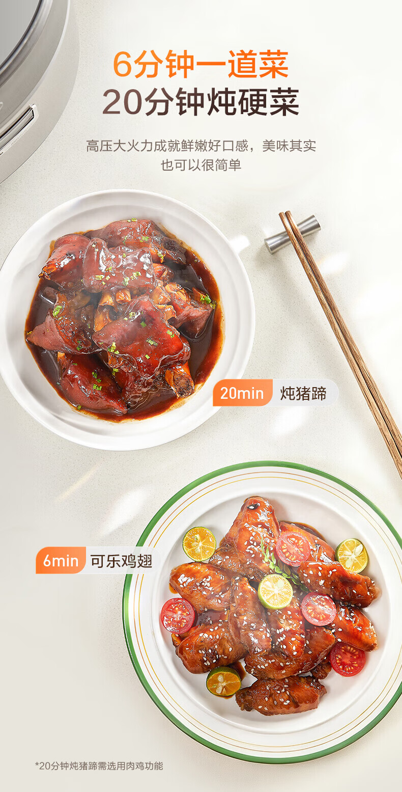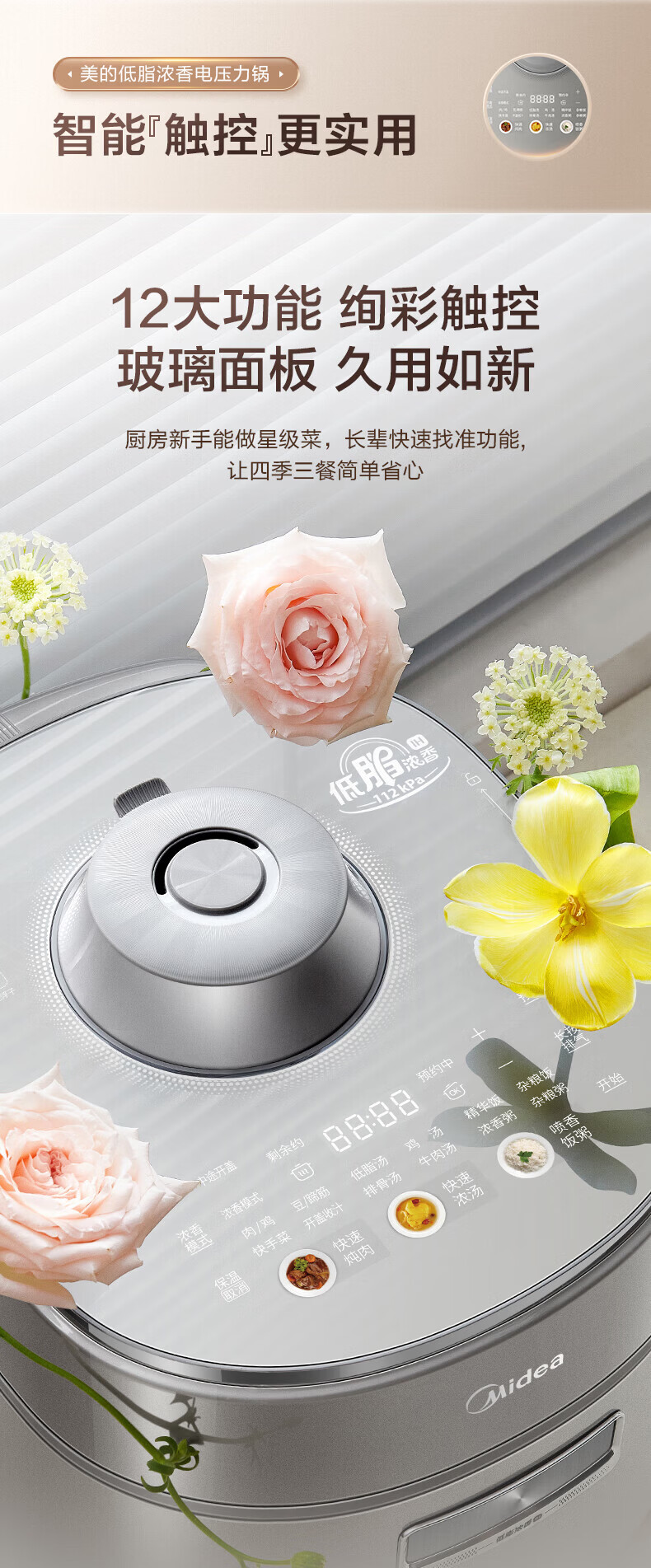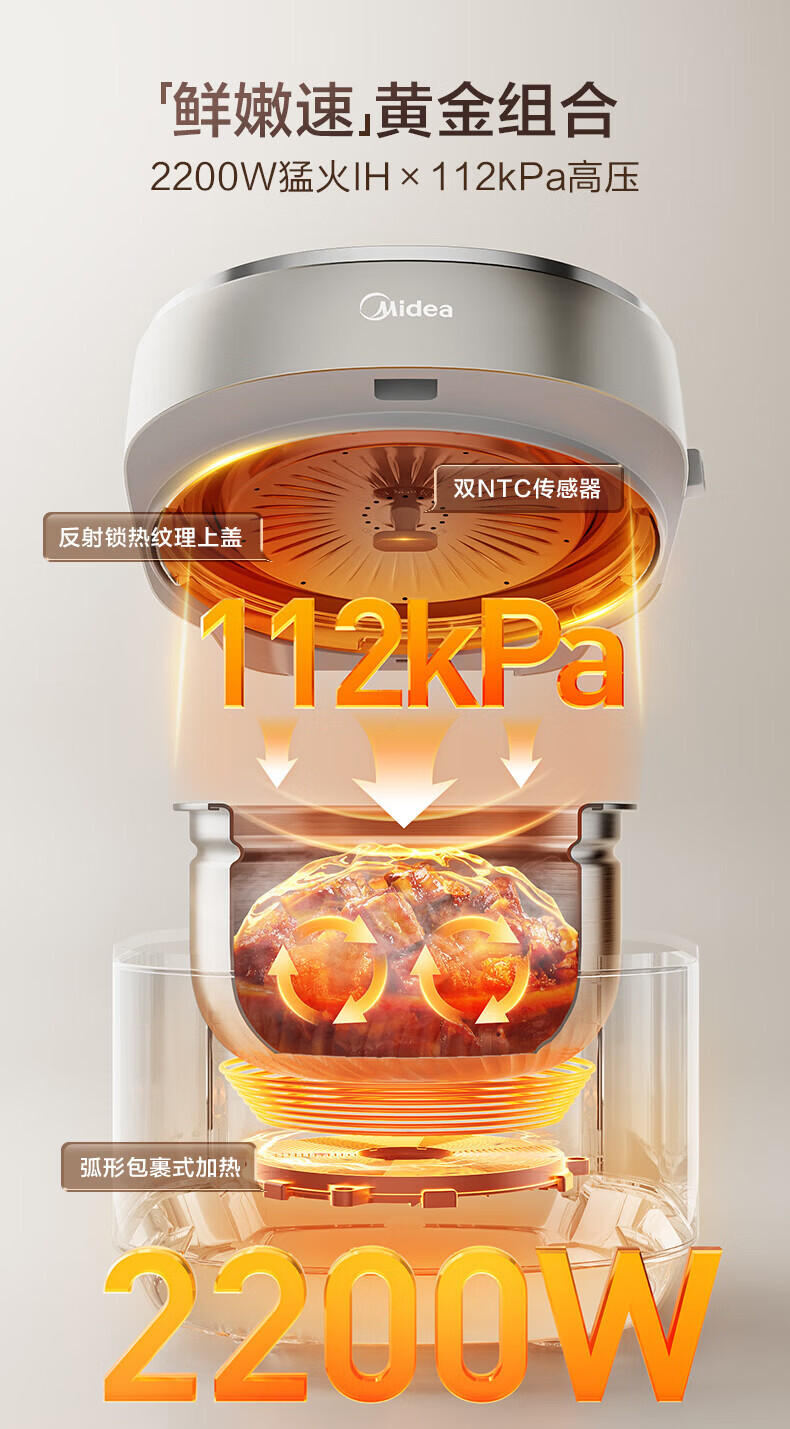 美的(Midea)电压力锅 低脂浓香超高压112KPa大容量5升电压力锅0氟有钛双胆自动排气IH猛火母婴316L煲汤电饭煲 【侧开盖+0涂层+低脂有钛】 5L 智能触控+中途开盖