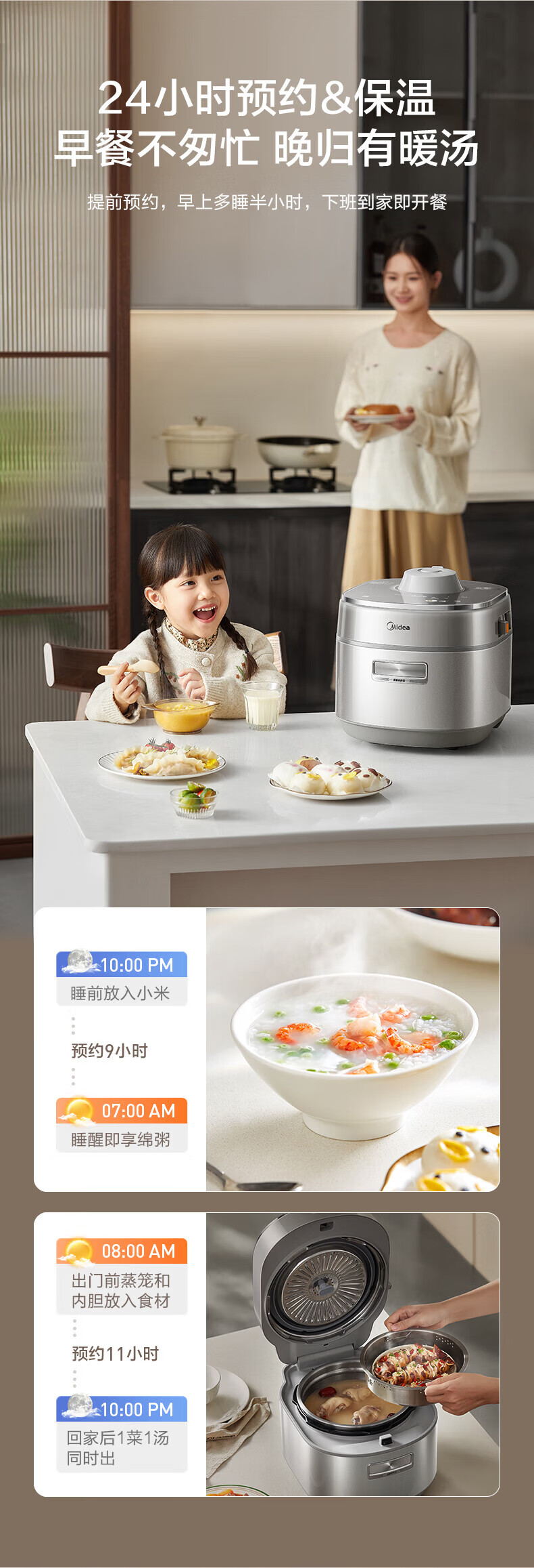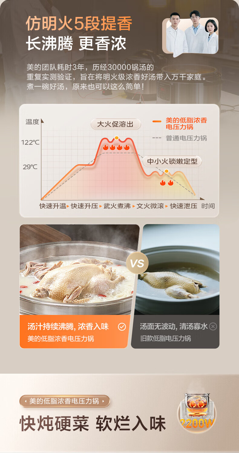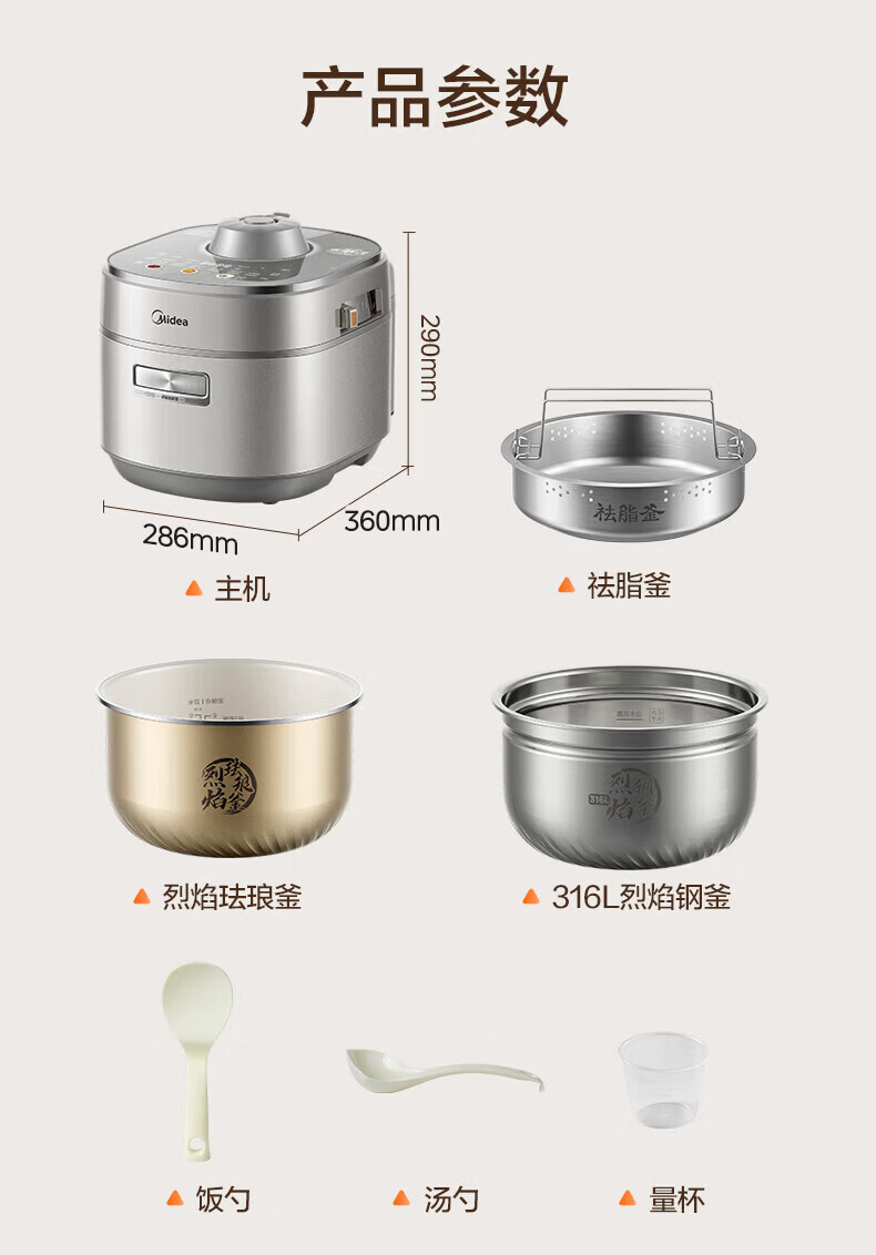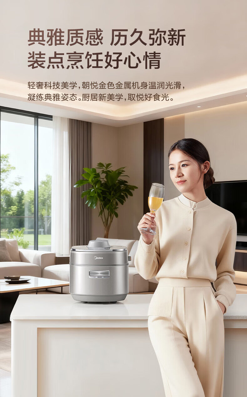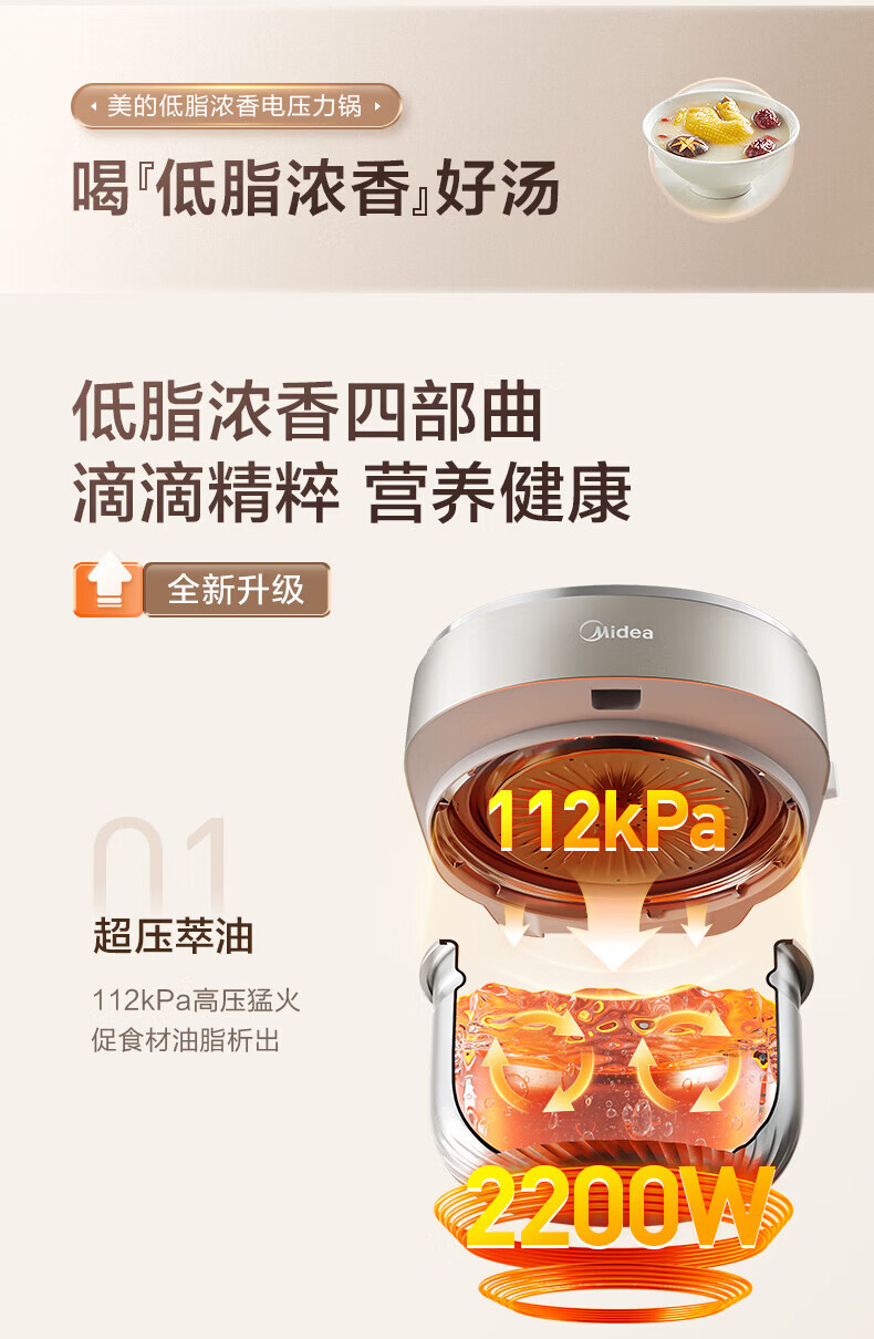 美的(Midea)电压力锅 低脂浓香超高压112KPa大容量5升电压力锅0氟有钛双胆自动排气IH猛火母婴316L煲汤电饭煲 【侧开盖+0涂层+低脂有钛】 5L 智能触控+中途开盖