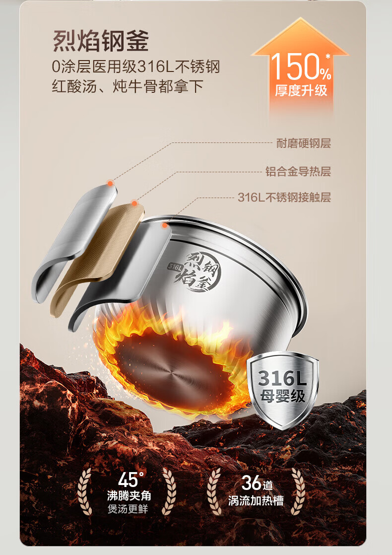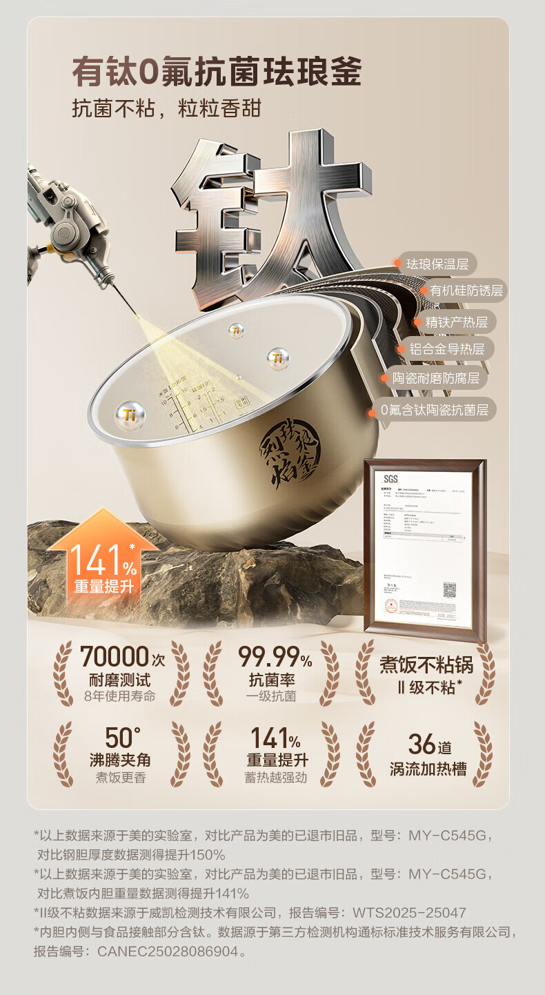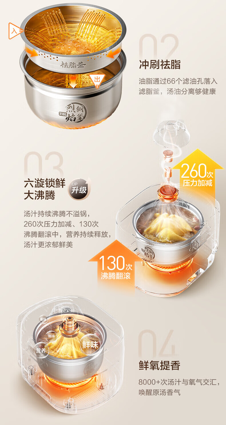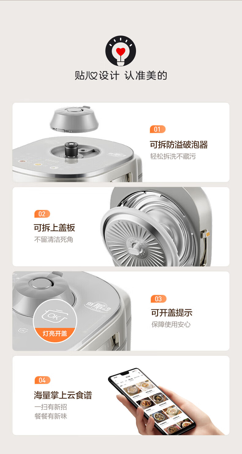 美的(Midea)电压力锅 低脂浓香超高压112KPa大容量5升电压力锅0氟有钛双胆自动排气IH猛火母婴316L煲汤电饭煲 【侧开盖+0涂层+低脂有钛】 5L 智能触控+中途开盖