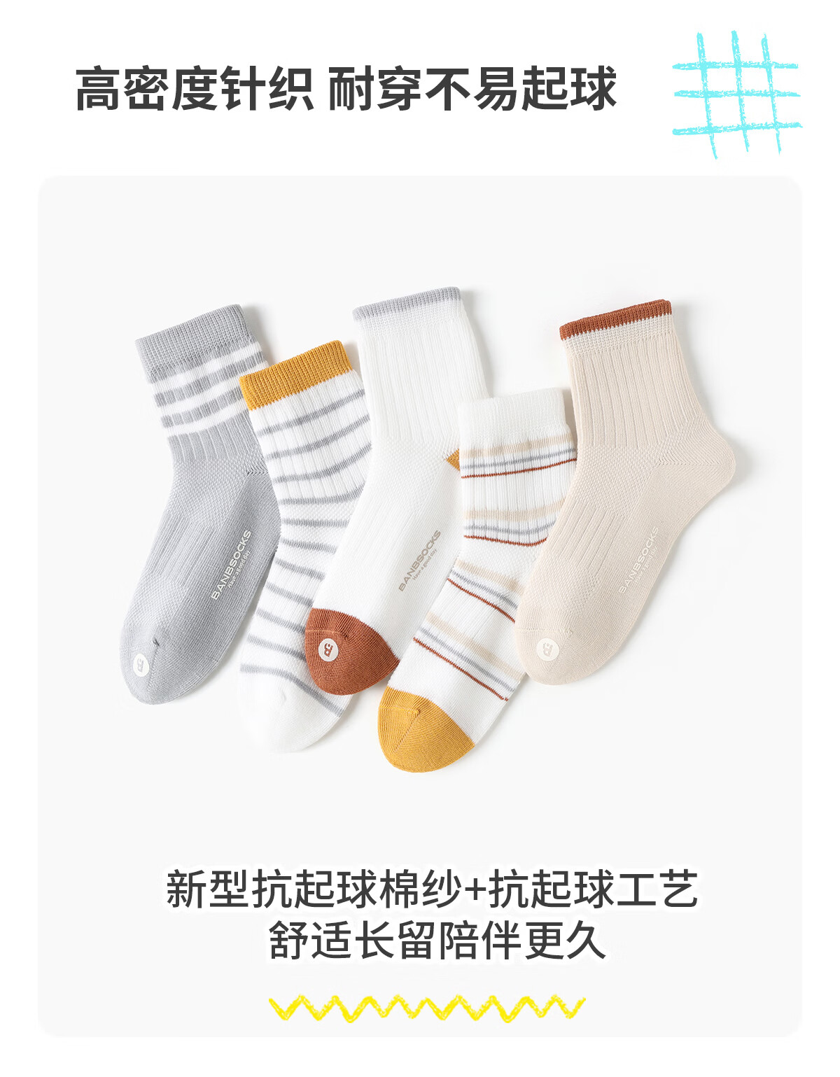 斑比男童袜子春夏款网眼透气棉袜中大童宝宝夏季无骨可爱儿童袜子 BB2632 春夏款儿童袜子 5双 1-3岁 建议脚码16-20码【14-16】