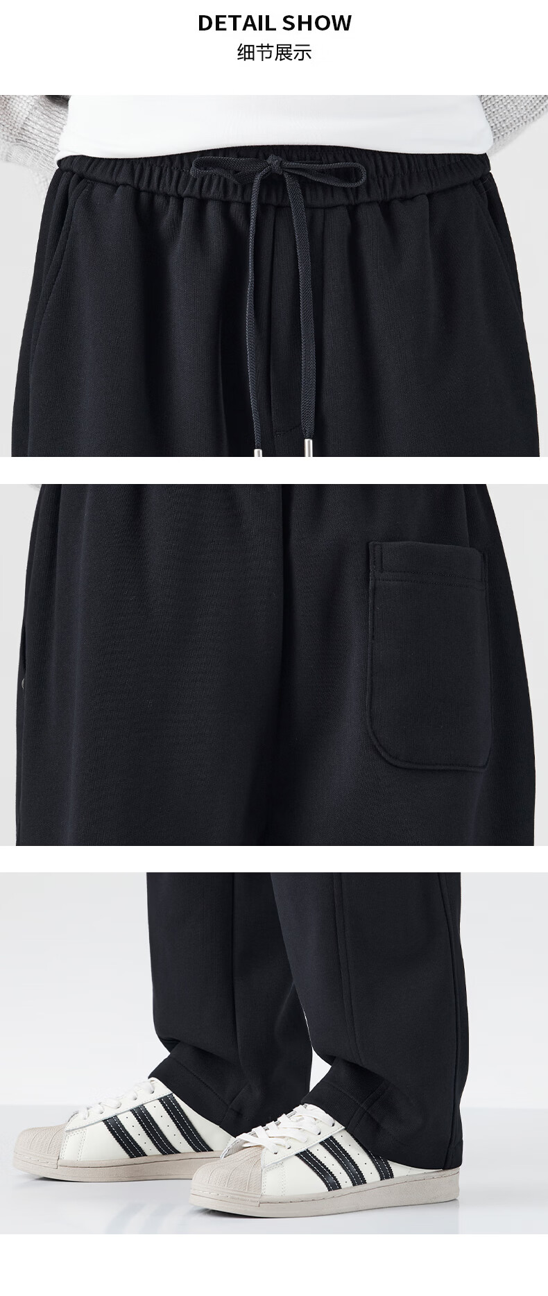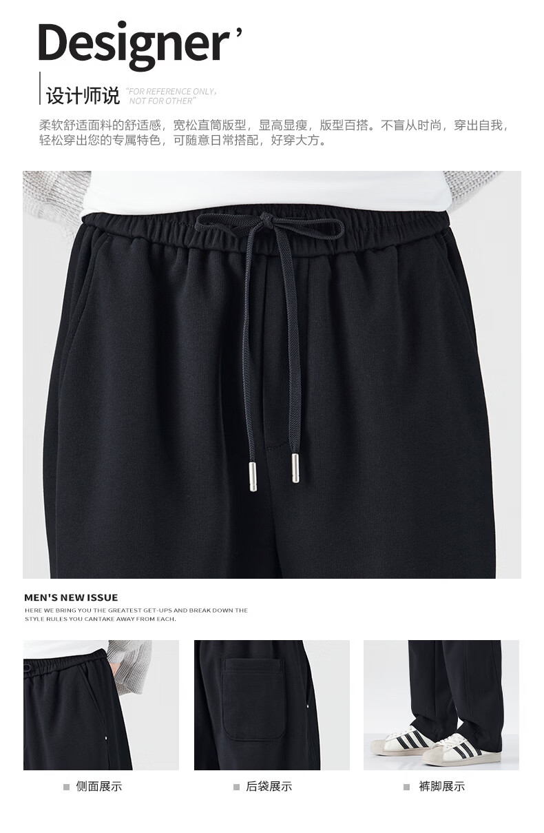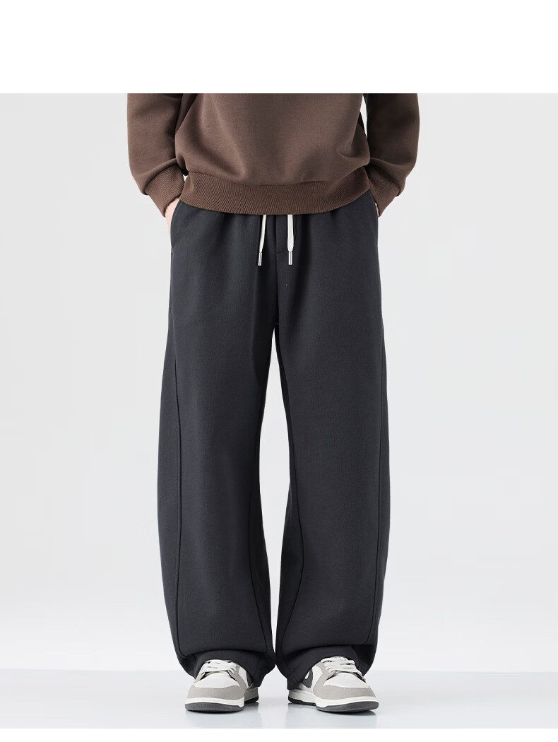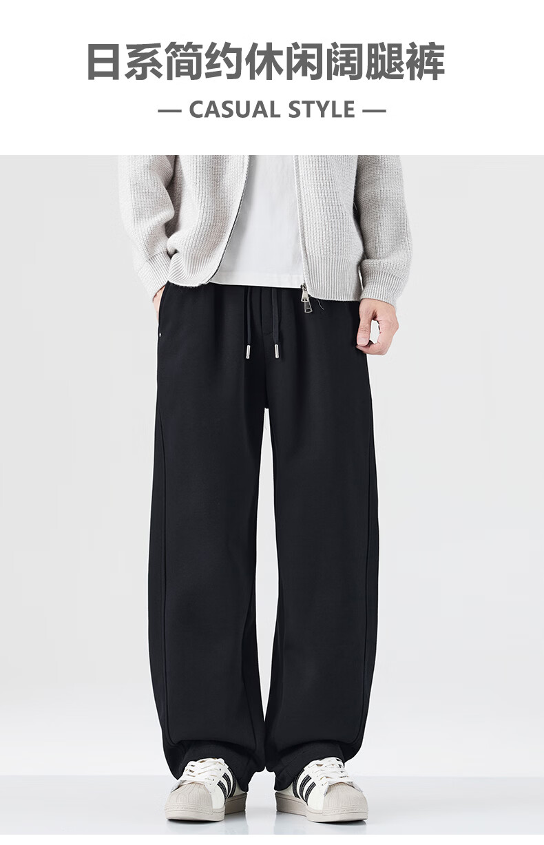 真维斯运动卫裤男加绒加厚垂坠感直筒休闲裤男2026冬季宽松舒适长裤子男 黑色 28