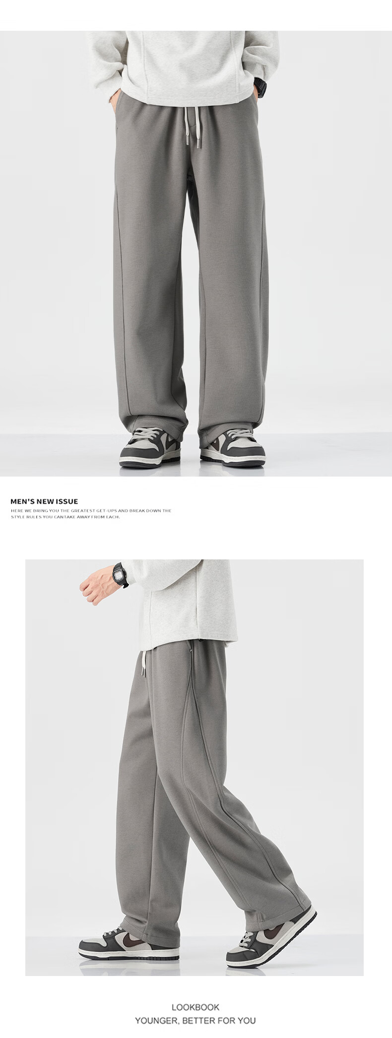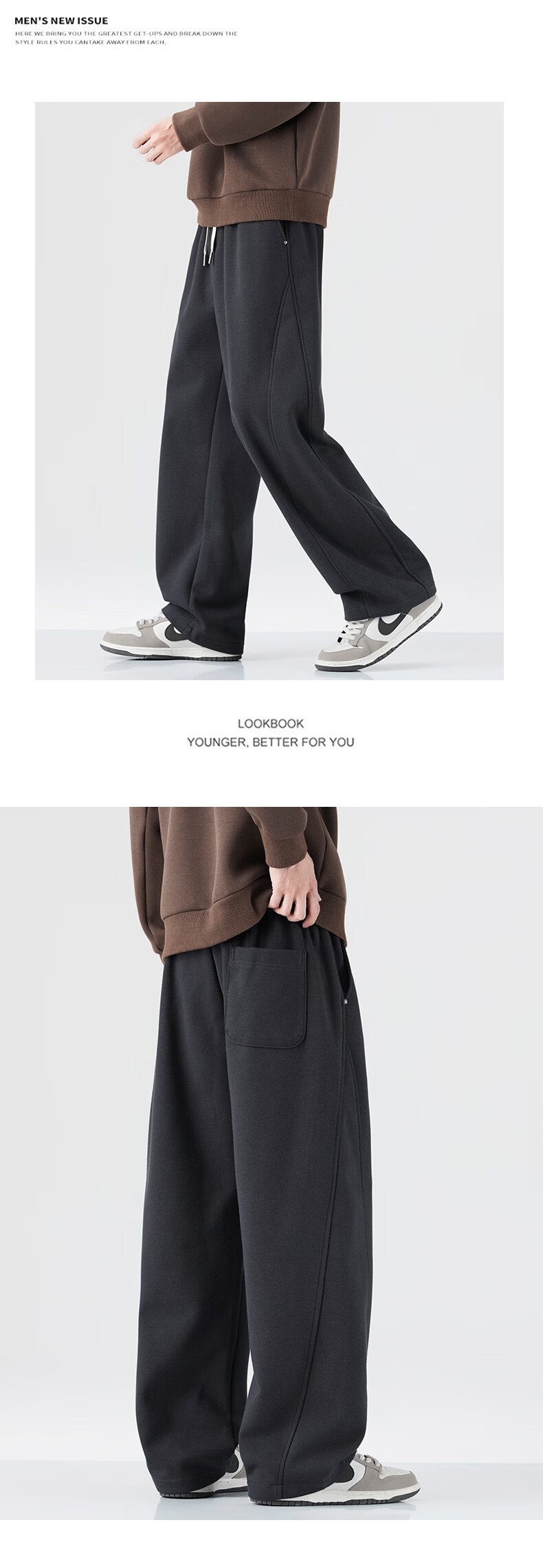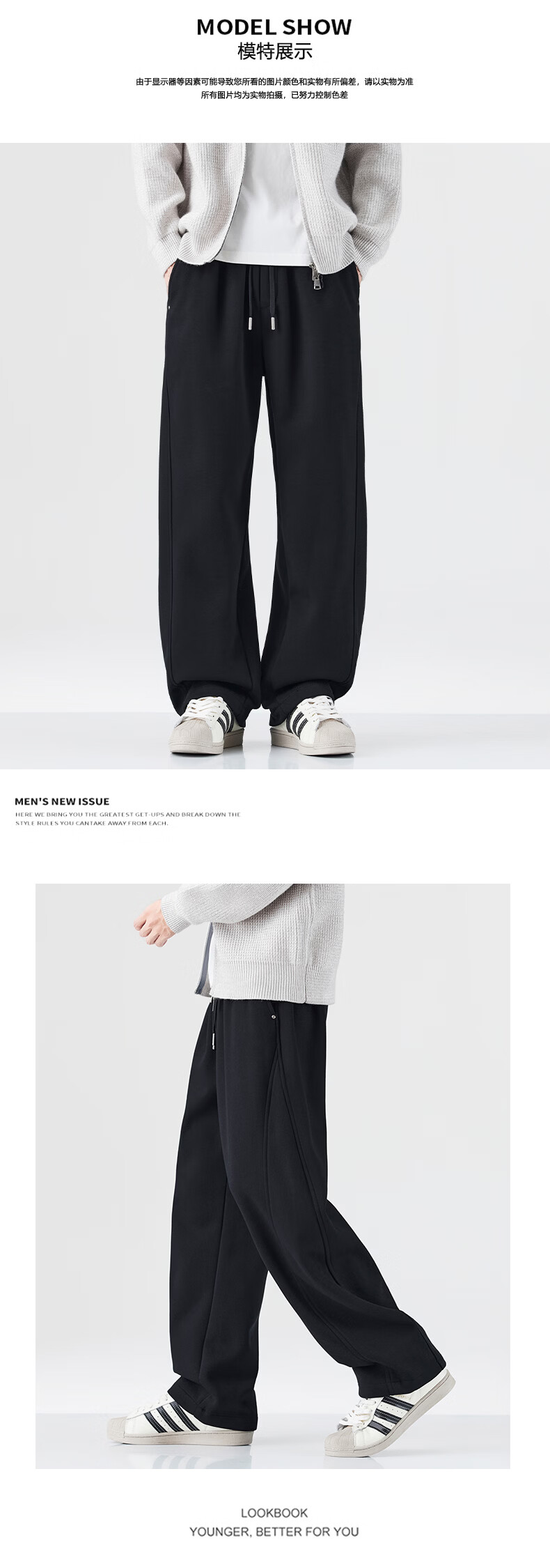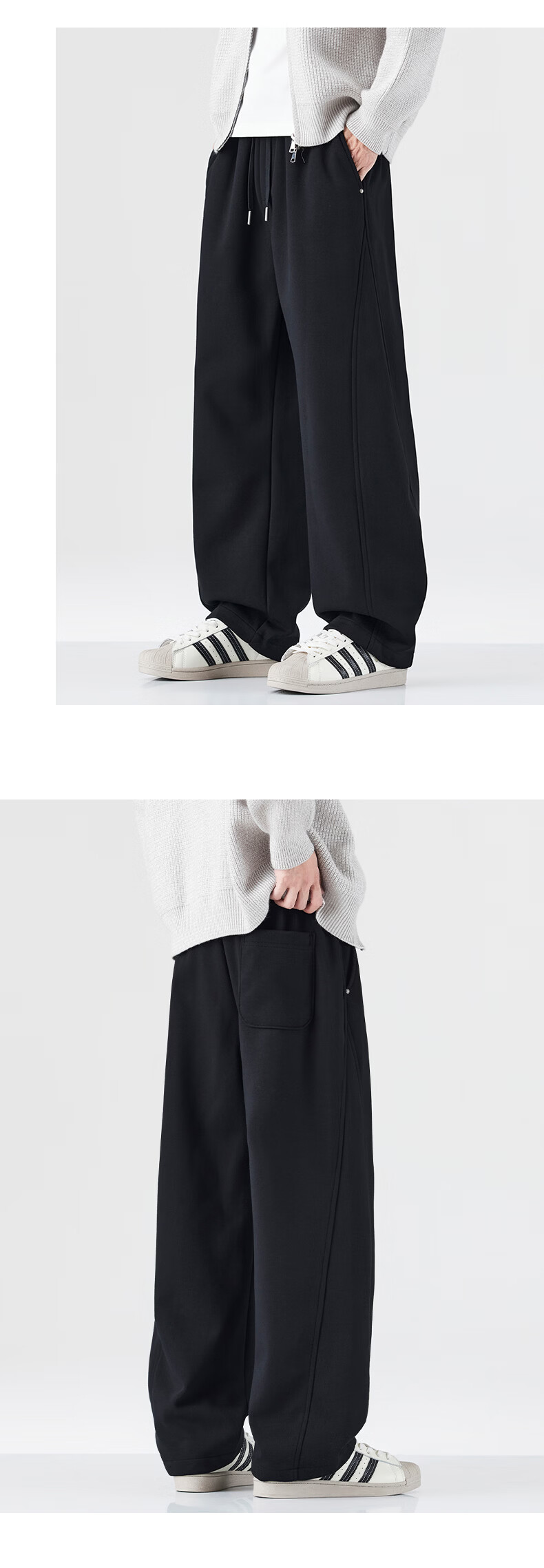 真维斯运动卫裤男加绒加厚垂坠感直筒休闲裤男2026冬季宽松舒适长裤子男 黑色 28