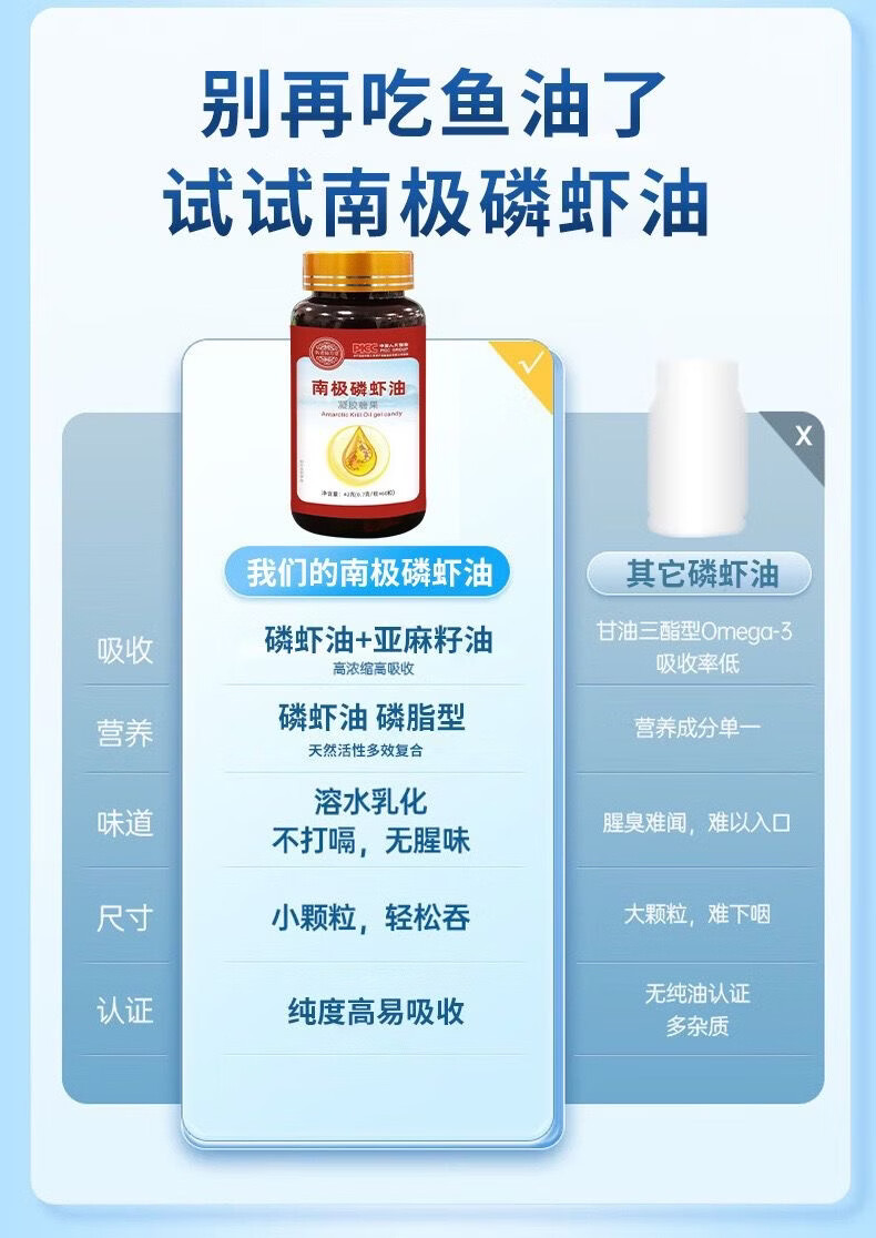尔娅贝进口深海南极磷虾油鱼油配比Ome软胶囊呵护记忆血管清除 3瓶*[0mega-3 99%] 60粒*3瓶