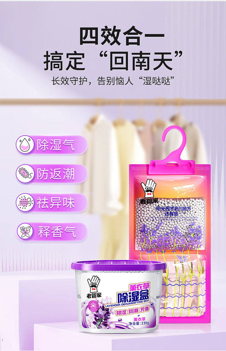 老管家薰衣草除湿袋除湿盒干燥剂衣柜防潮防霉吸湿剂 230g*6盒