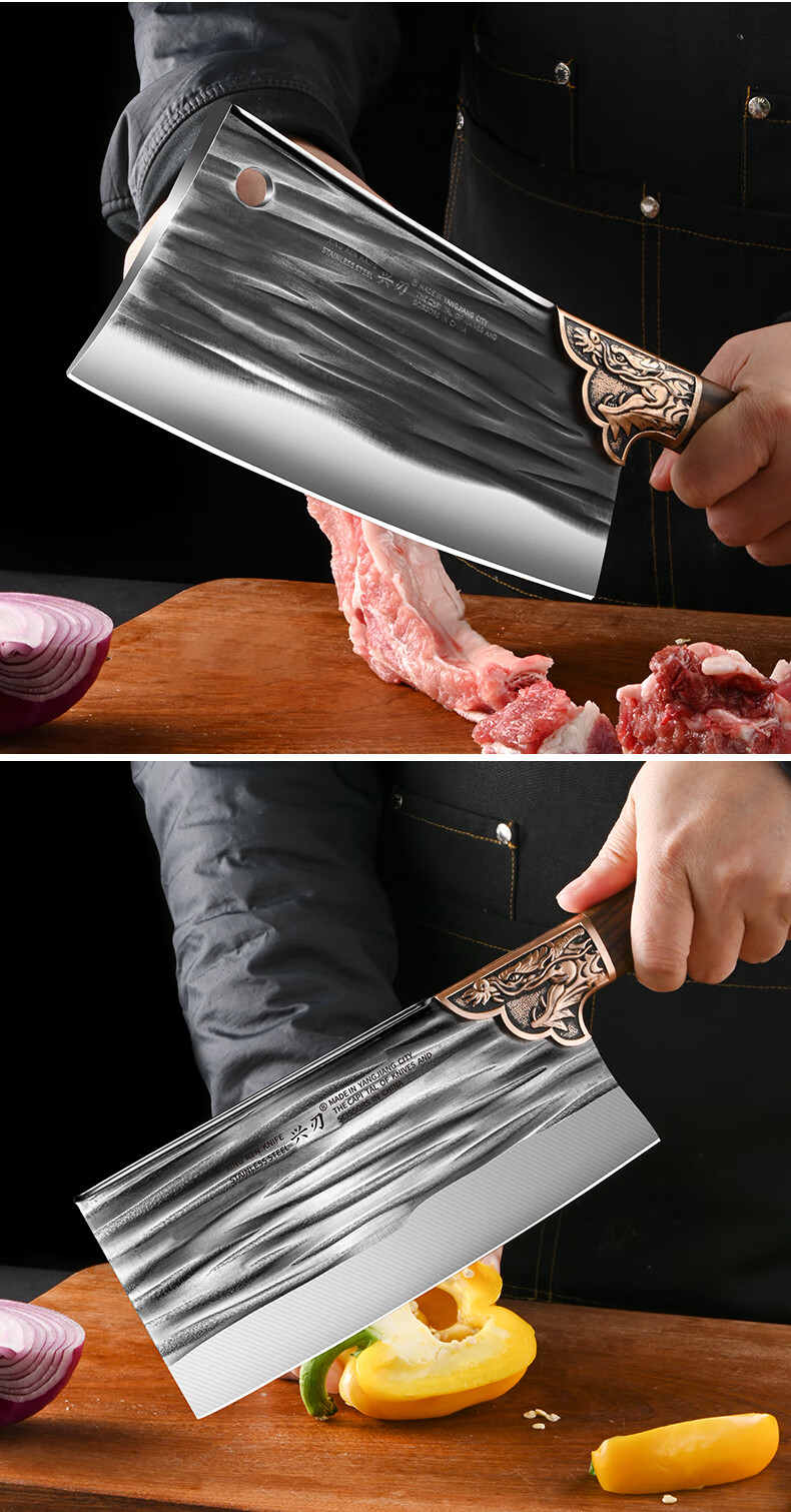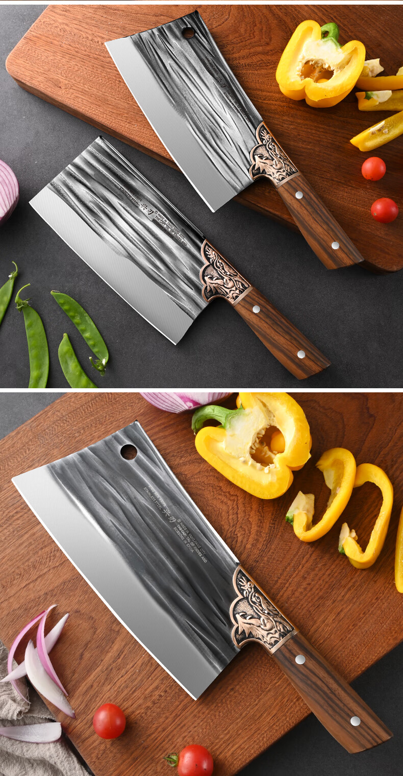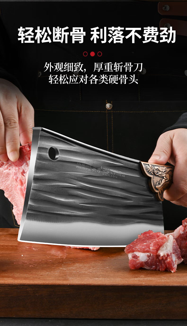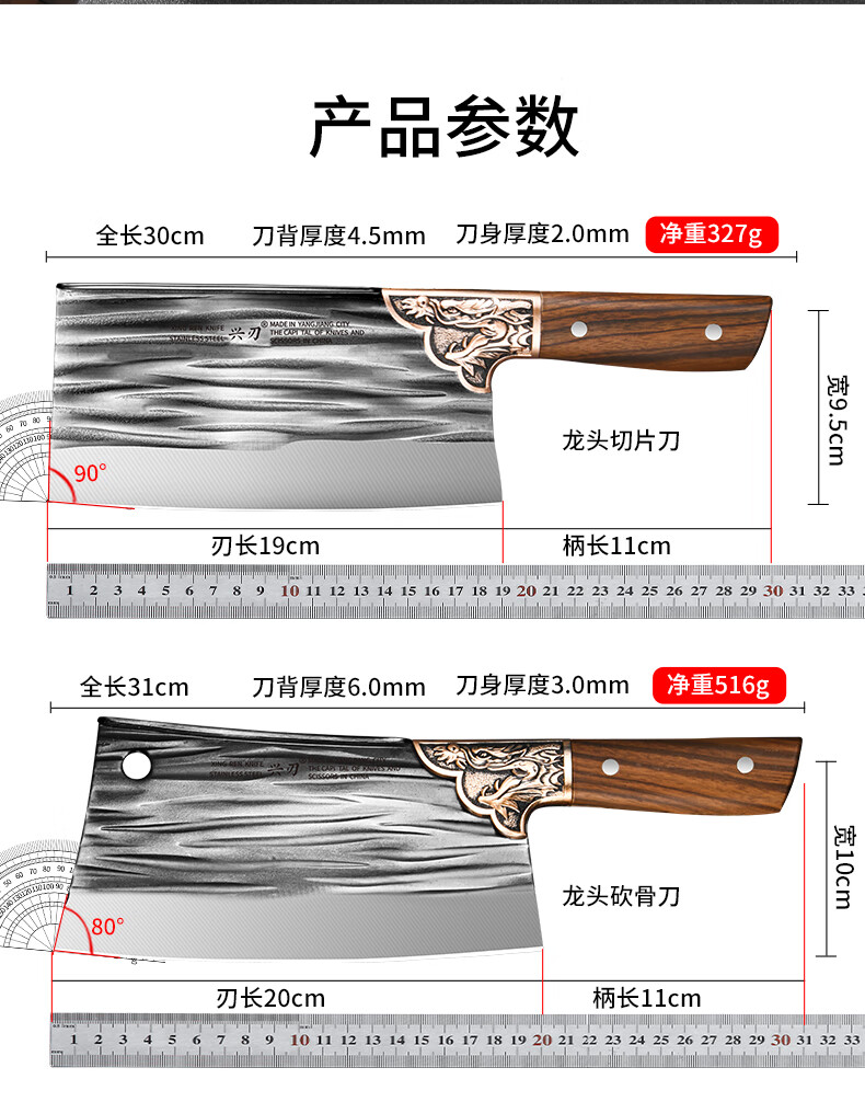 兴刃菜刀家用套装切菜刀砍骨刀锋利切菜切肉两用刀斩骨刀厨师刀具锻打 龙纹菜刀+龙纹砍骨刀
