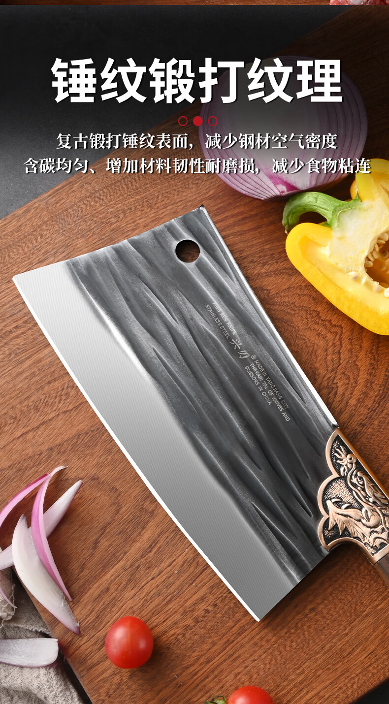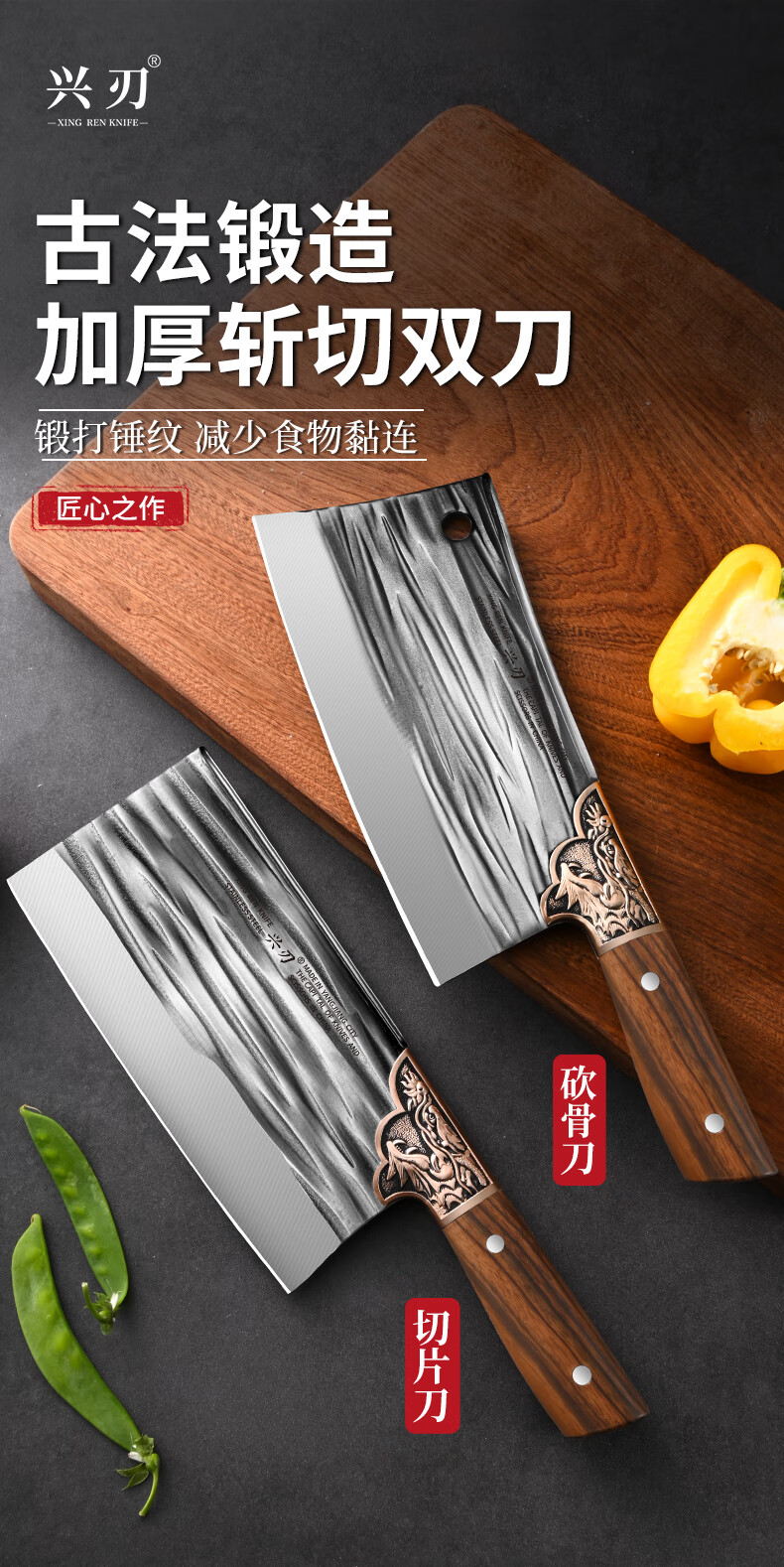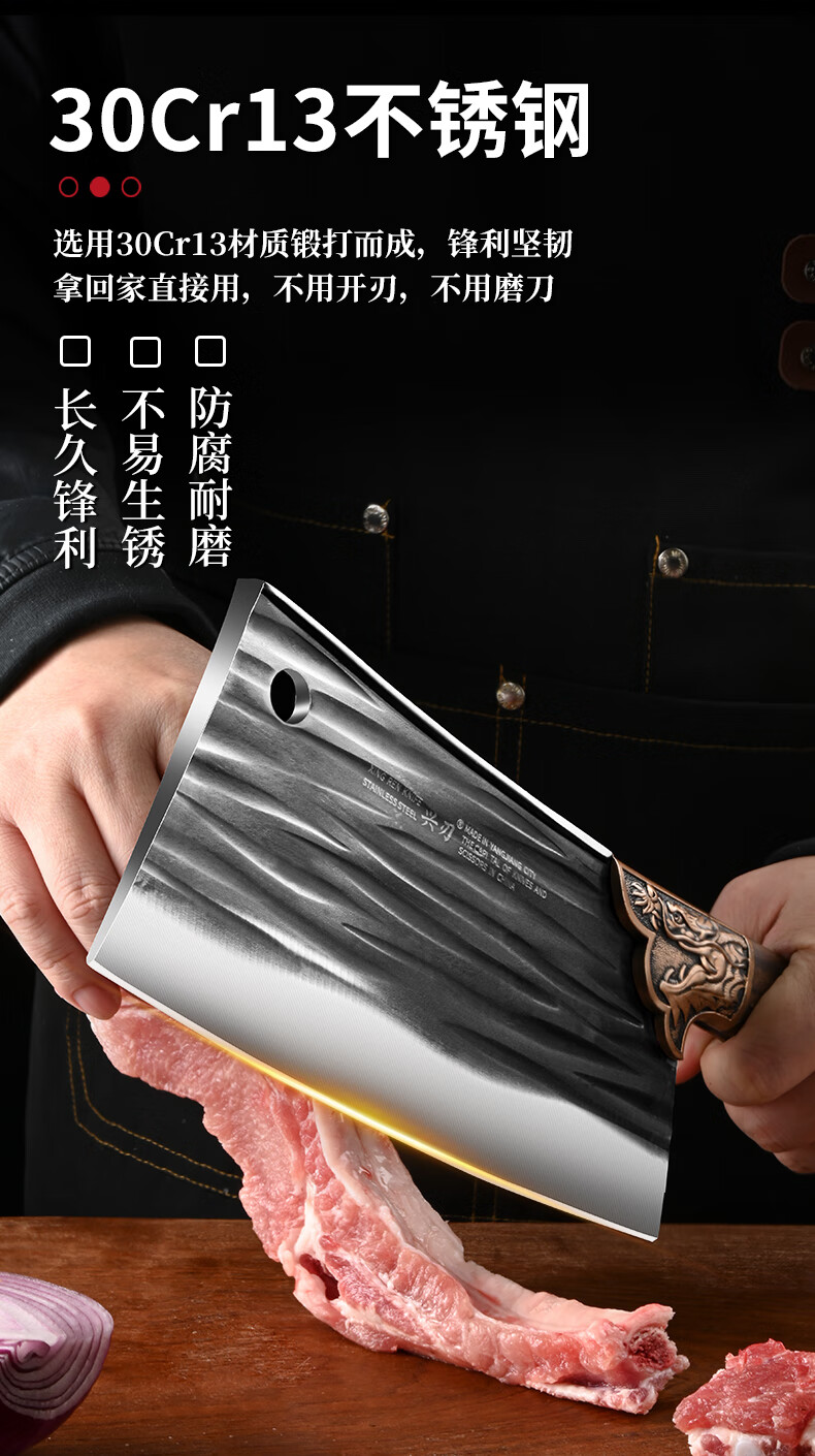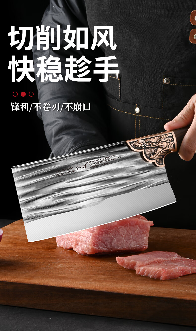 兴刃菜刀家用套装切菜刀砍骨刀锋利切菜切肉两用刀斩骨刀厨师刀具锻打 龙纹菜刀+龙纹砍骨刀