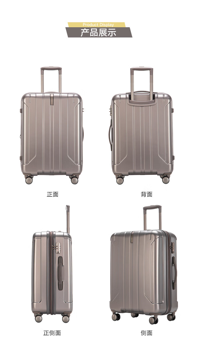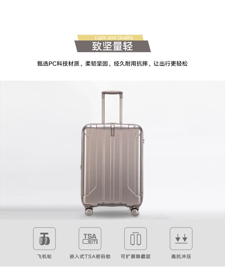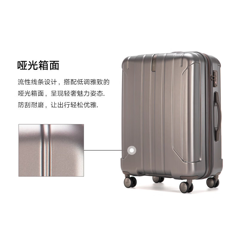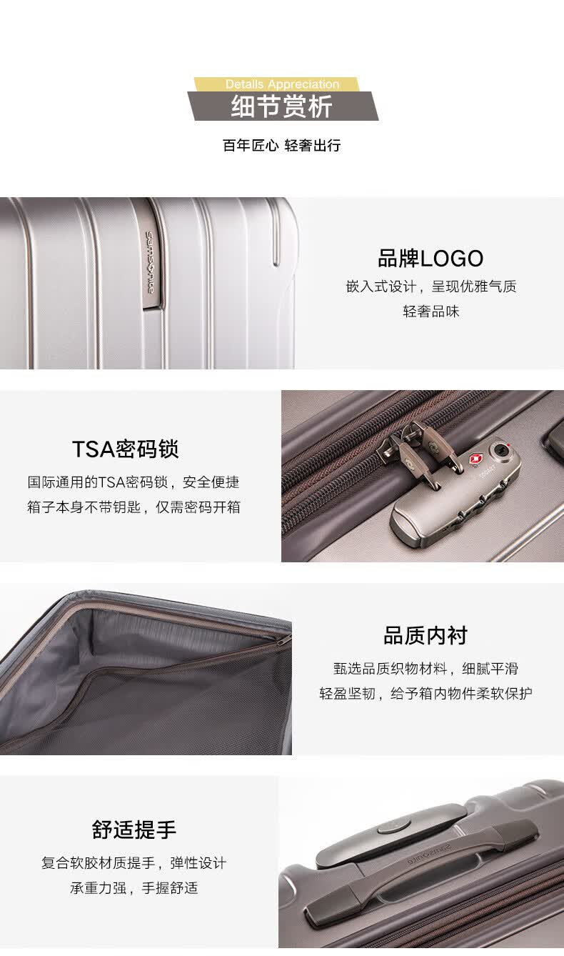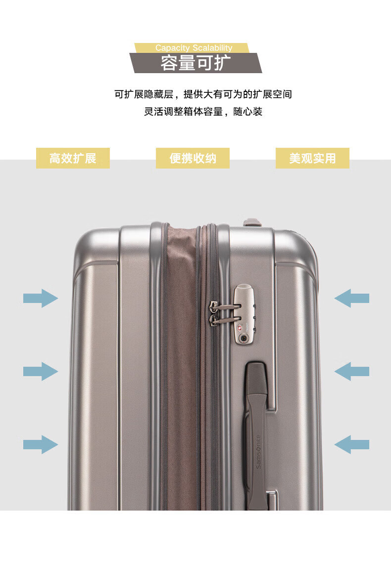 新秀丽可登机箱可扩展行李箱出国留学密码旅行商务出差拉杆箱银色20英寸