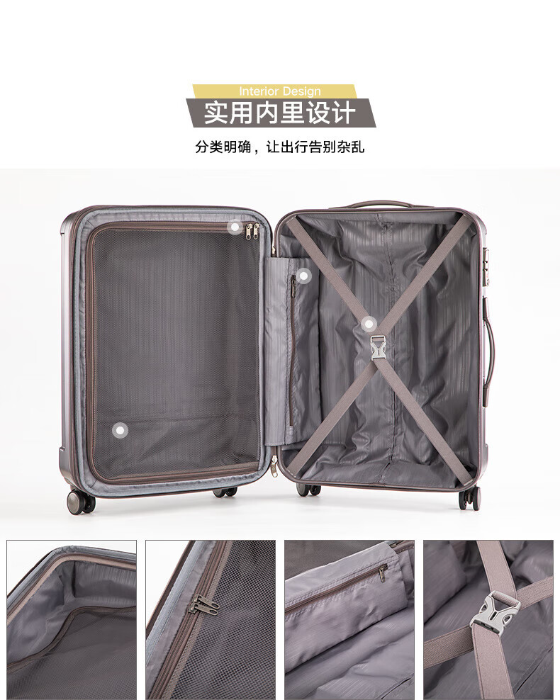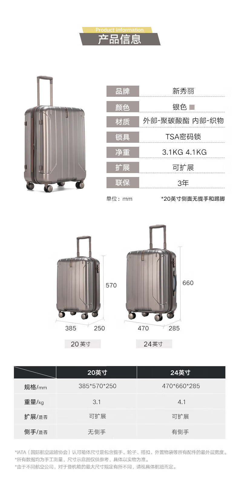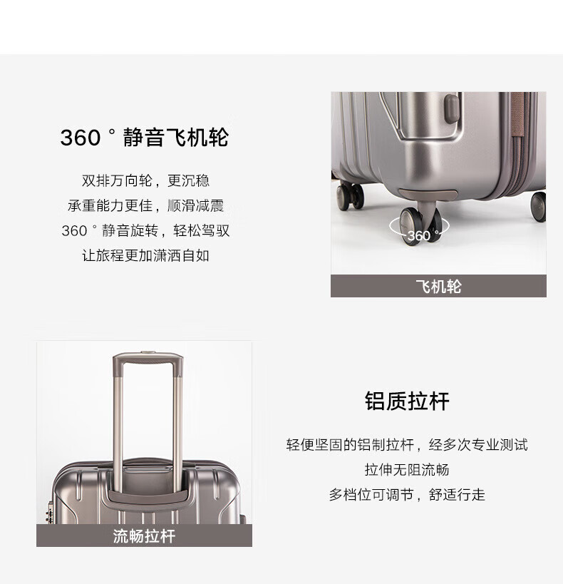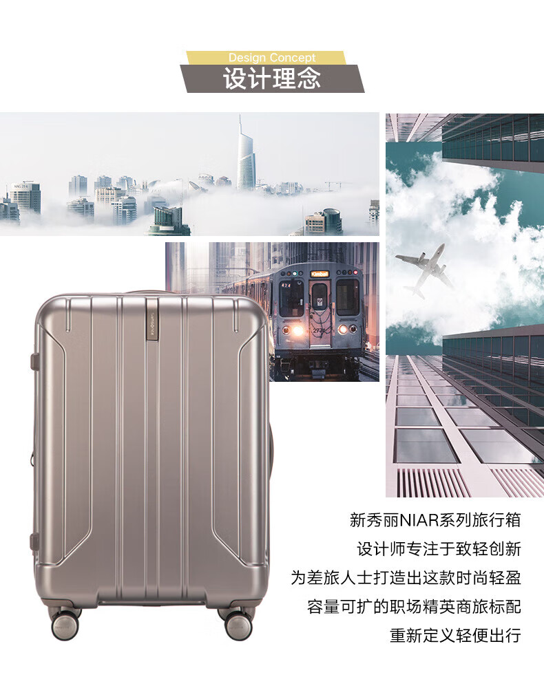 新秀丽可登机箱可扩展行李箱出国留学密码旅行商务出差拉杆箱银色20英寸